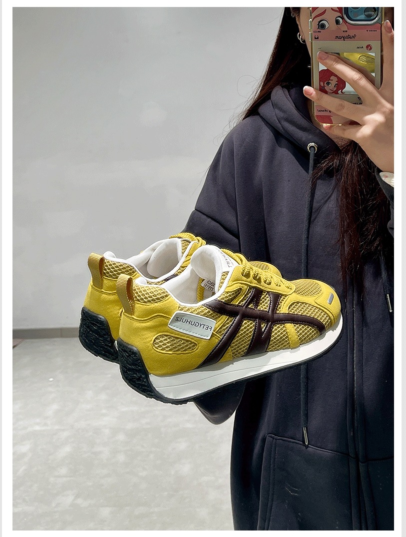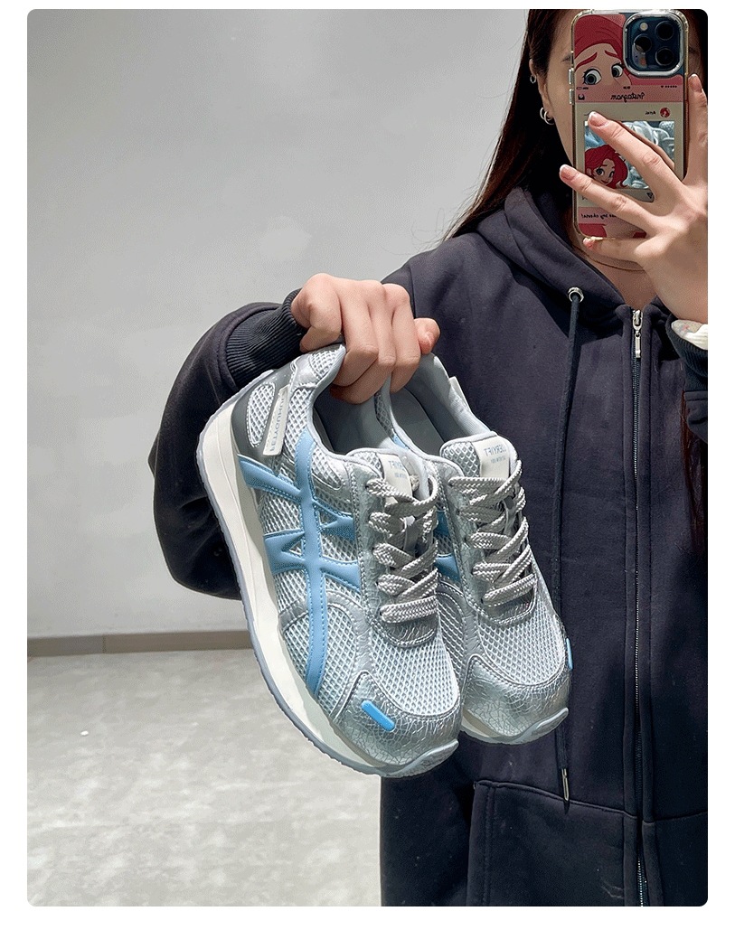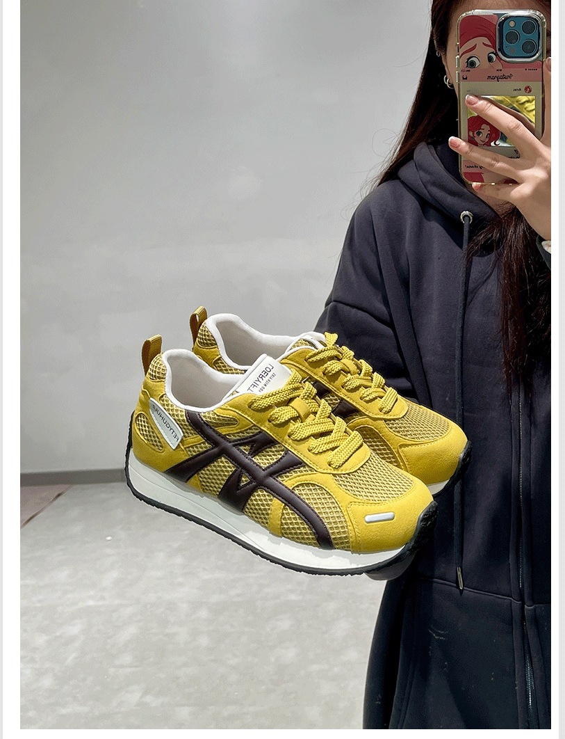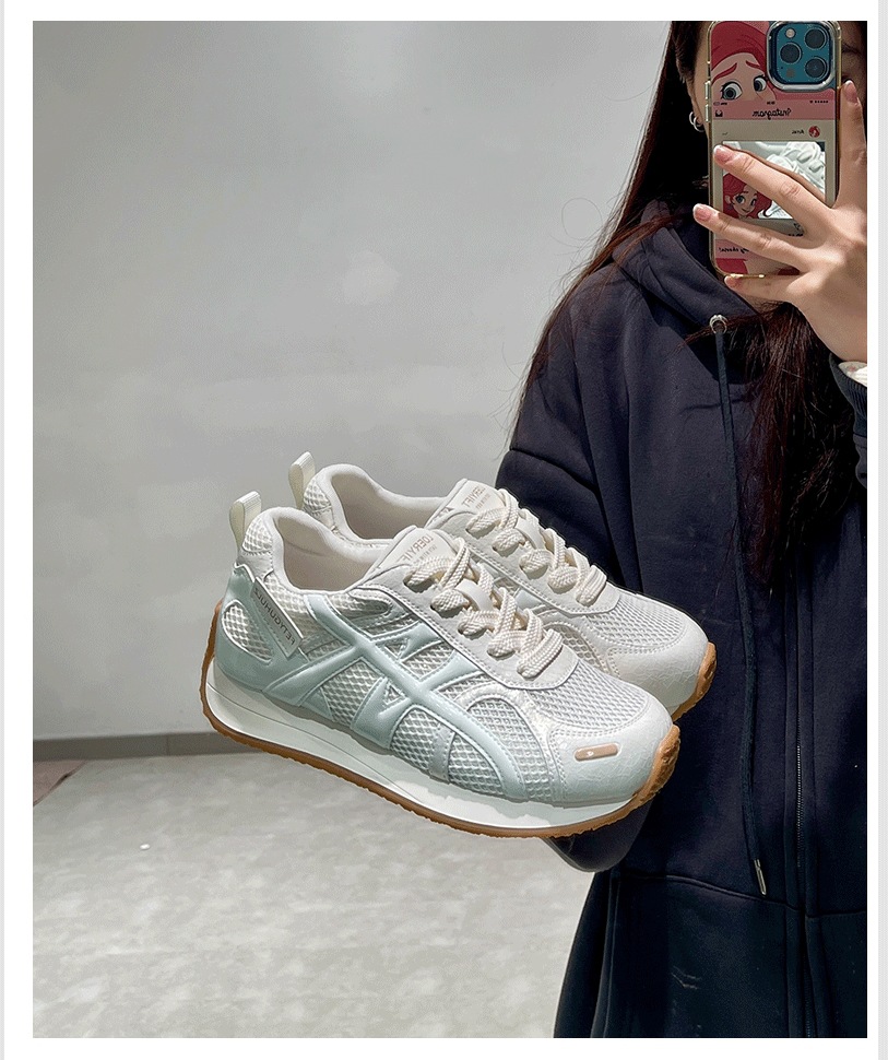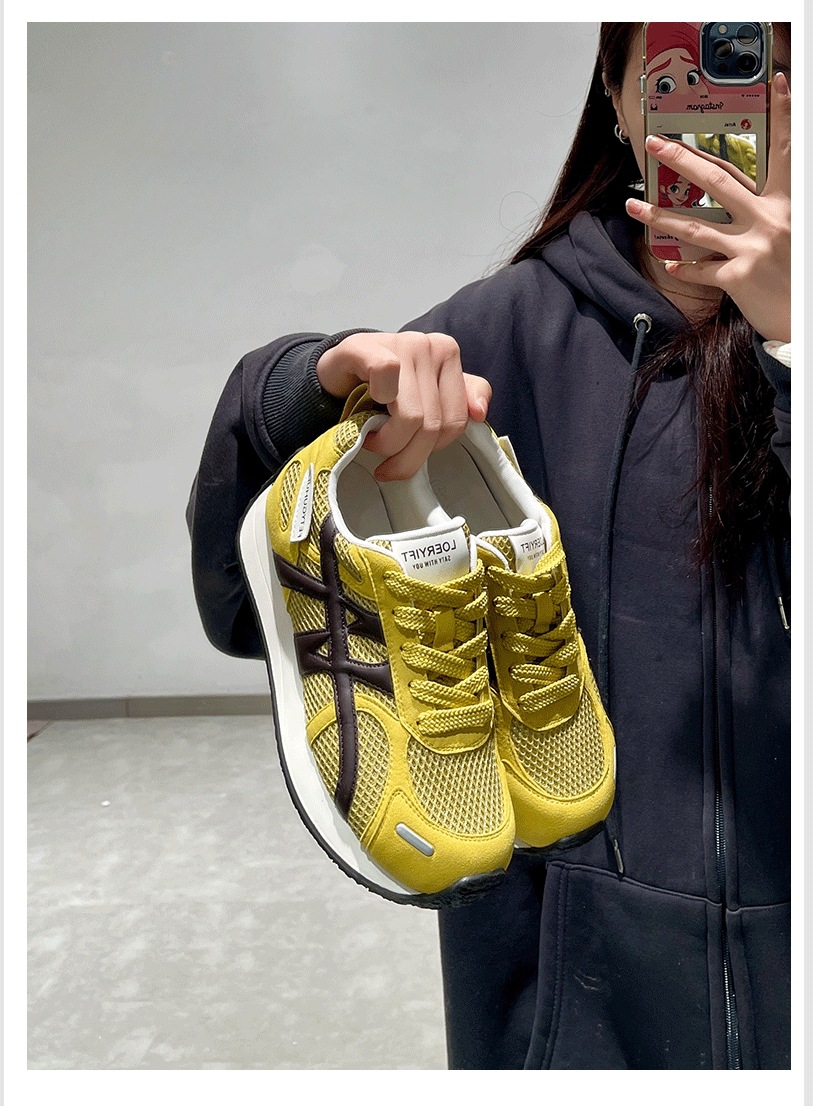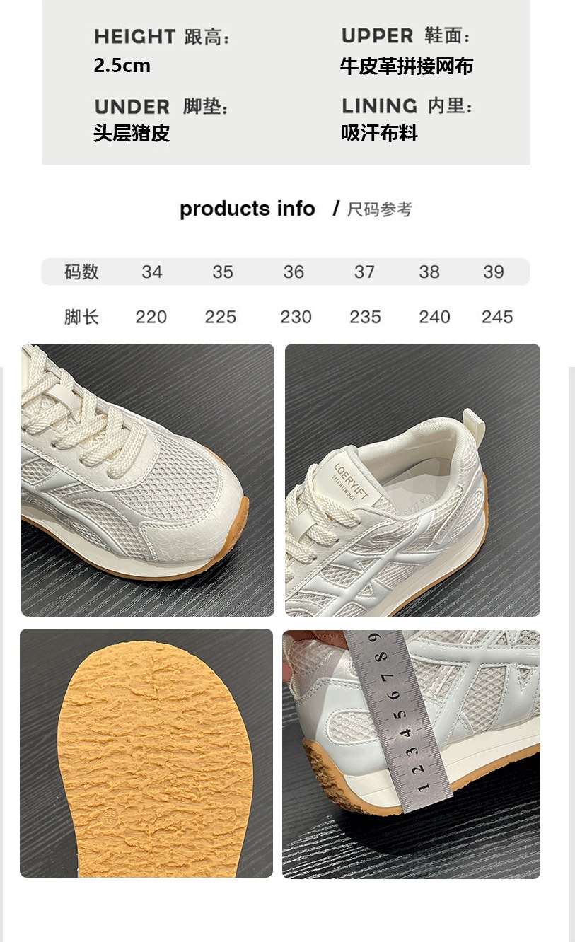여성을위한 레트로 다목적 스포츠 조깅 신발 2025 봄 새로운 정품 가죽 메쉬 통기성 경량 캐주얼 아빠 신발스토어 가기