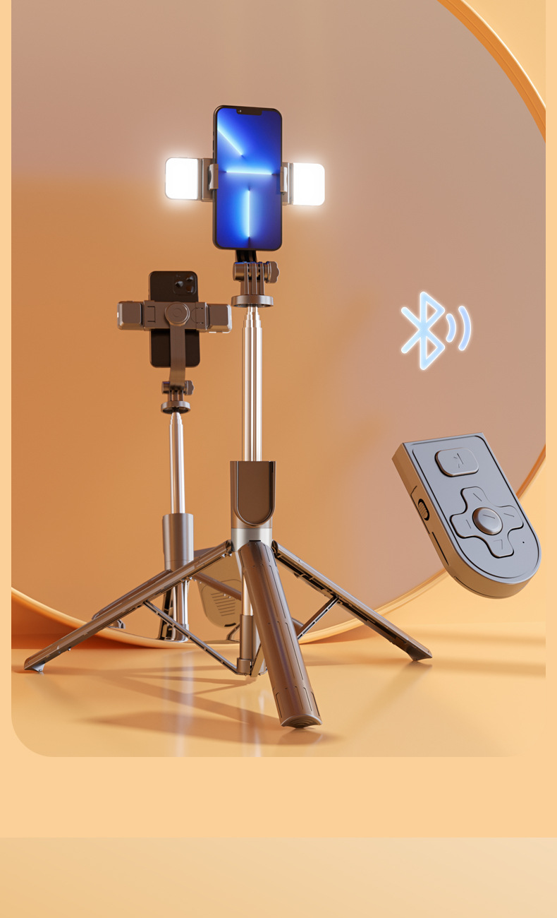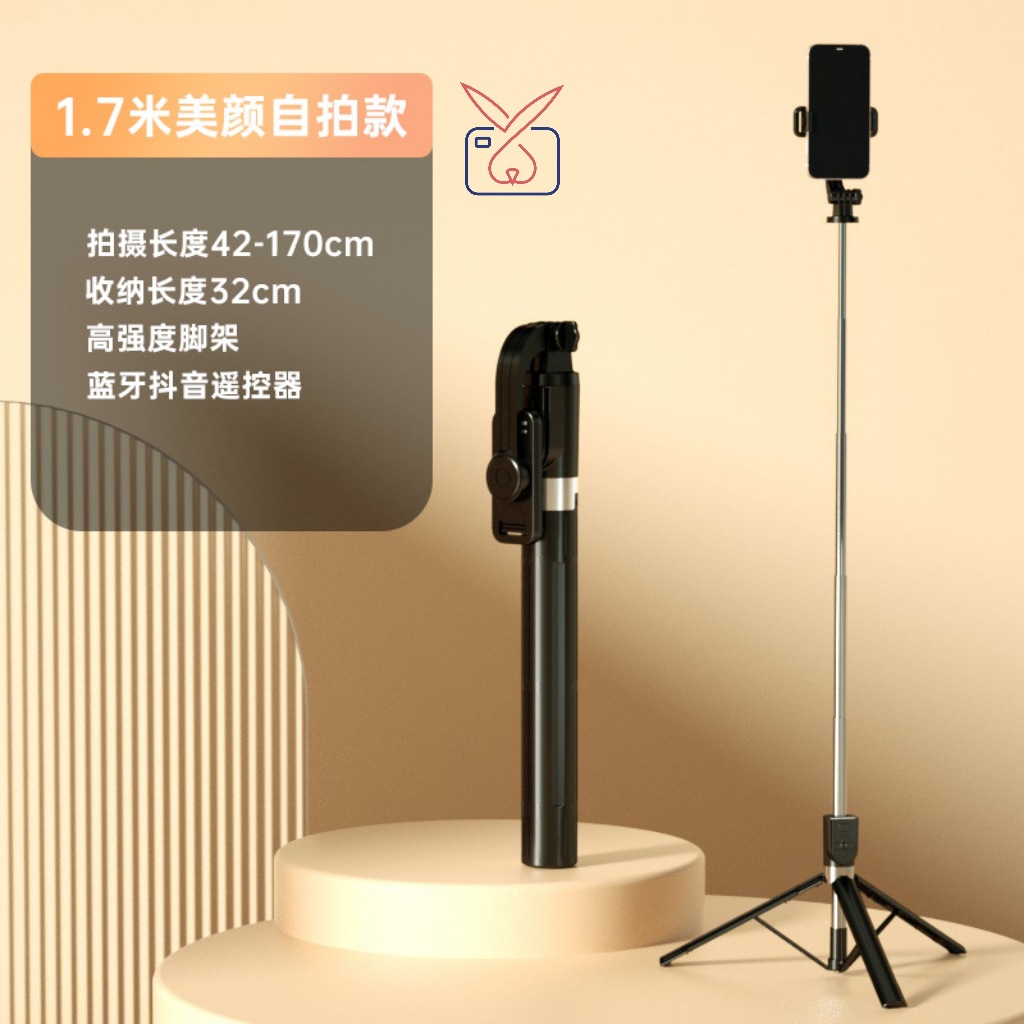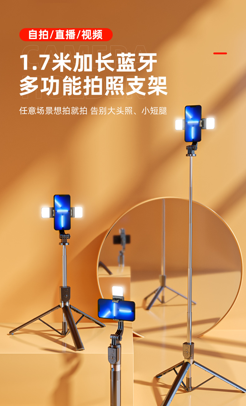 사진을 위한 블루투스 원격 제어 기능이 있는 맞춤형 1.7m 휴대폰 셀카봉 스테인레스 스틸 텔레스코픽 조정 가능한 일체형 삼각대