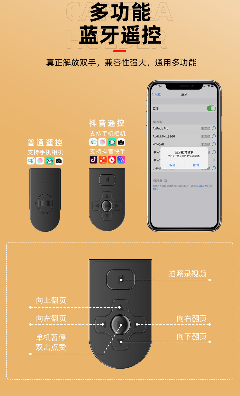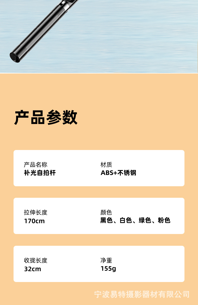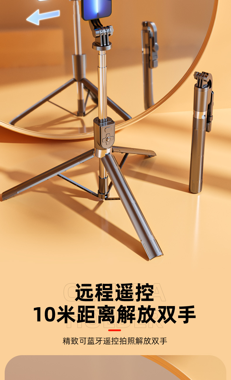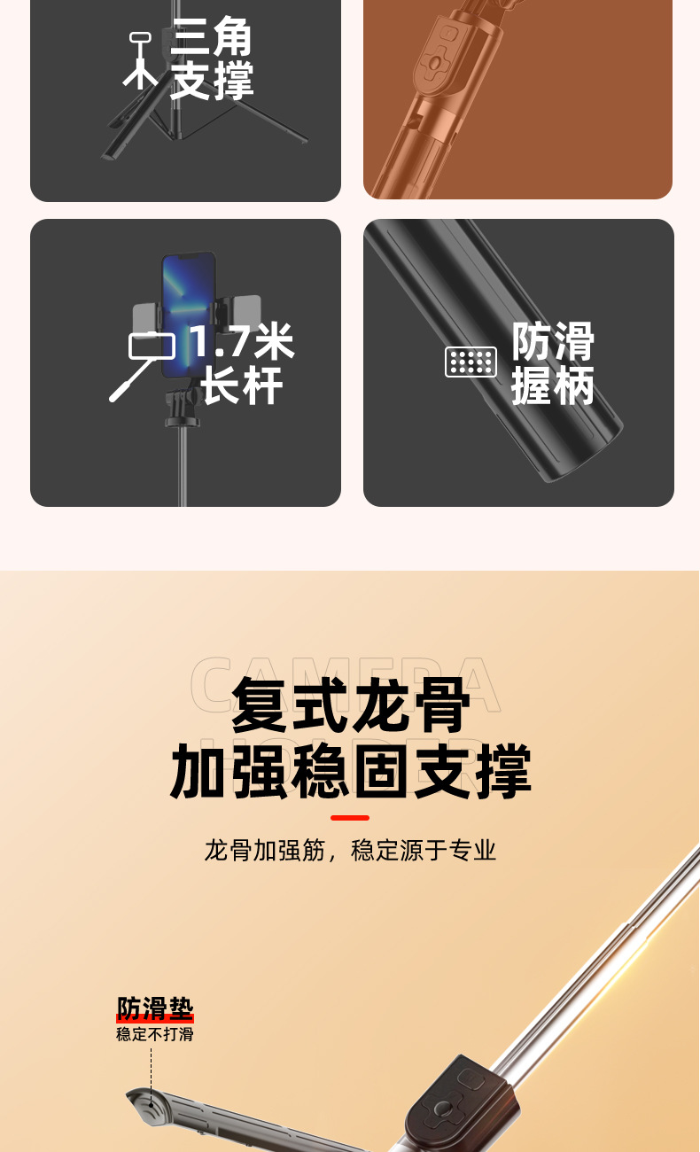 사진을 위한 블루투스 원격 제어 기능이 있는 맞춤형 1.7m 휴대폰 셀카봉 스테인레스 스틸 텔레스코픽 조정 가능한 일체형 삼각대