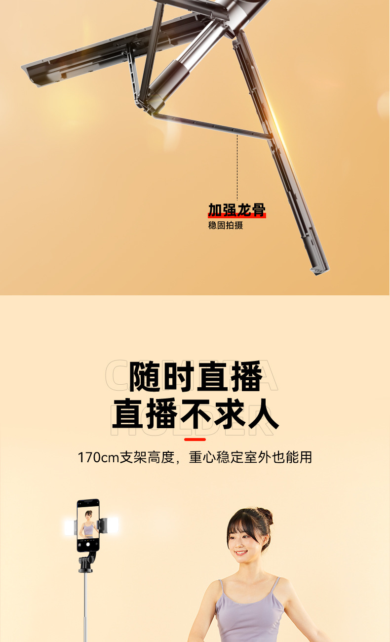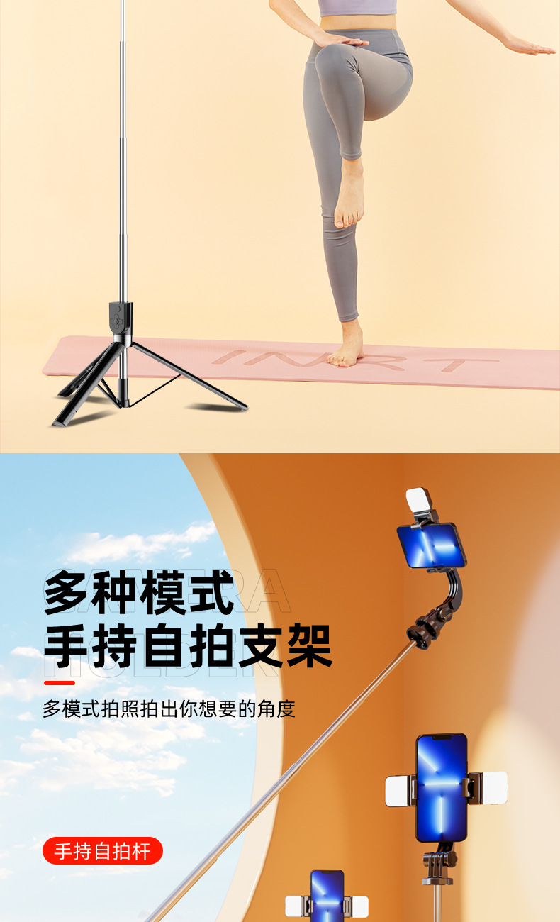 사진을 위한 블루투스 원격 제어 기능이 있는 맞춤형 1.7m 휴대폰 셀카봉 스테인레스 스틸 텔레스코픽 조정 가능한 일체형 삼각대스토어 가기