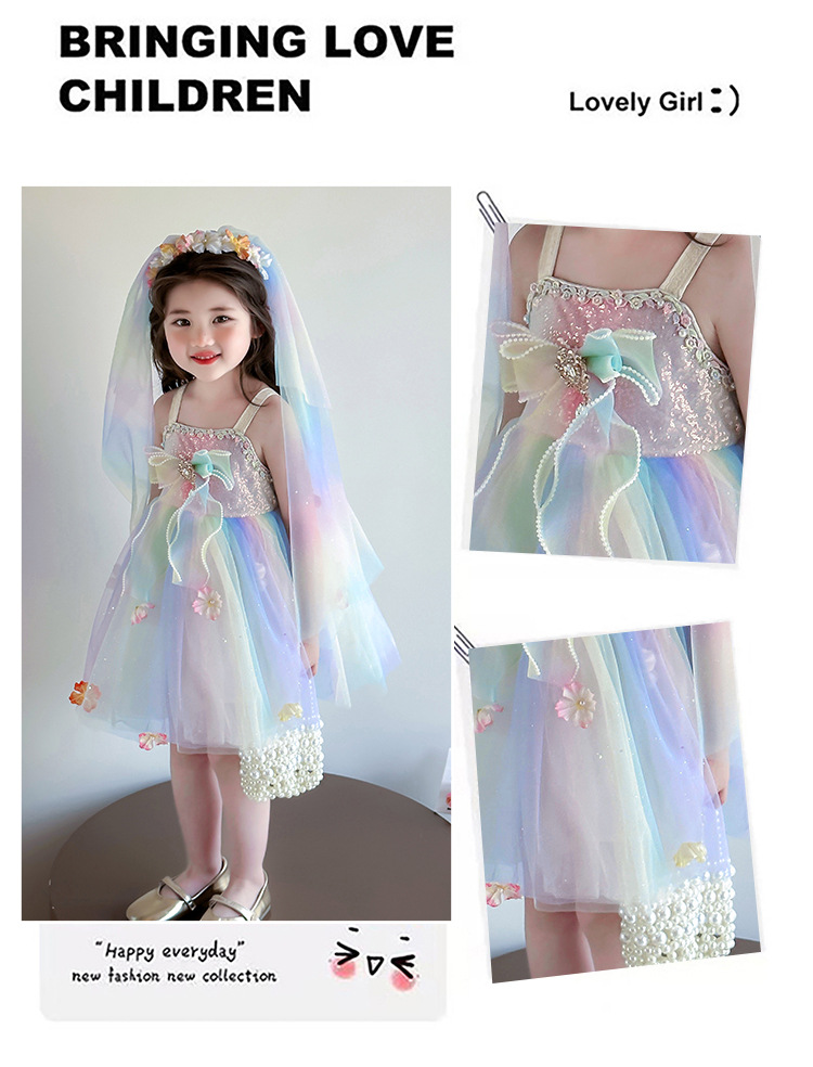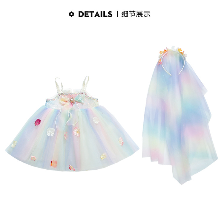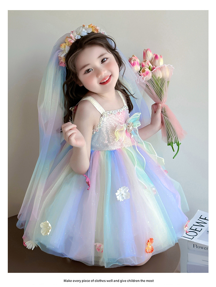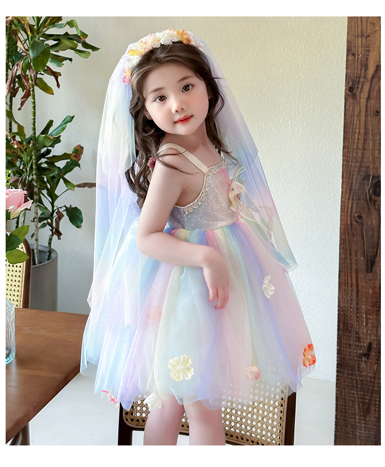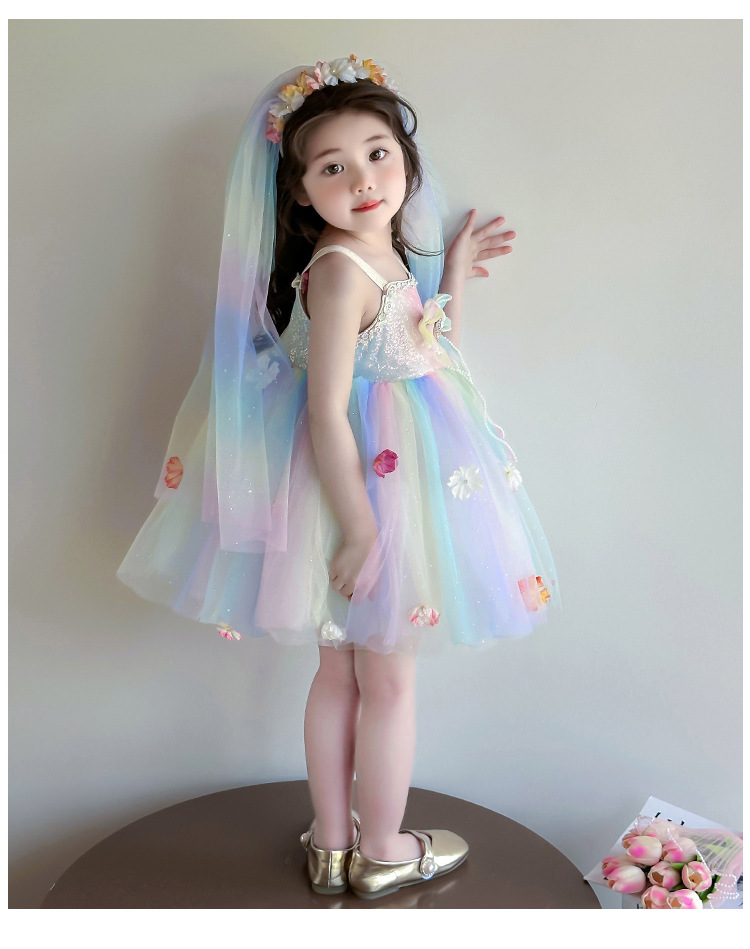 여성의 보물 슬링 꽃 요정 색 공주 원피스 2025 새로운 어린이 슈퍼 요정 조끼 메시 원피스
