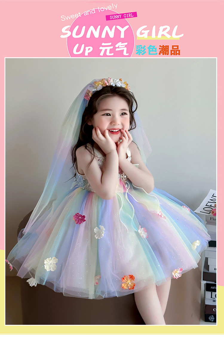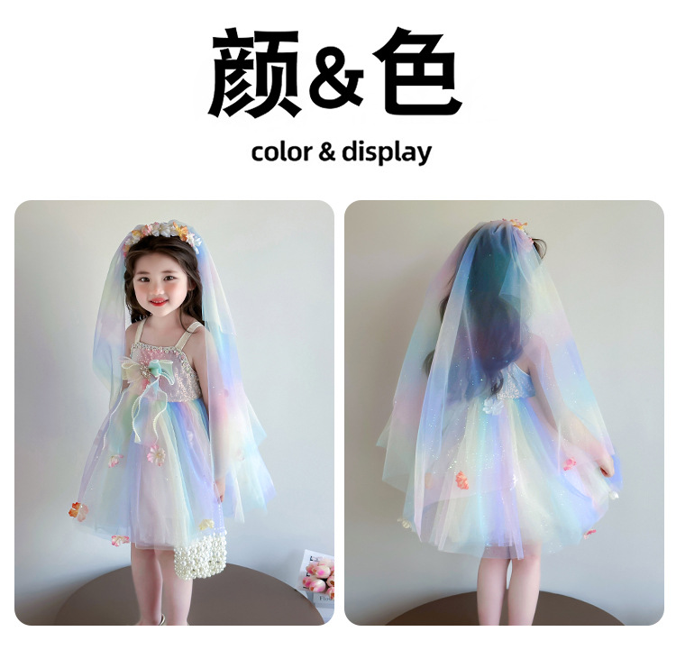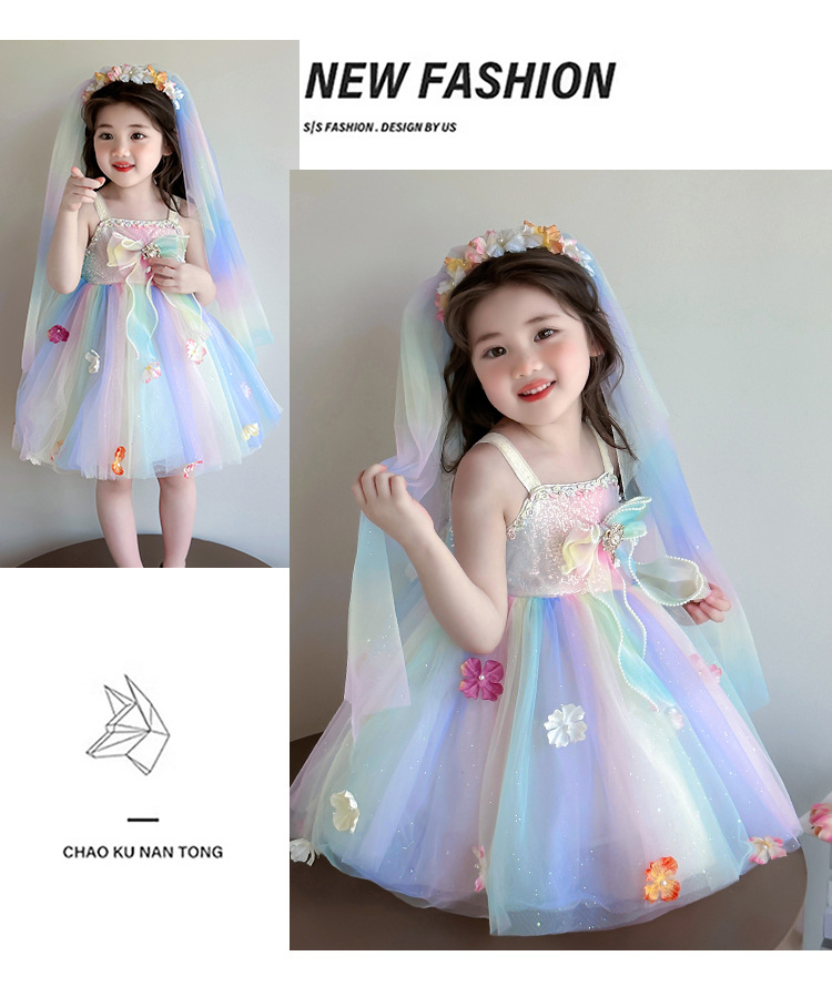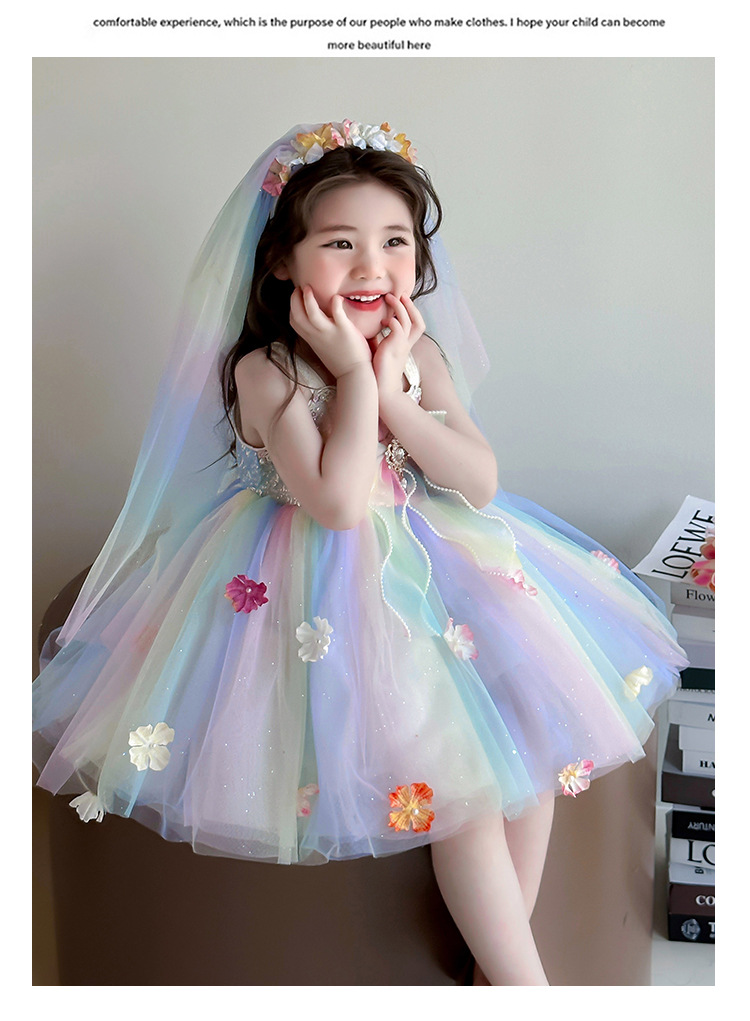 여성의 보물 슬링 꽃 요정 색 공주 원피스 2025 새로운 어린이 슈퍼 요정 조끼 메시 원피스스토어 가기