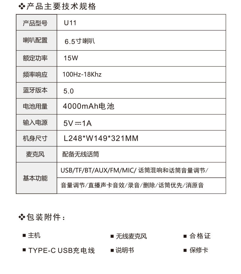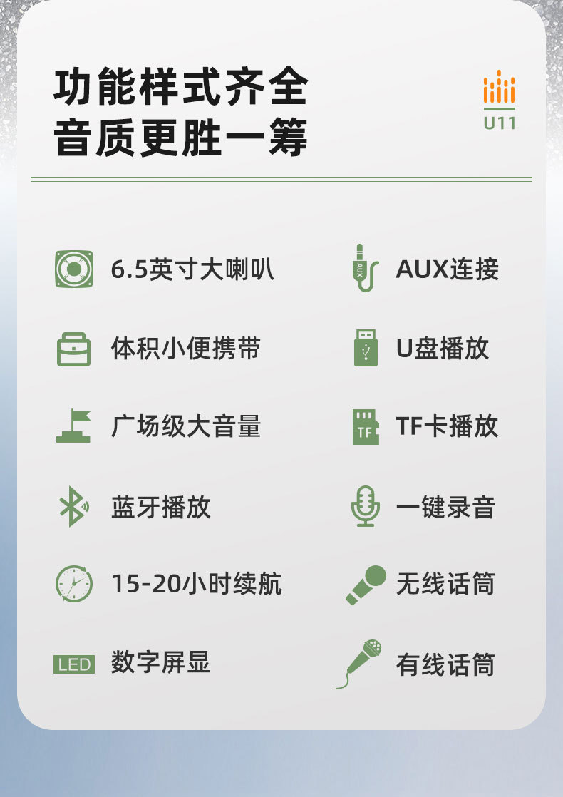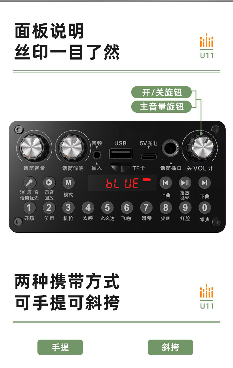 Shanshui U11 오디오 야외 스피커 노래방 스퀘어 댄스 휴대용 노래 및 춤 모바일 휴대용 마이크 고출력