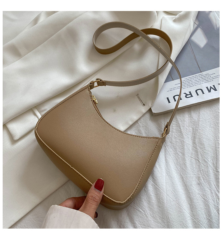 신상 단색 숄더백 여성용 가방 2025 레트로 홍콩 스타일 휴대용 겨드랑이 가방 고급스러운 스타일 핸드백스토어 가기