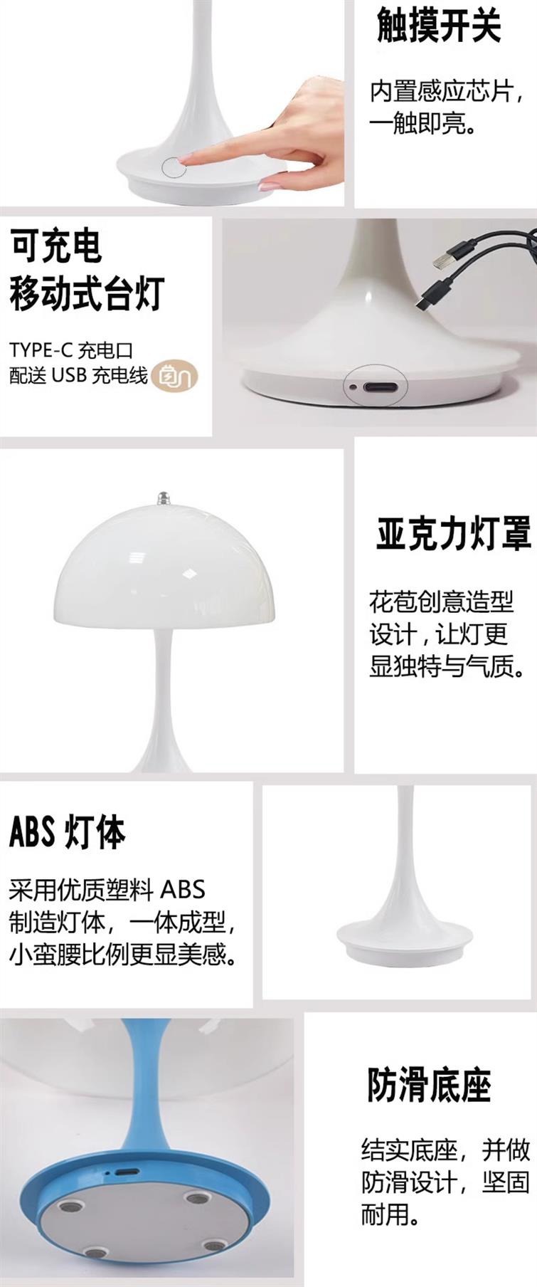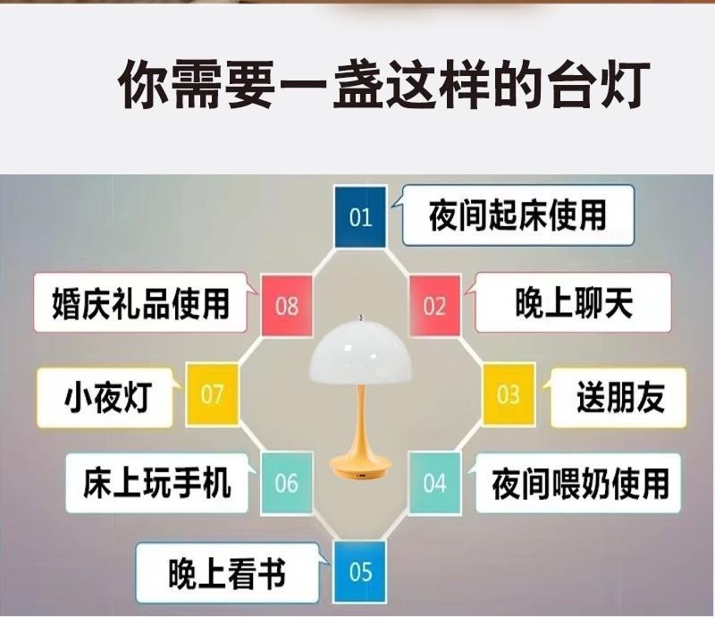 프렌치 크림 휴대용 버섯 테이블 램프 터치 캔들 조광 가능 침실 기숙사 침대 로맨틱 분위기 야간등스토어 가기
