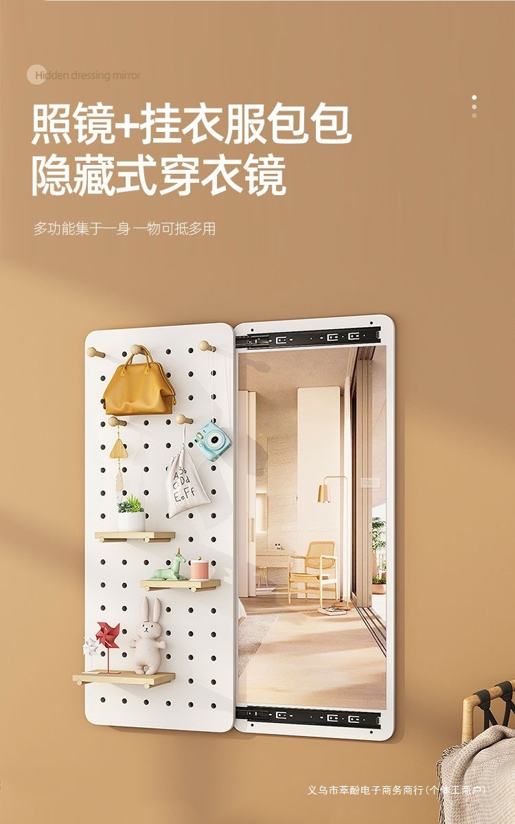 보이지 않는 전신 거울 푸시 풀 닫기 숨겨진 전신 거울 벽걸이 구멍 보드 복도 전신 거울