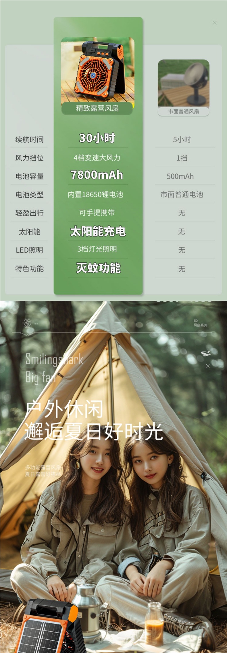 태양 충전 팬 야외 캠핑 usb 강한 바람 냉각 휴대용 냉동 에어컨 낚시 작은스토어 가기