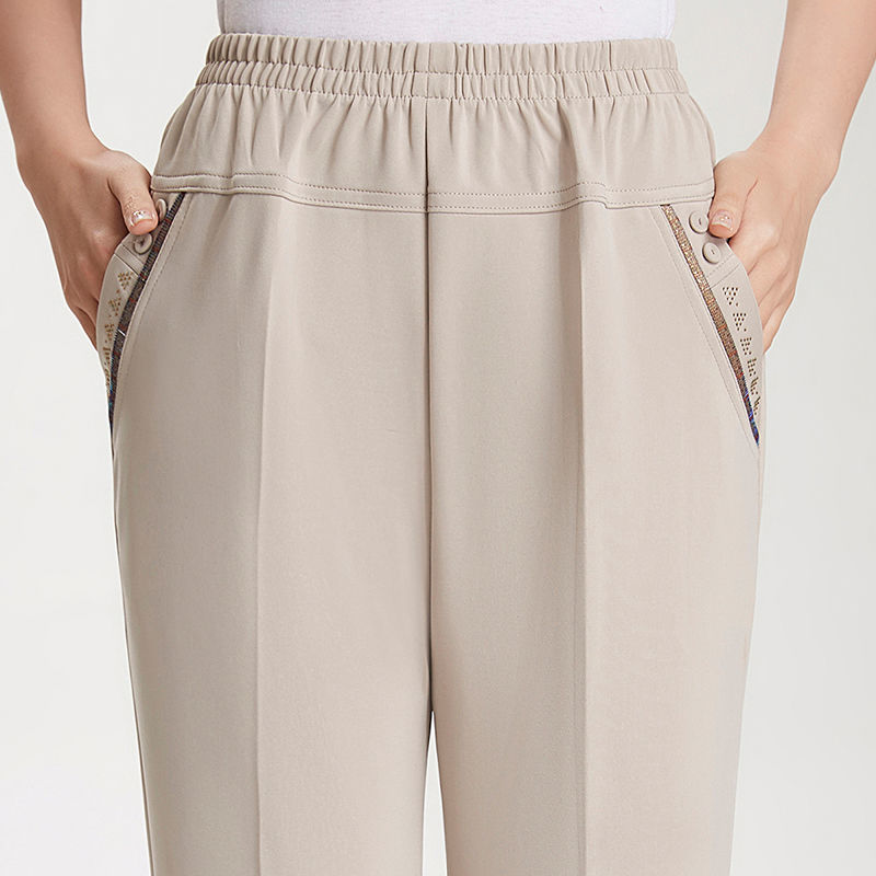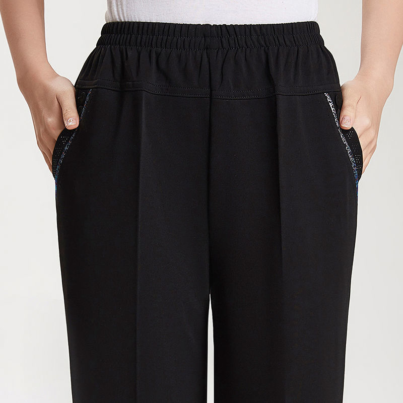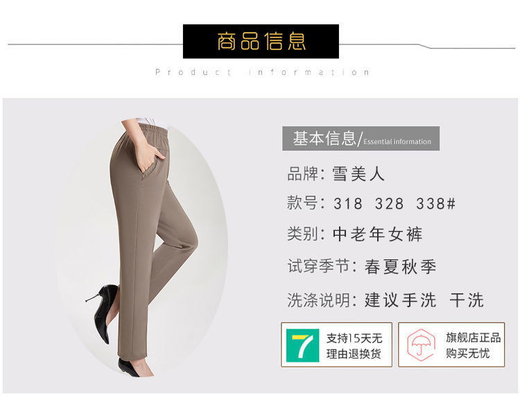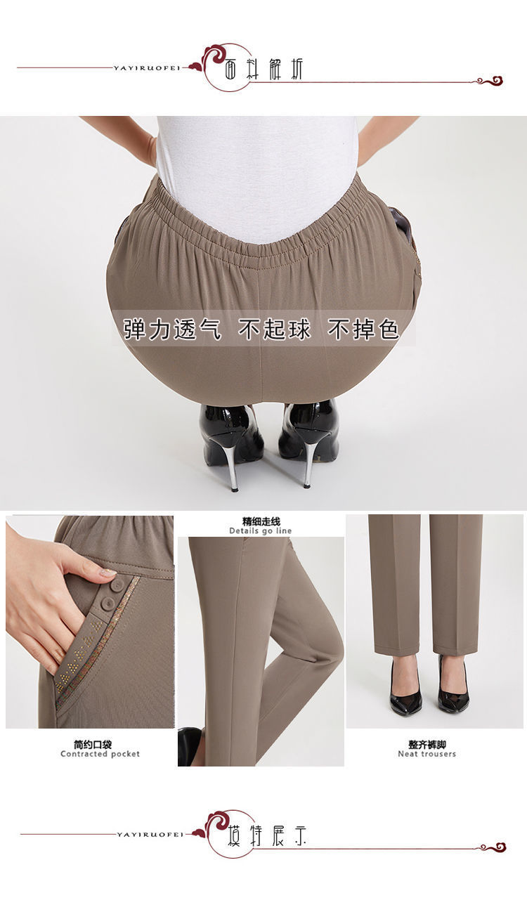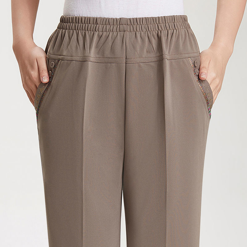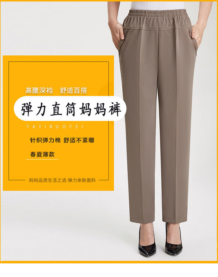 중년 및 노인 여성 바지 여름 얇은 어머니의 바지 스트레이트 높은 허리 탄성 허리 캐주얼 바지 노인 여성스토어 가기