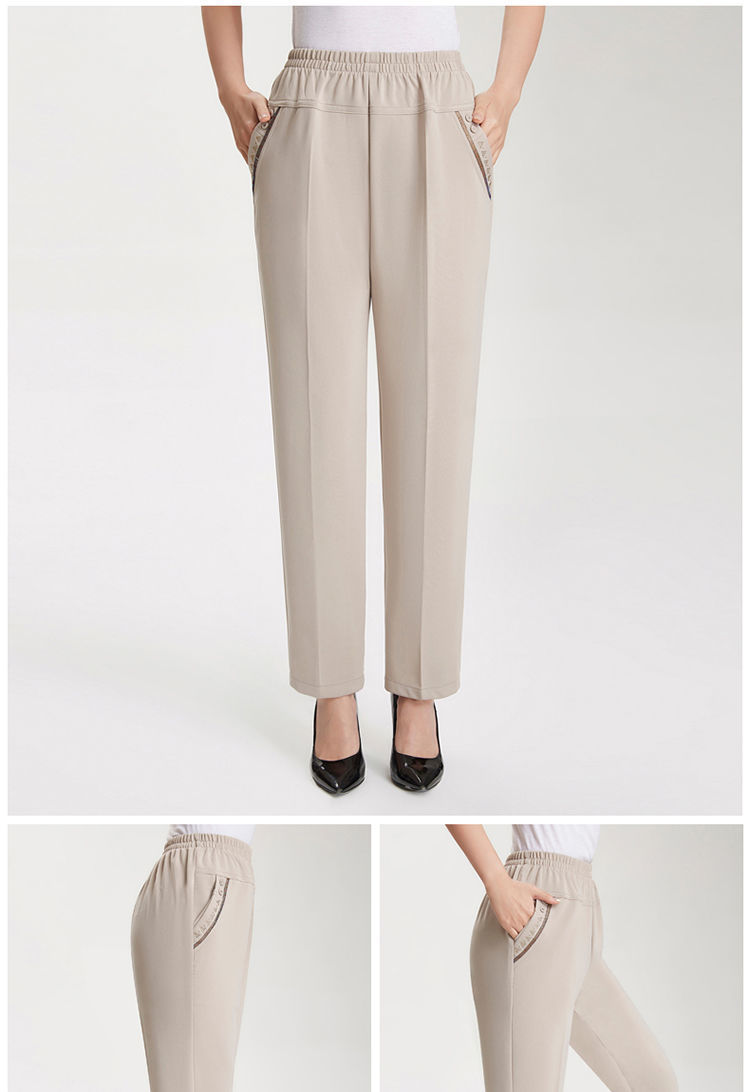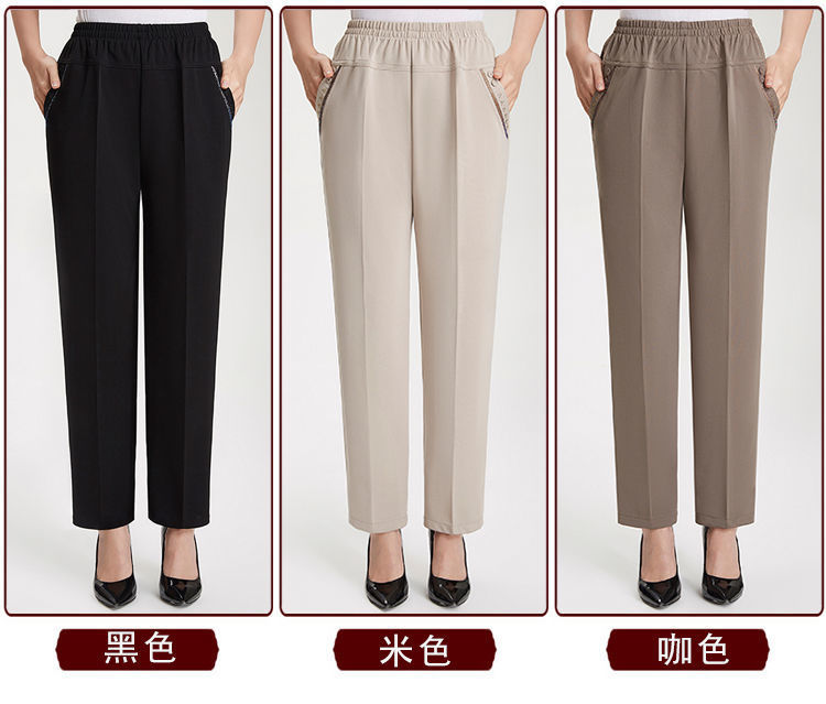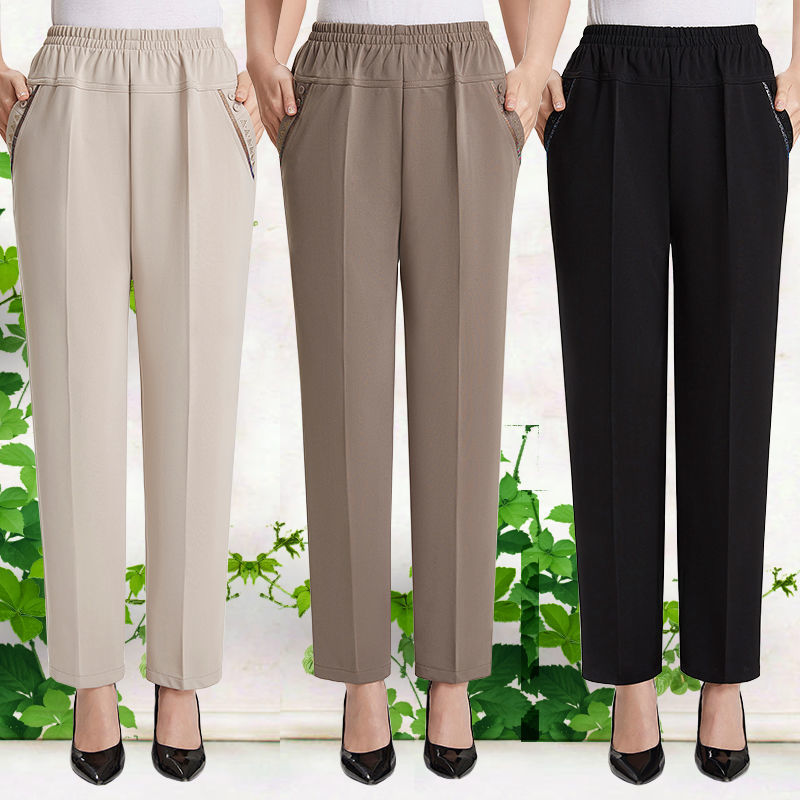 중년 및 노인 여성 바지 여름 얇은 어머니의 바지 스트레이트 높은 허리 탄성 허리 캐주얼 바지 노인 여성