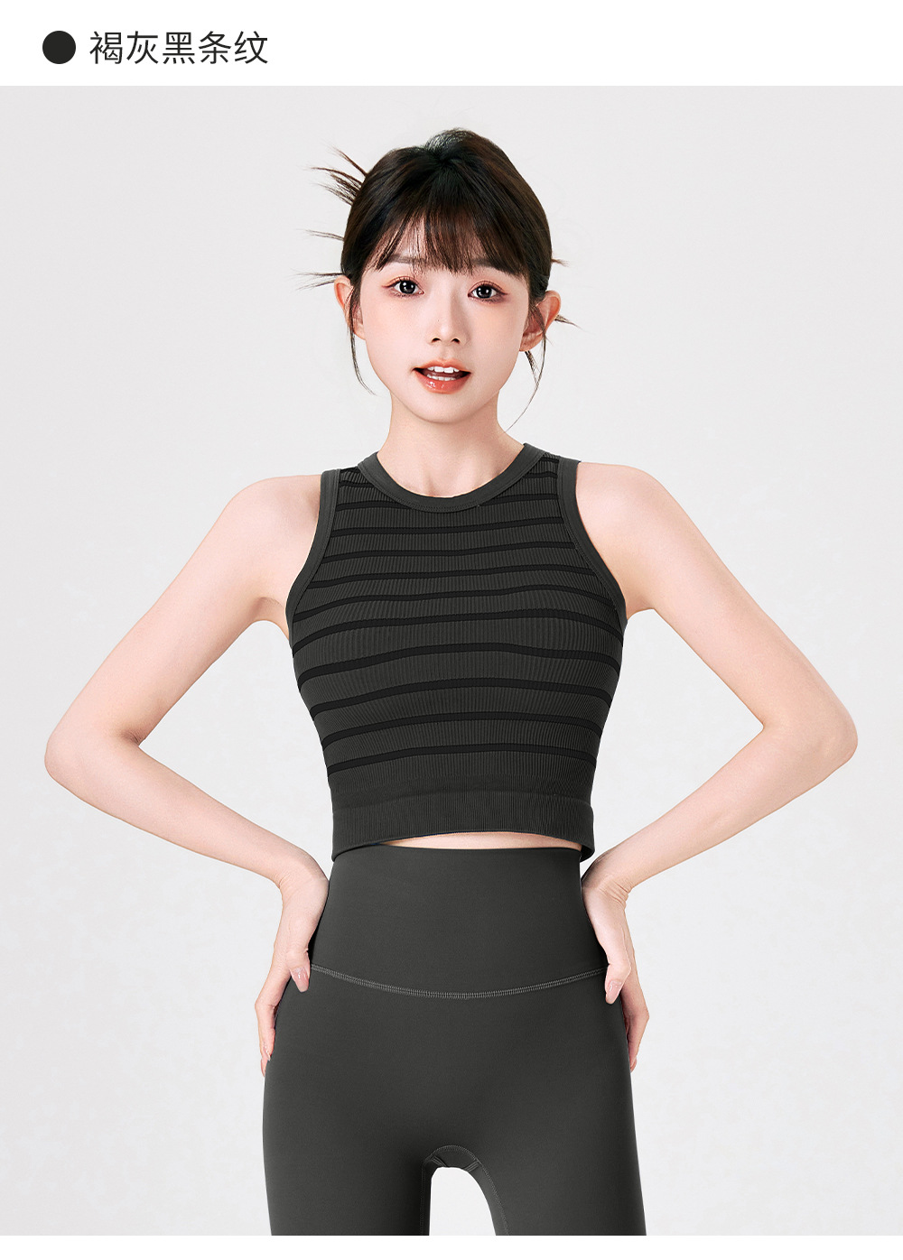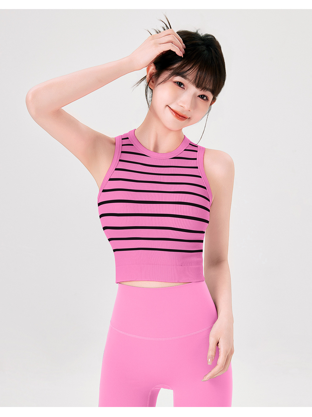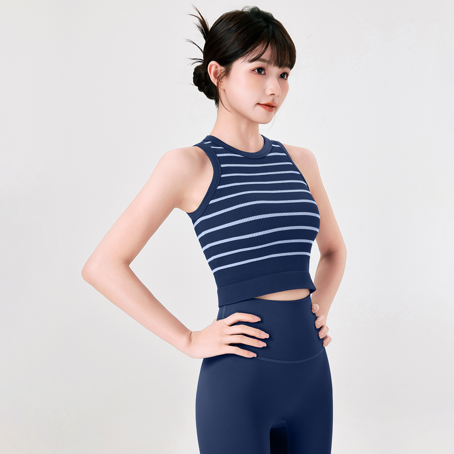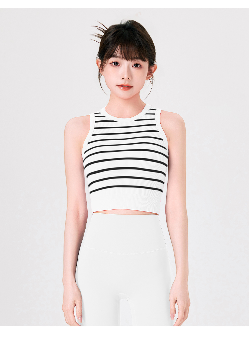줄무늬 피트니스 요가 조끼 여성 내베이스 짧은 니트 슬림 핏 허리 커버 유방 올 매치 민소매 탑