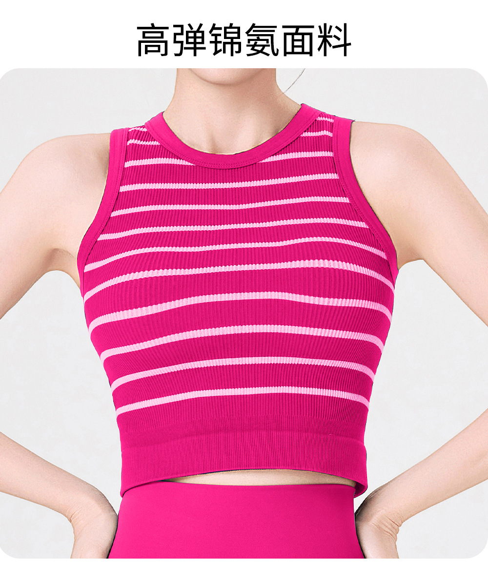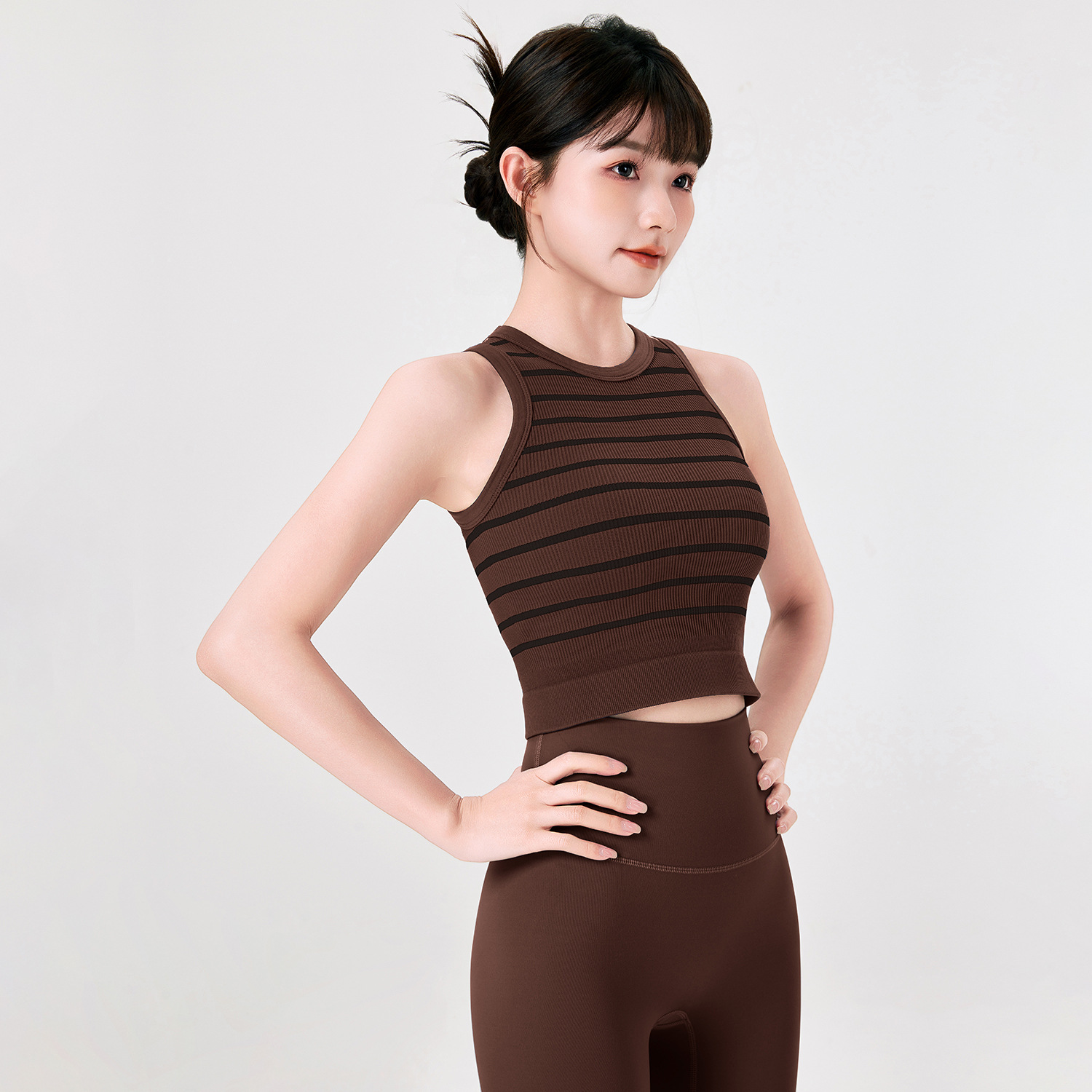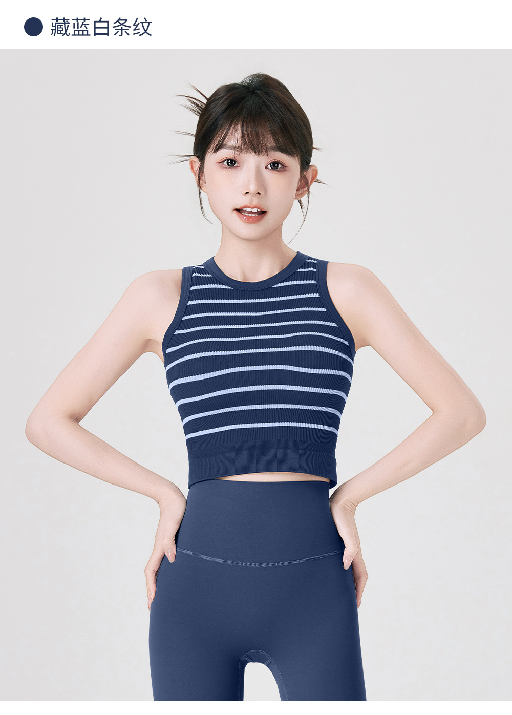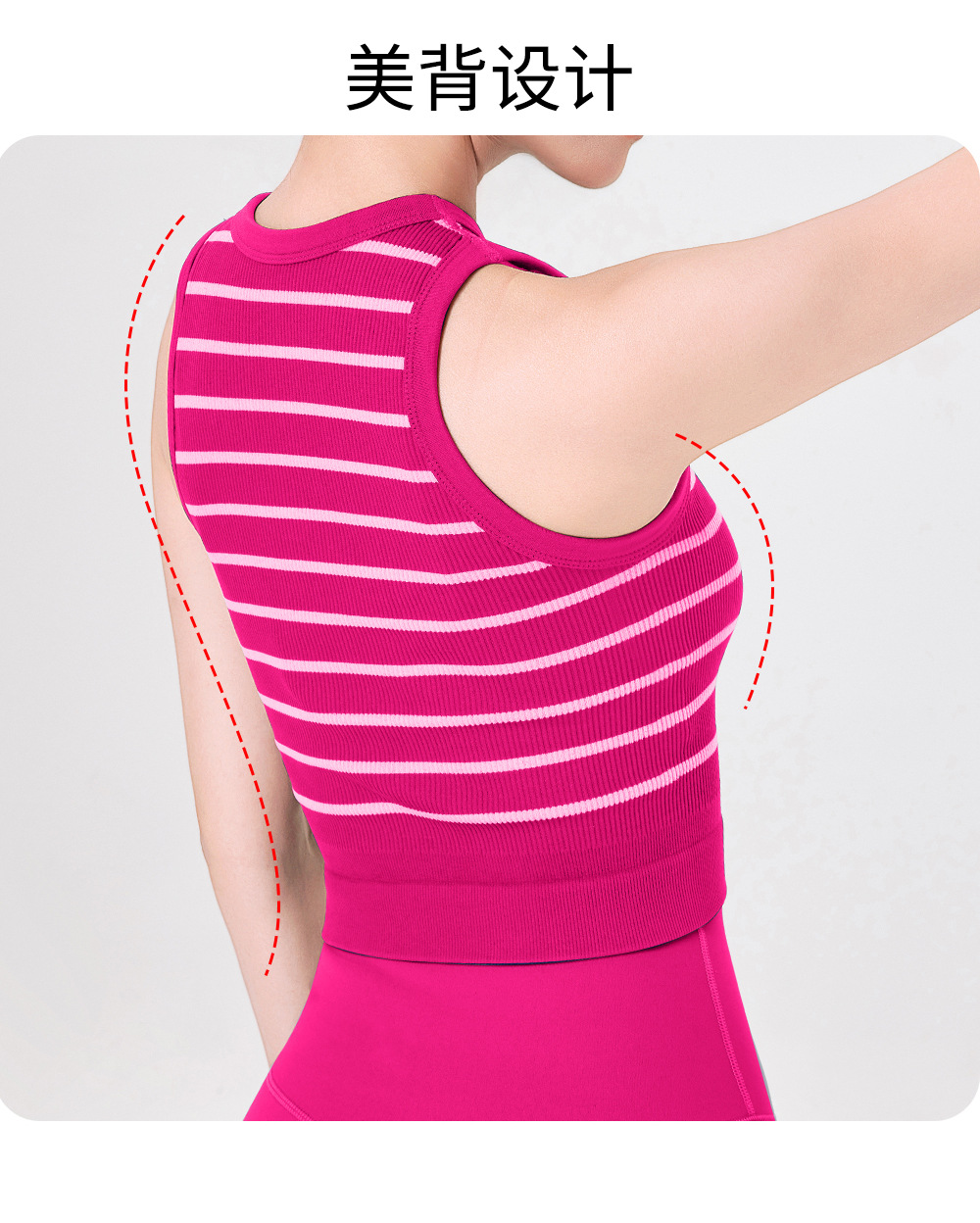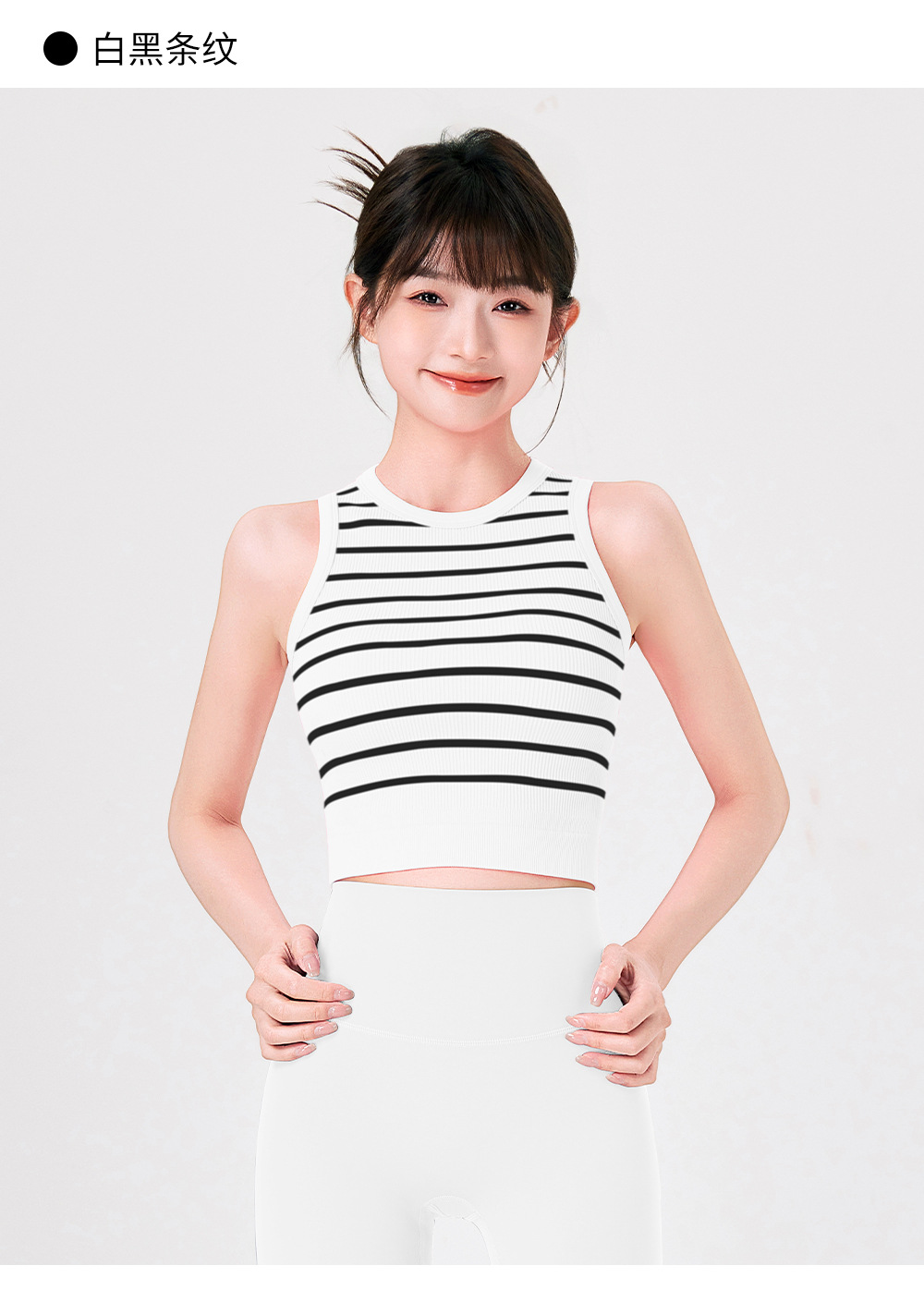 줄무늬 피트니스 요가 조끼 여성 내베이스 짧은 니트 슬림 핏 허리 커버 유방 올 매치 민소매 탑