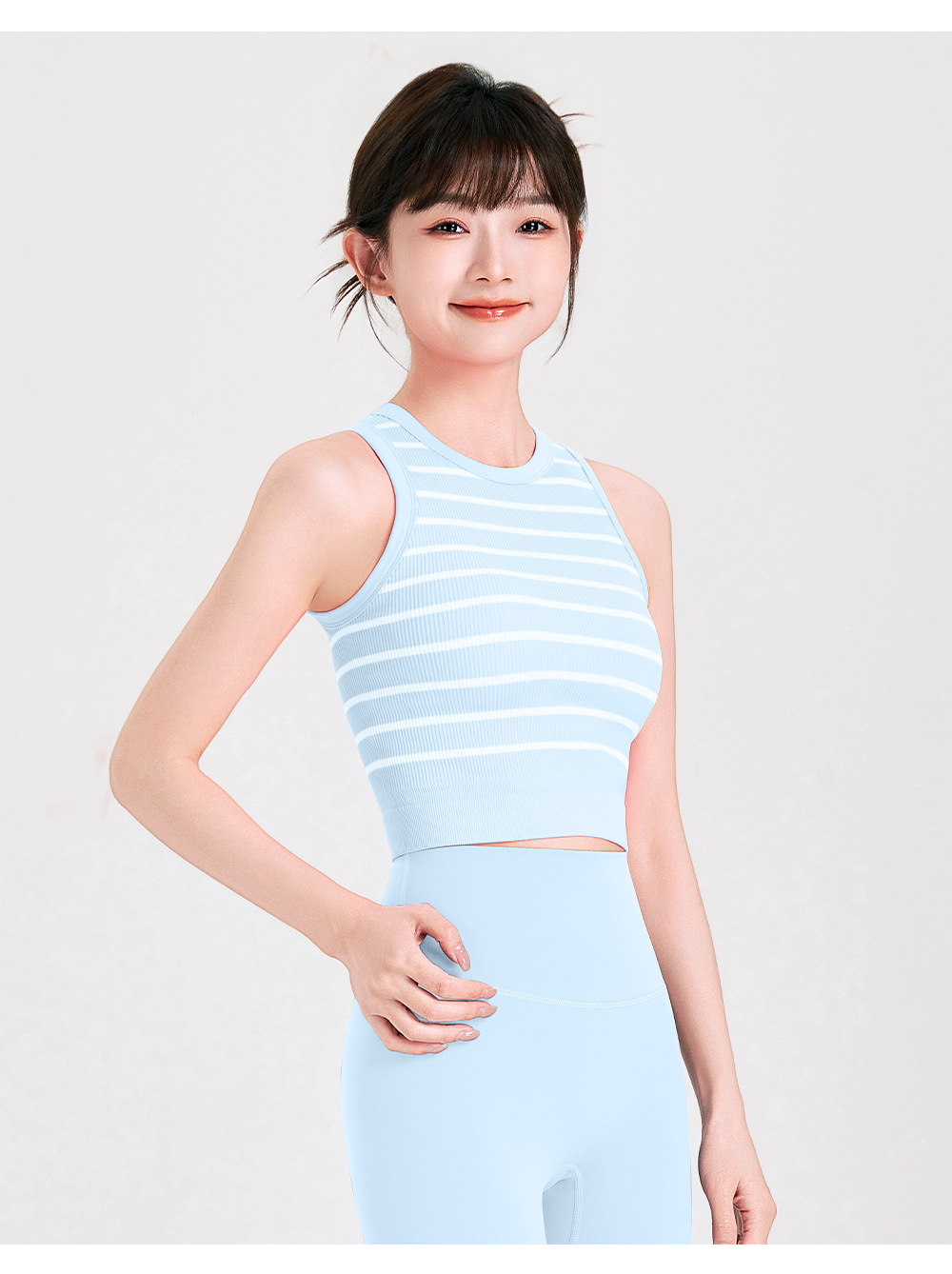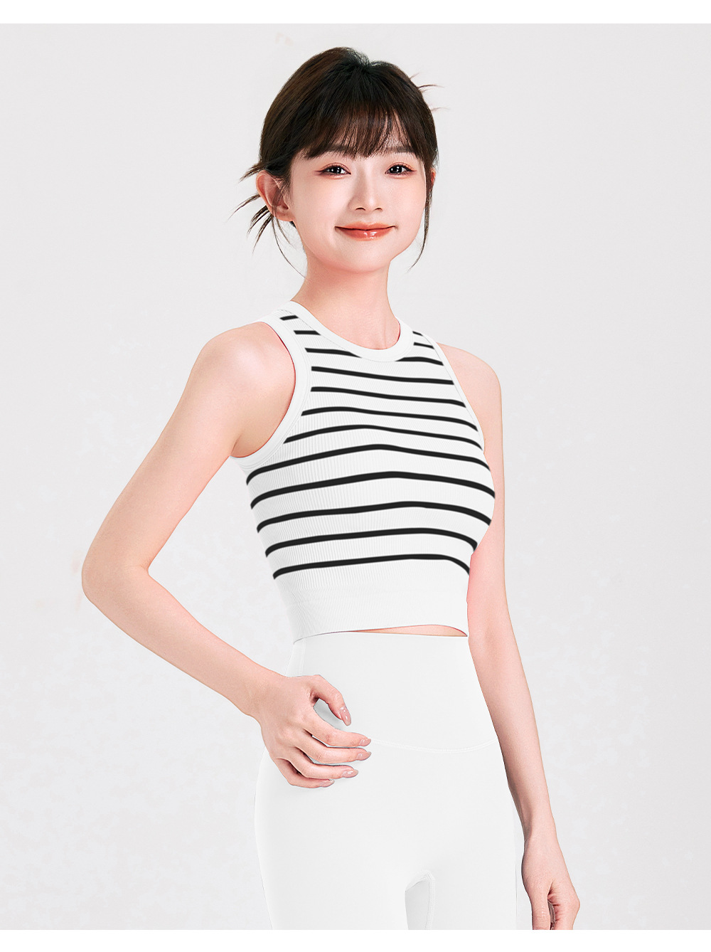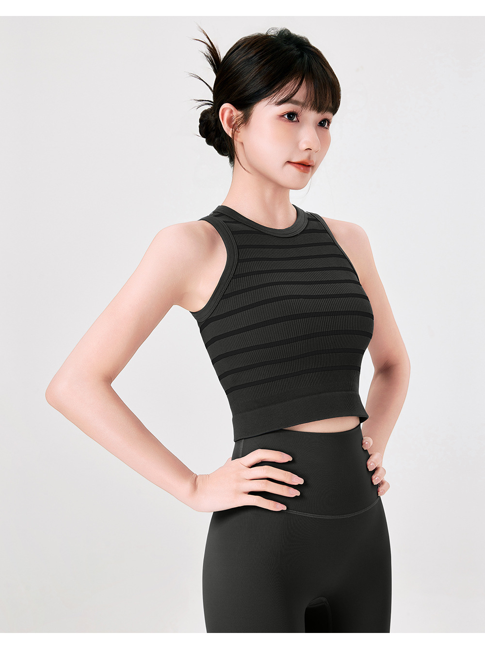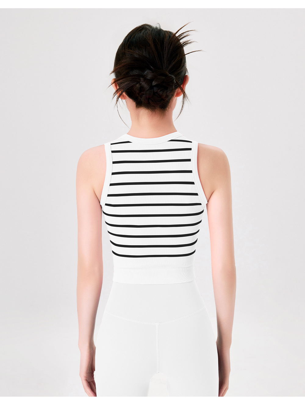 줄무늬 피트니스 요가 조끼 여성 내베이스 짧은 니트 슬림 핏 허리 커버 유방 올 매치 민소매 탑