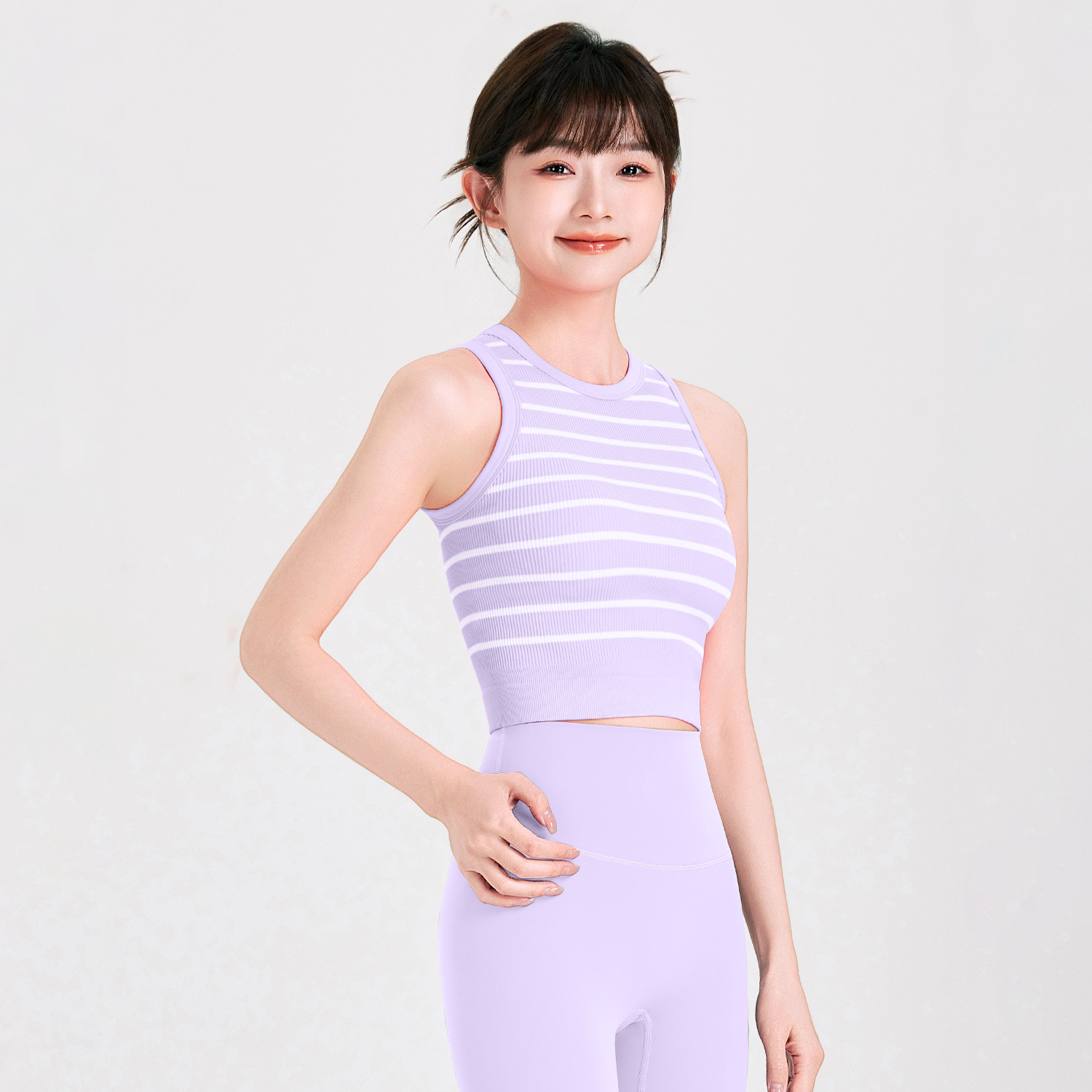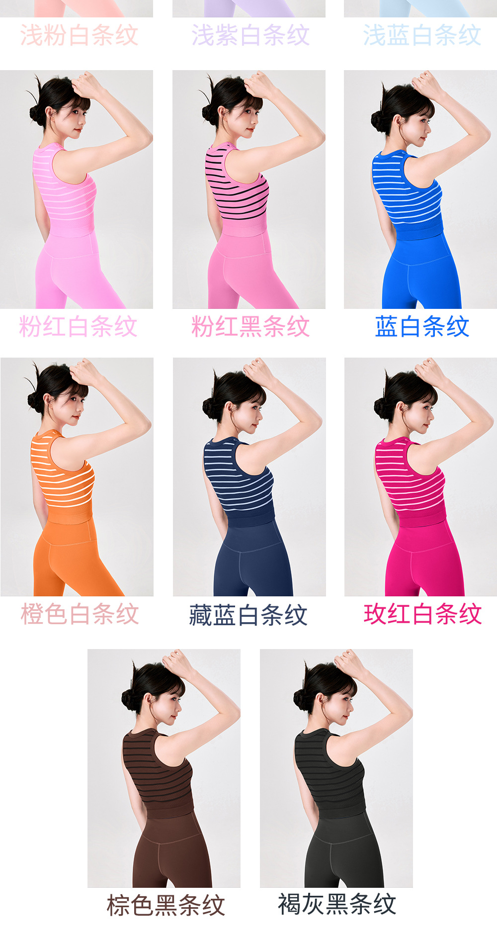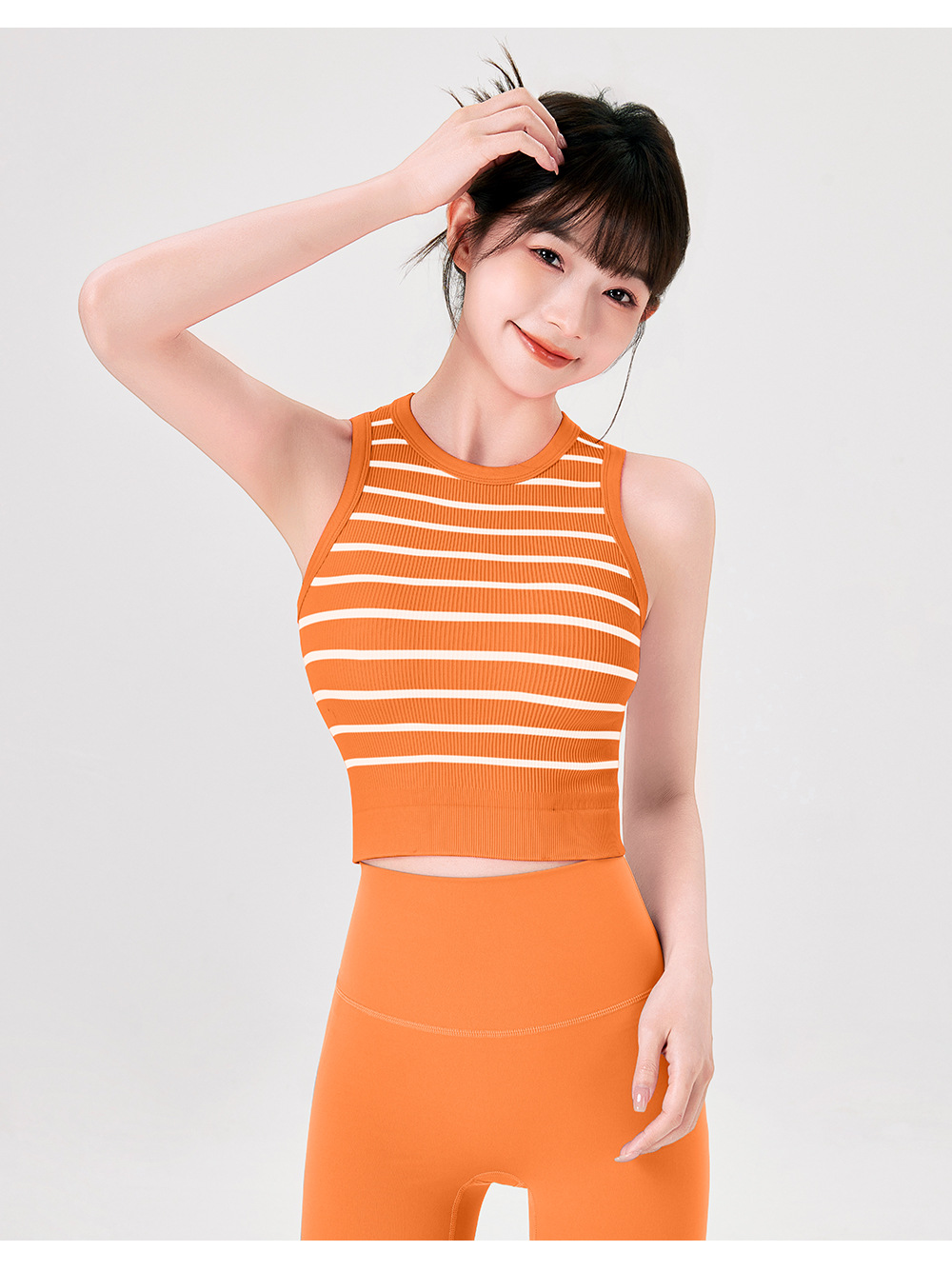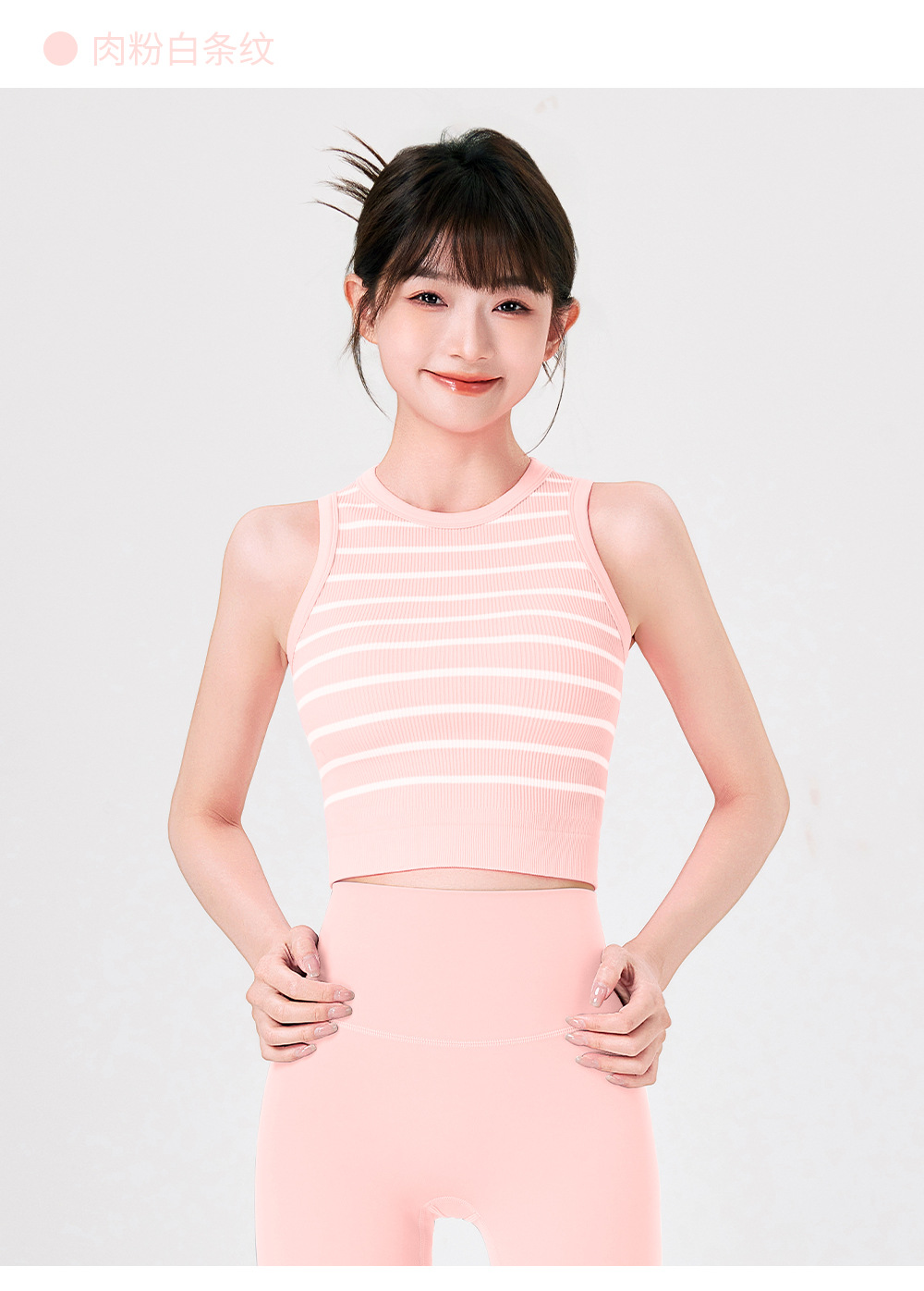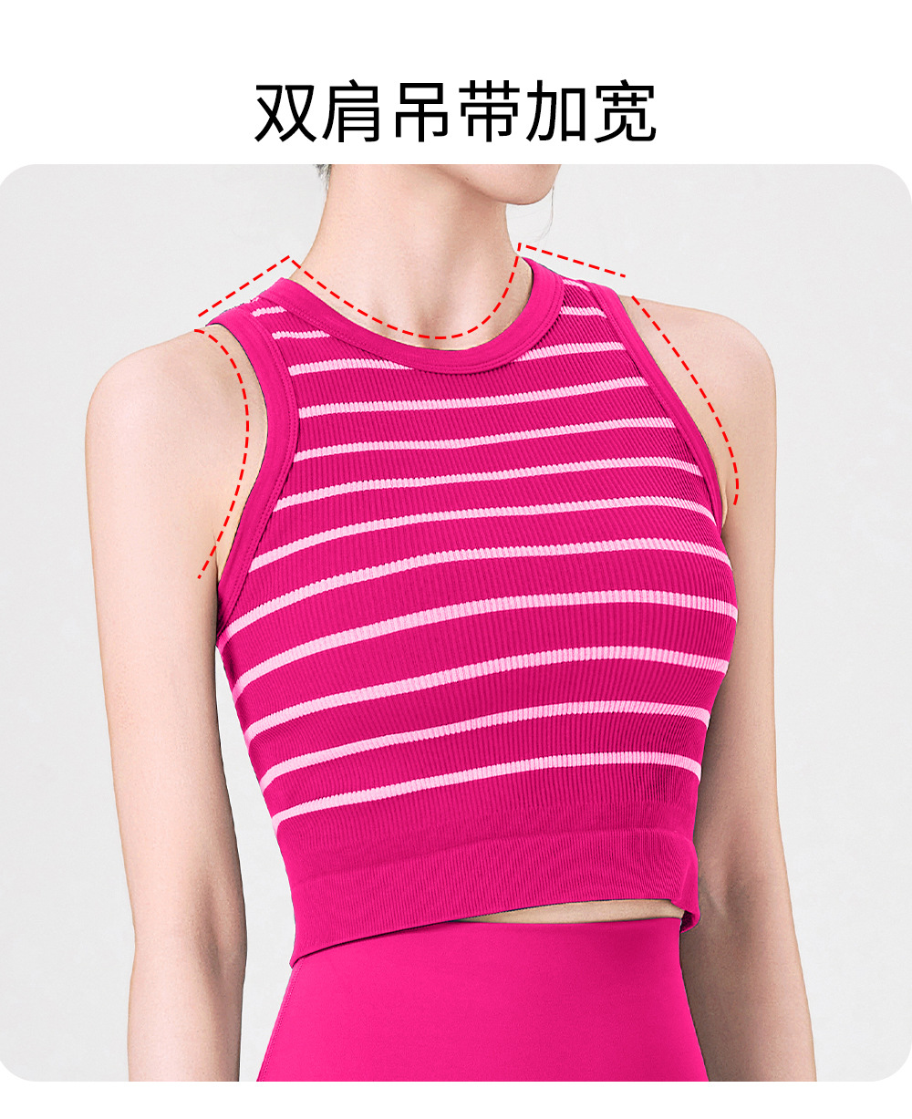 줄무늬 피트니스 요가 조끼 여성 내베이스 짧은 니트 슬림 핏 허리 커버 유방 올 매치 민소매 탑