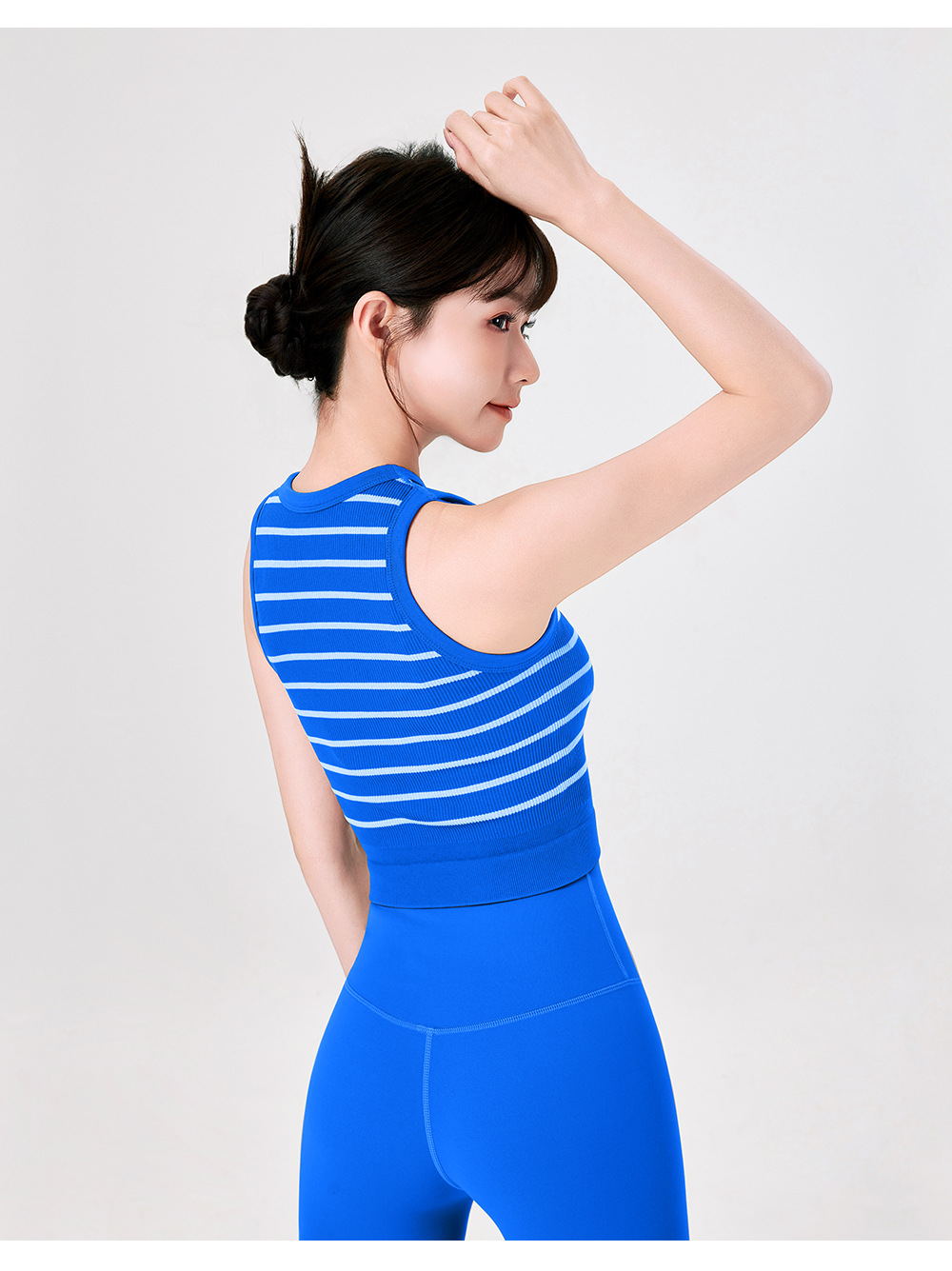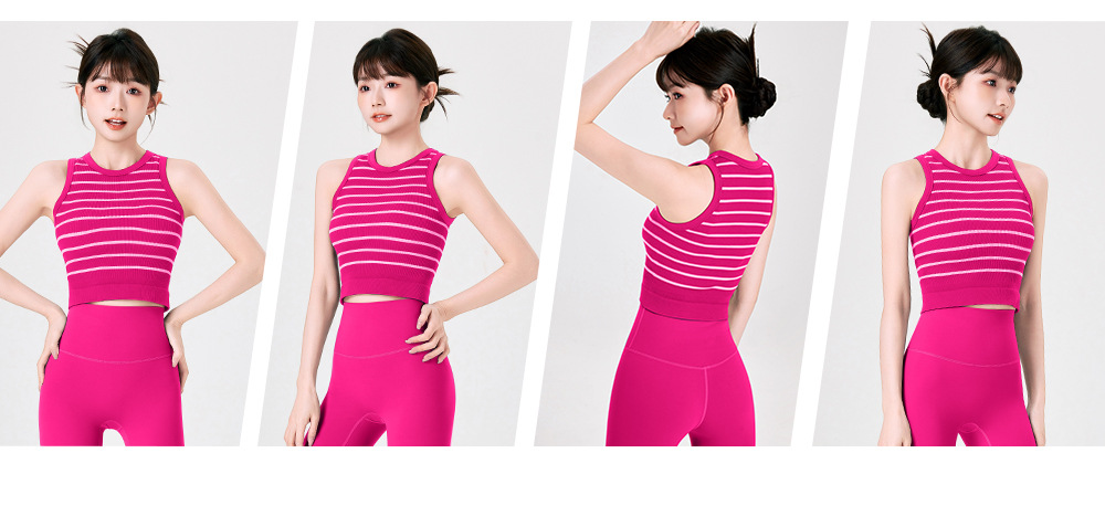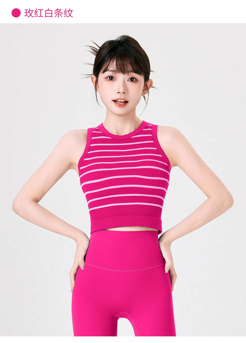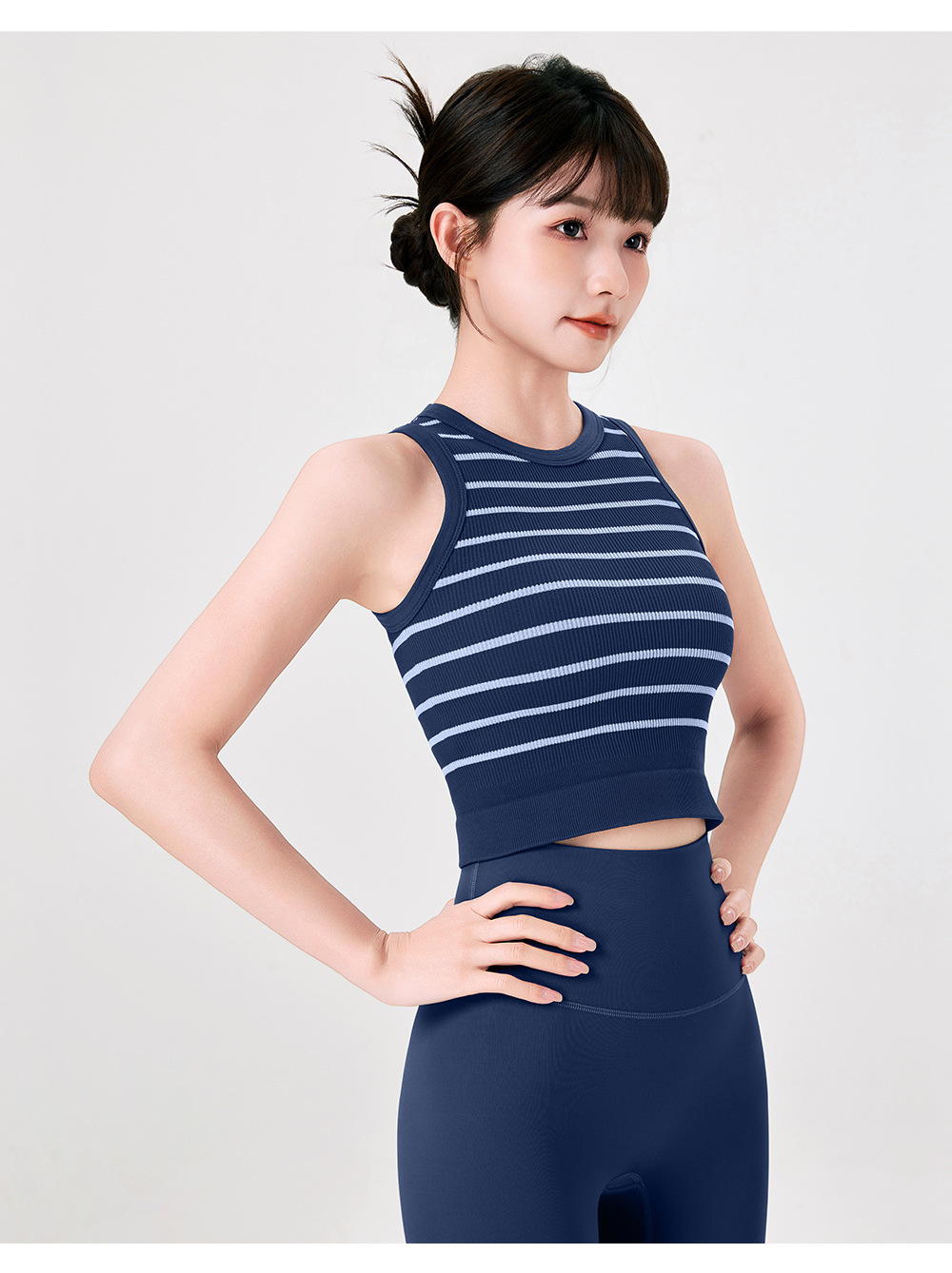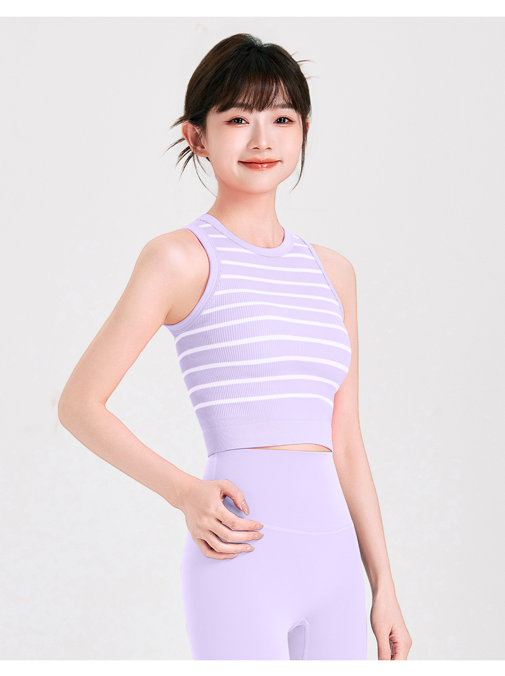 줄무늬 피트니스 요가 조끼 여성 내베이스 짧은 니트 슬림 핏 허리 커버 유방 올 매치 민소매 탑