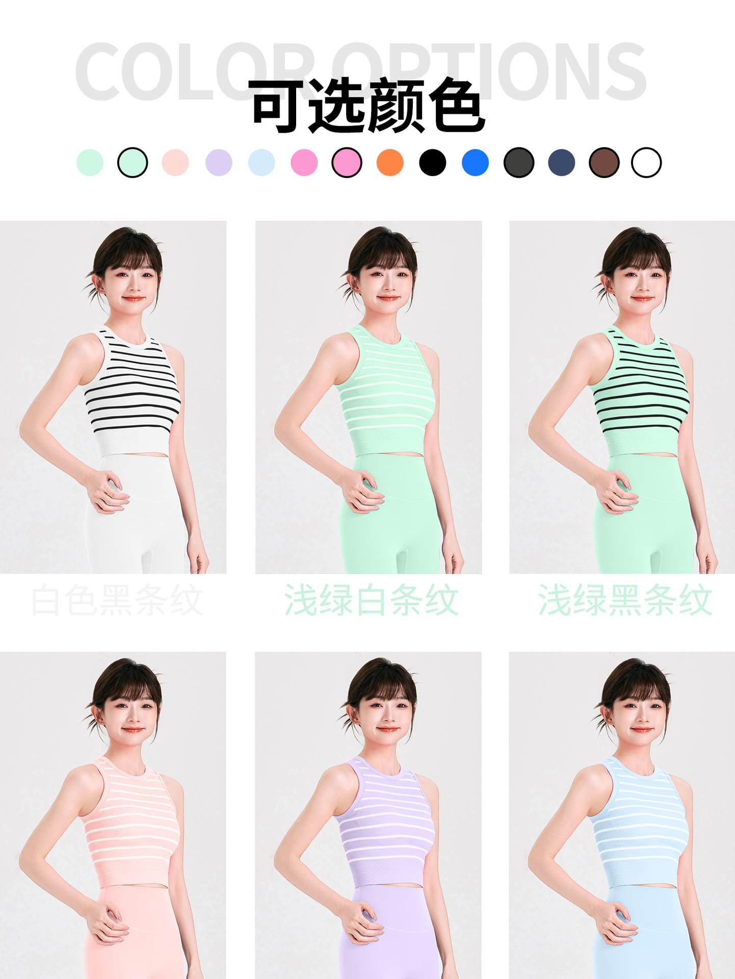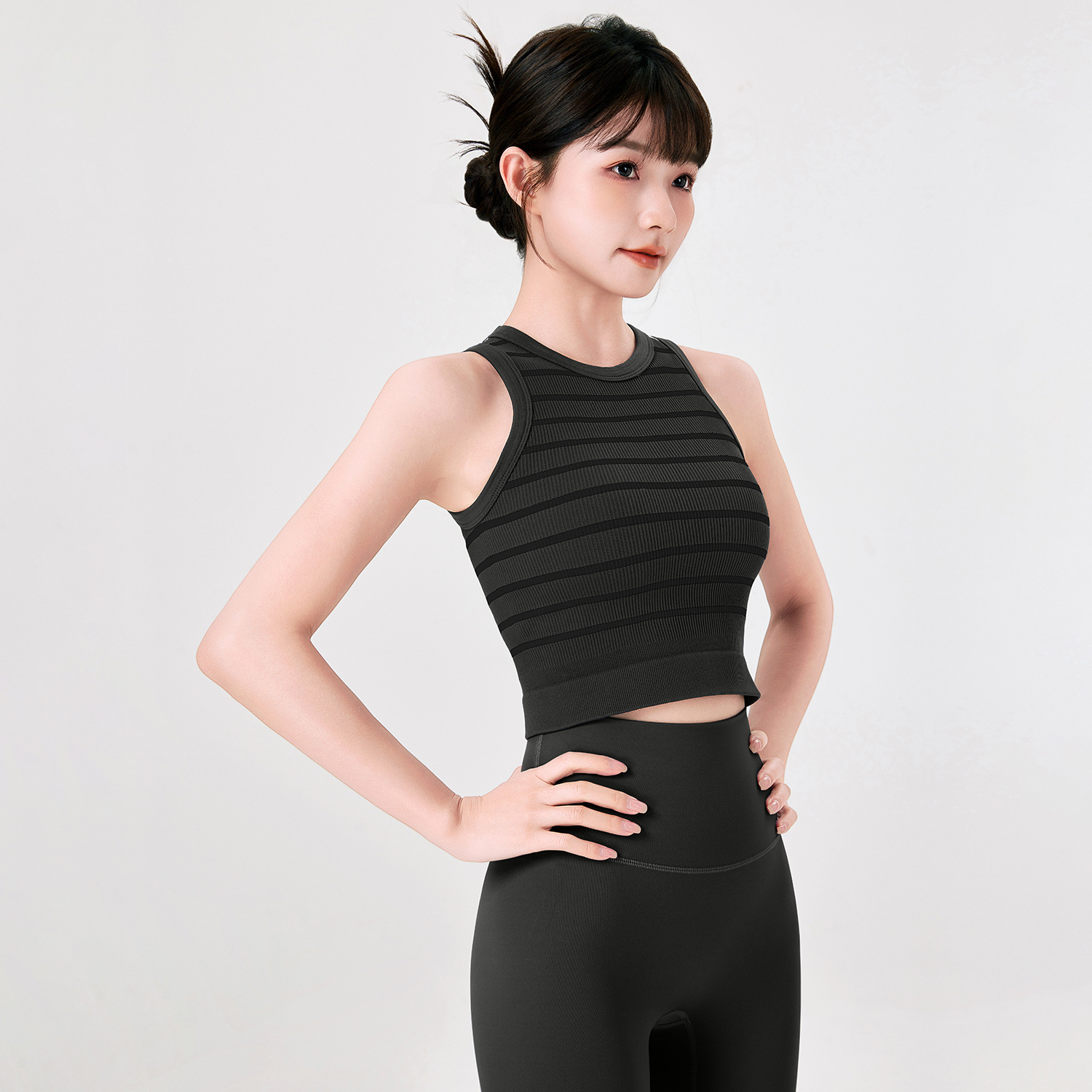 줄무늬 피트니스 요가 조끼 여성 내베이스 짧은 니트 슬림 핏 허리 커버 유방 올 매치 민소매 탑스토어 가기