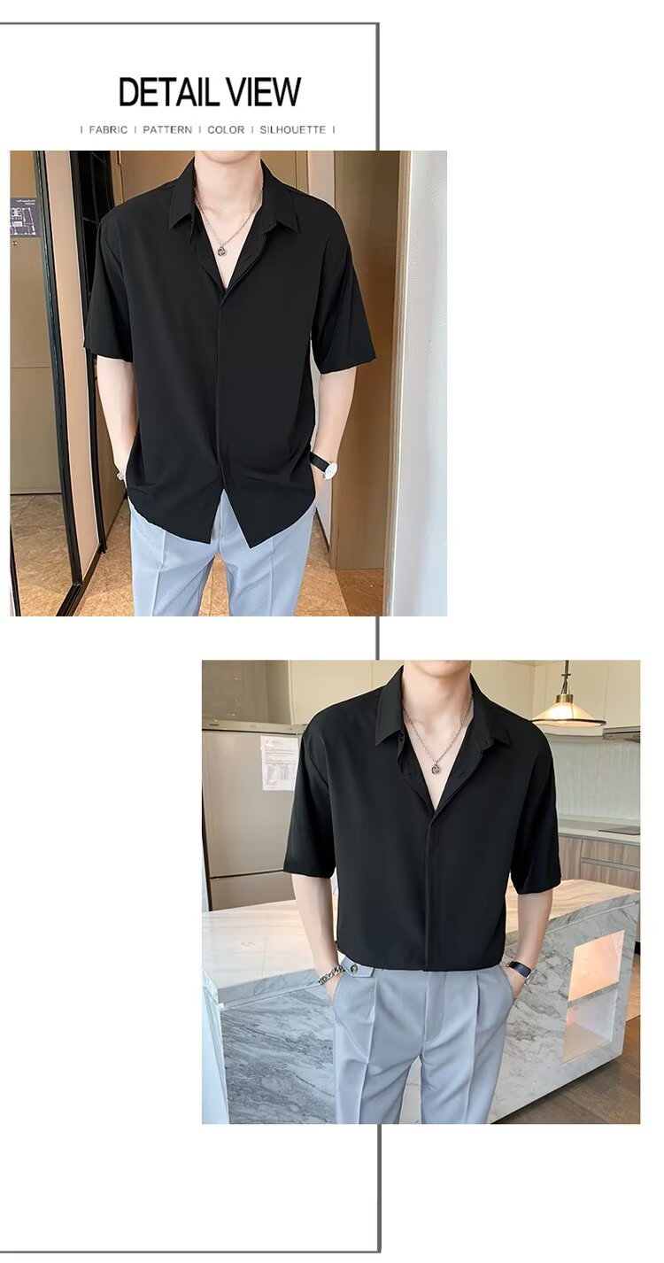 여름 반팔 셔츠 남자 홍콩 스타일 트렌디 인 캐주얼 루즈 내복 남성 하이 엔드 틈새 반소매 셔츠
