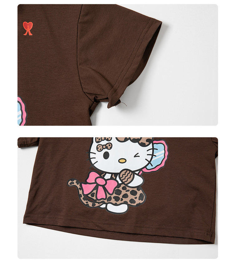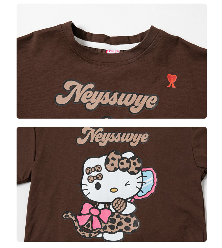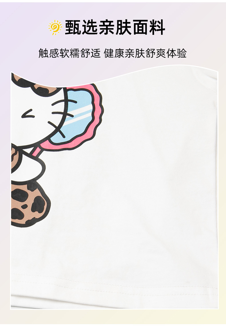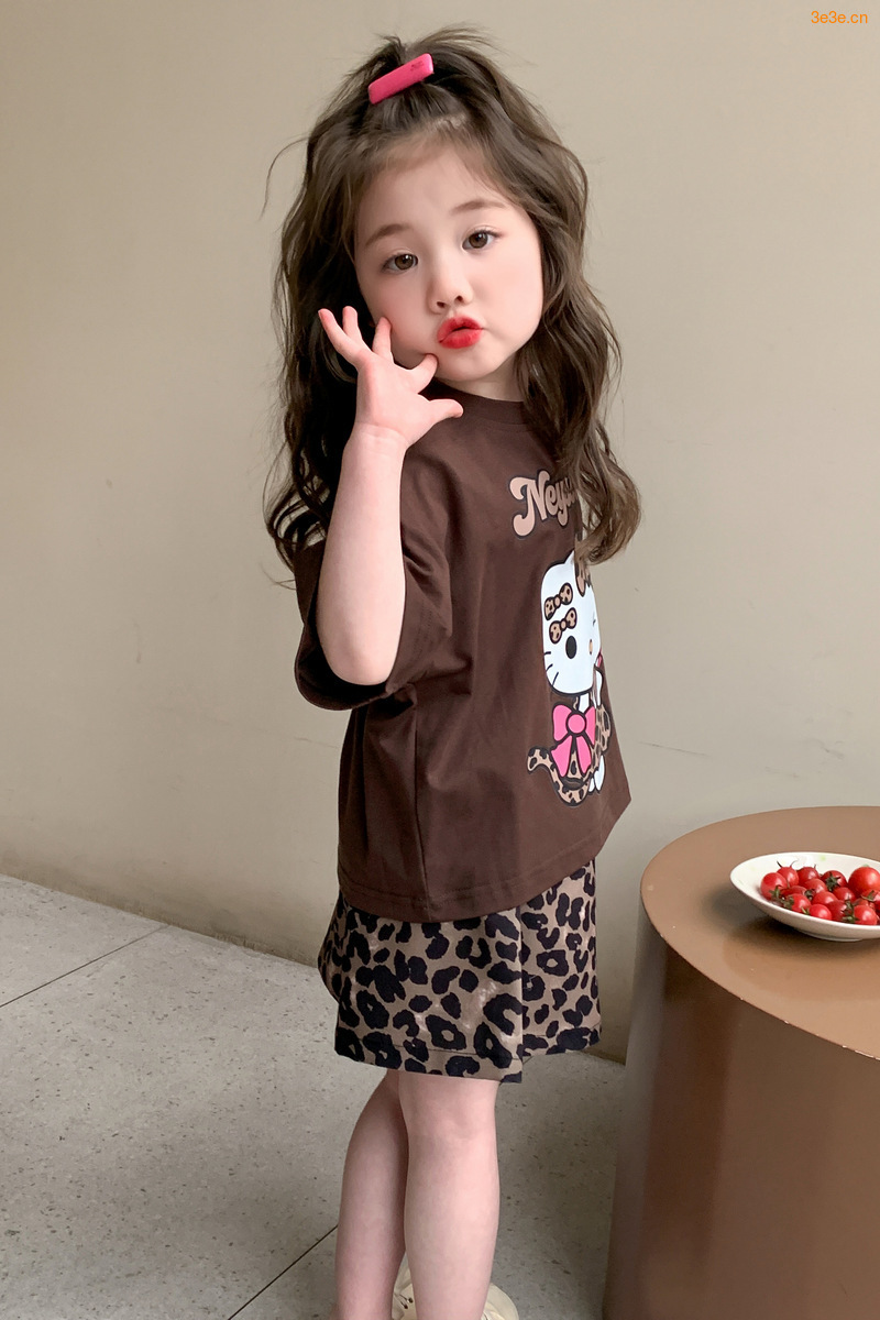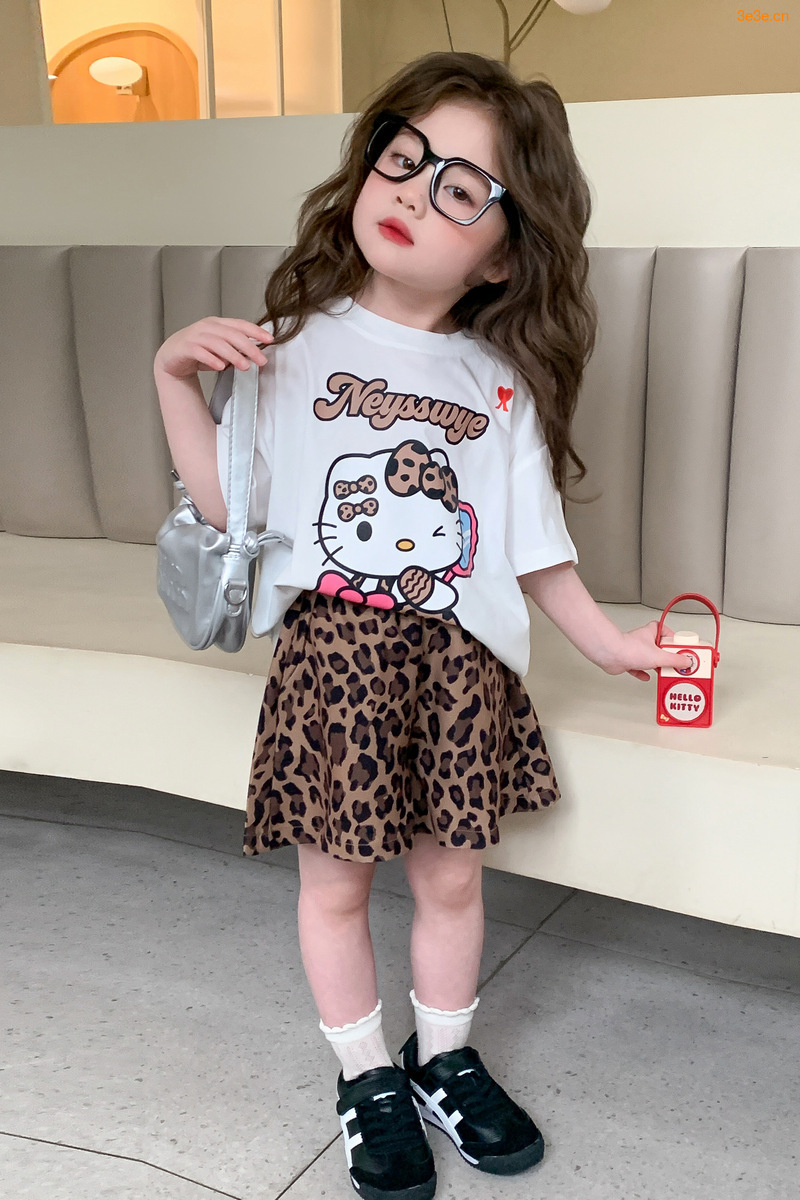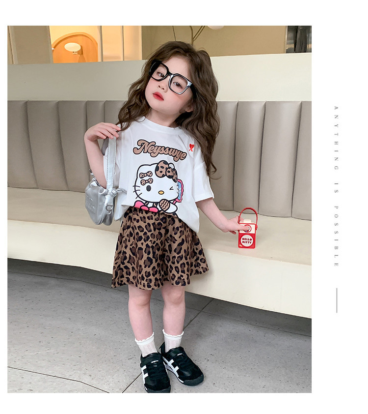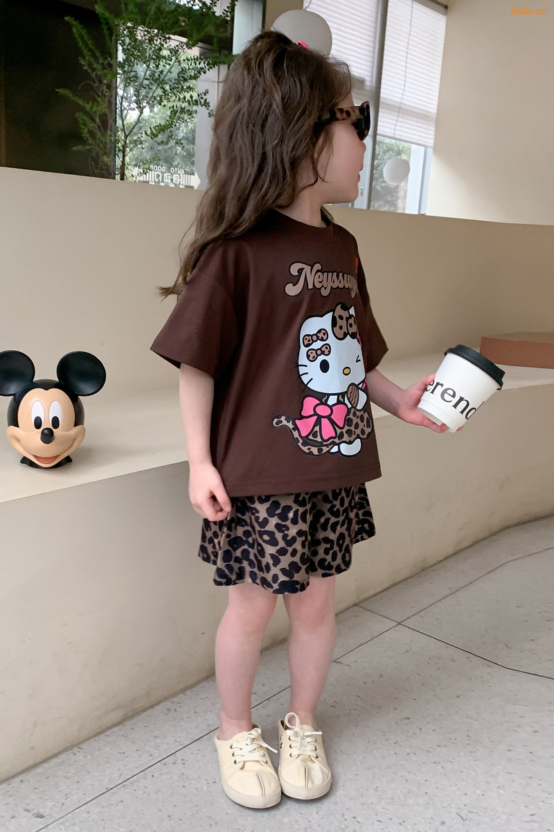 2025夏季新款女中小童洋气百搭豹纹短裤kt猫印花短袖套装