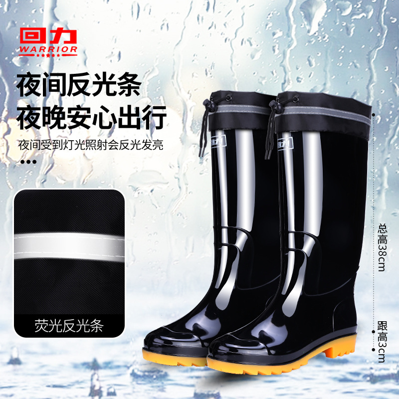 Huili 레인 부츠 반사 스트립 네킹 높은 비 장화 방수 미끄럼 방지 방수 방수 고무 신발 기모 따뜻한스토어 가기