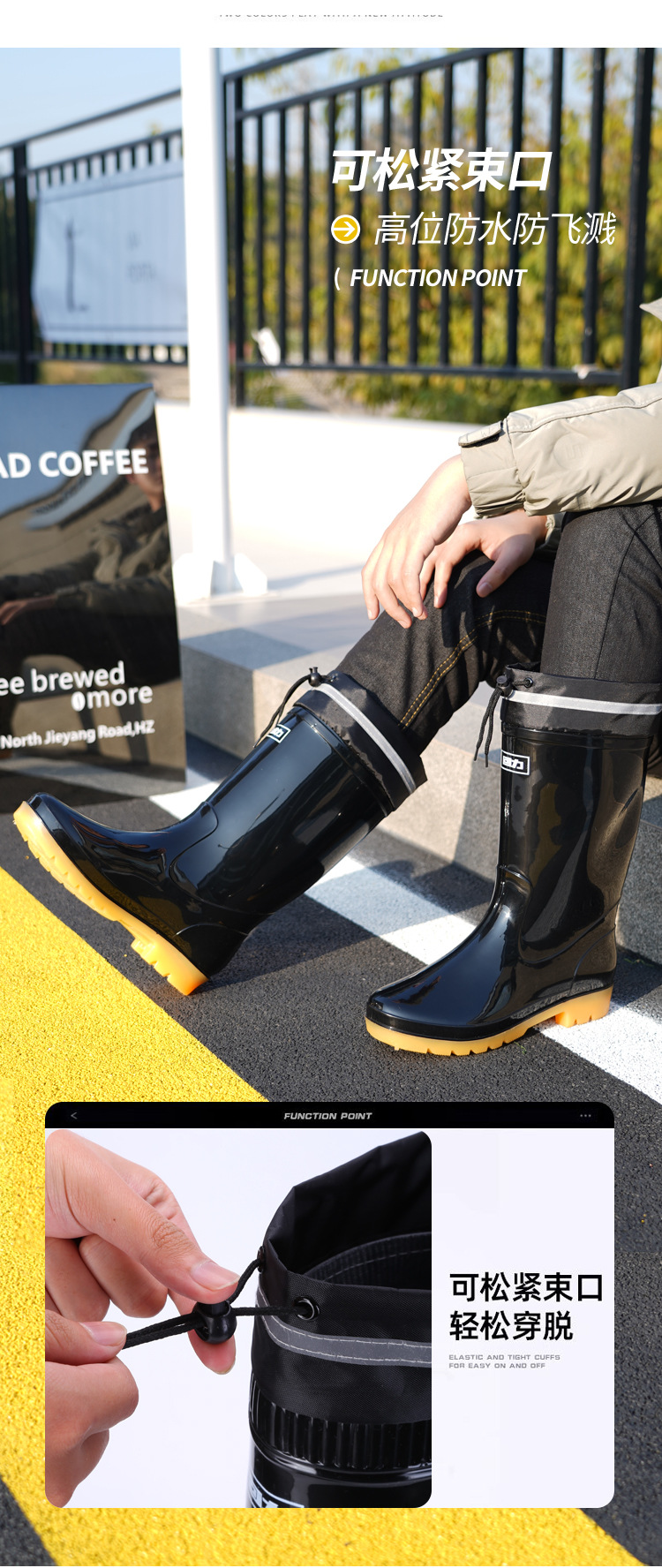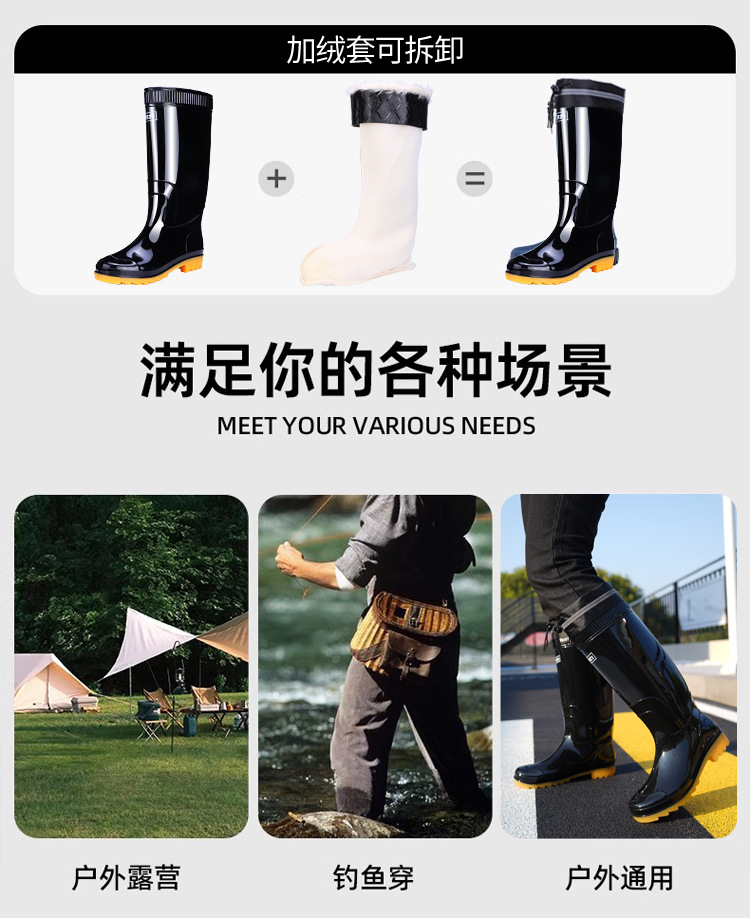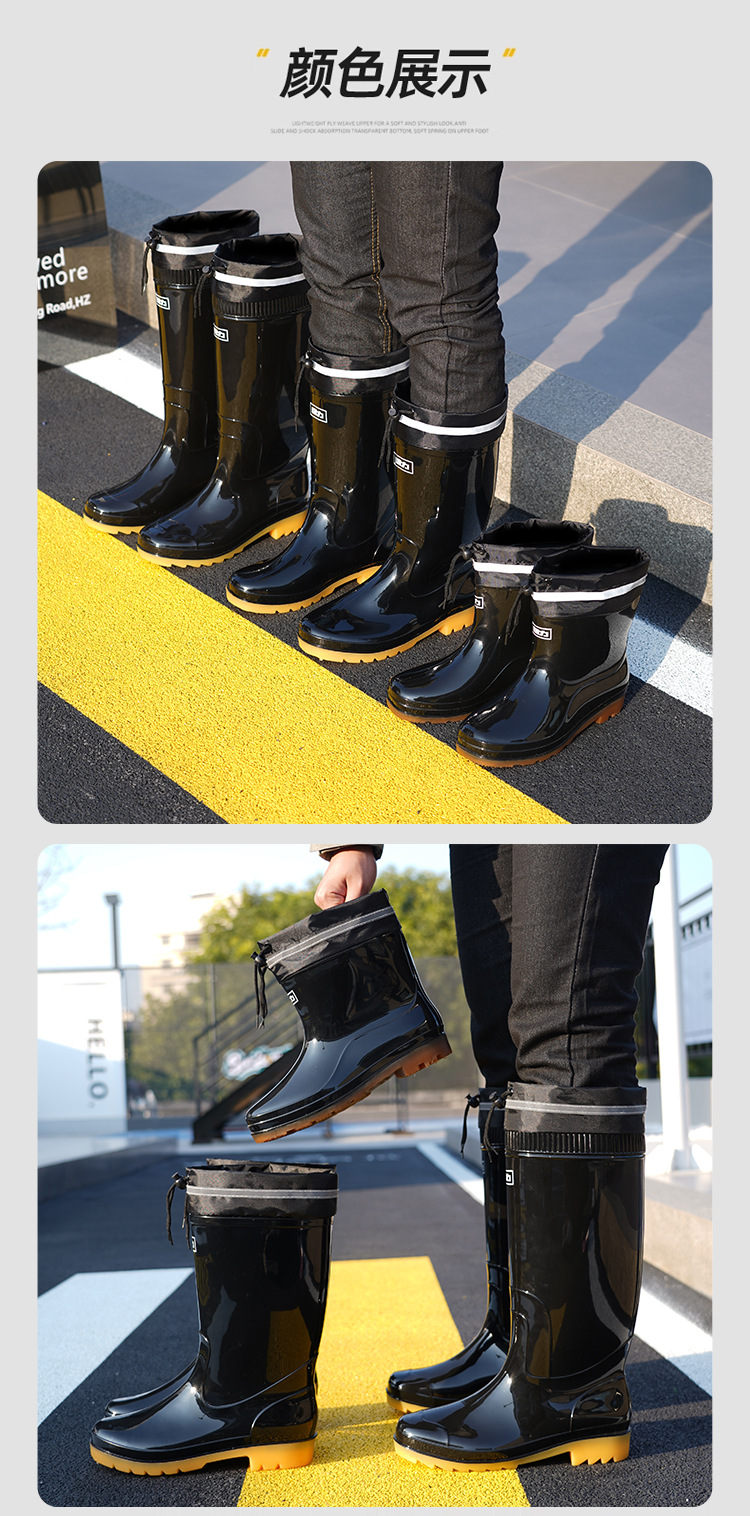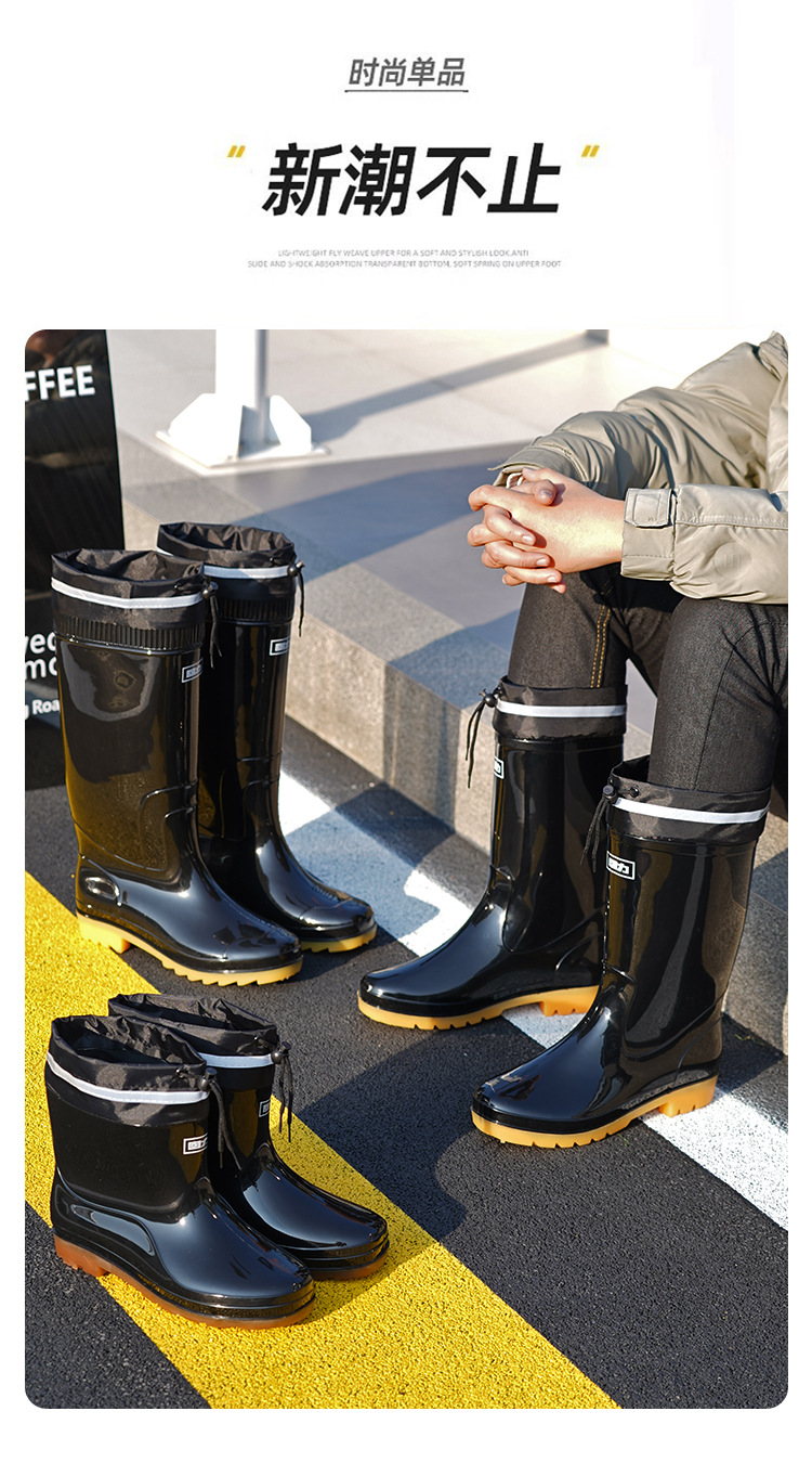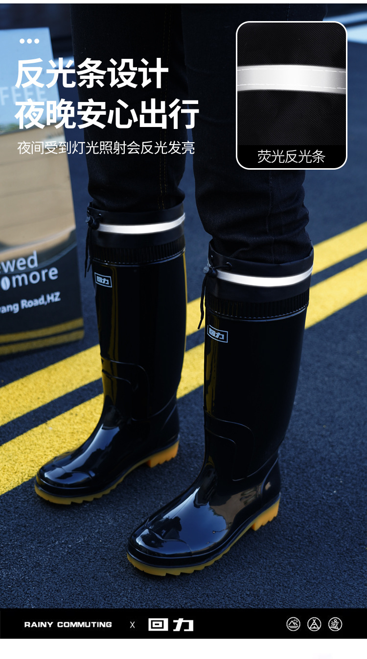 Huili 레인 부츠 반사 스트립 네킹 높은 비 장화 방수 미끄럼 방지 방수 방수 고무 신발 기모 따뜻한