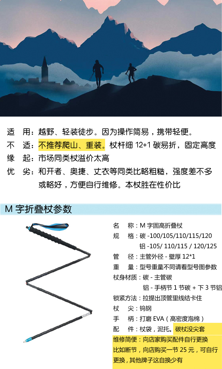 W 접이식 트레킹 스틱 산악 트레일 하이킹 야외 스틱 탄소 섬유 스틱 슈퍼 심플 기타