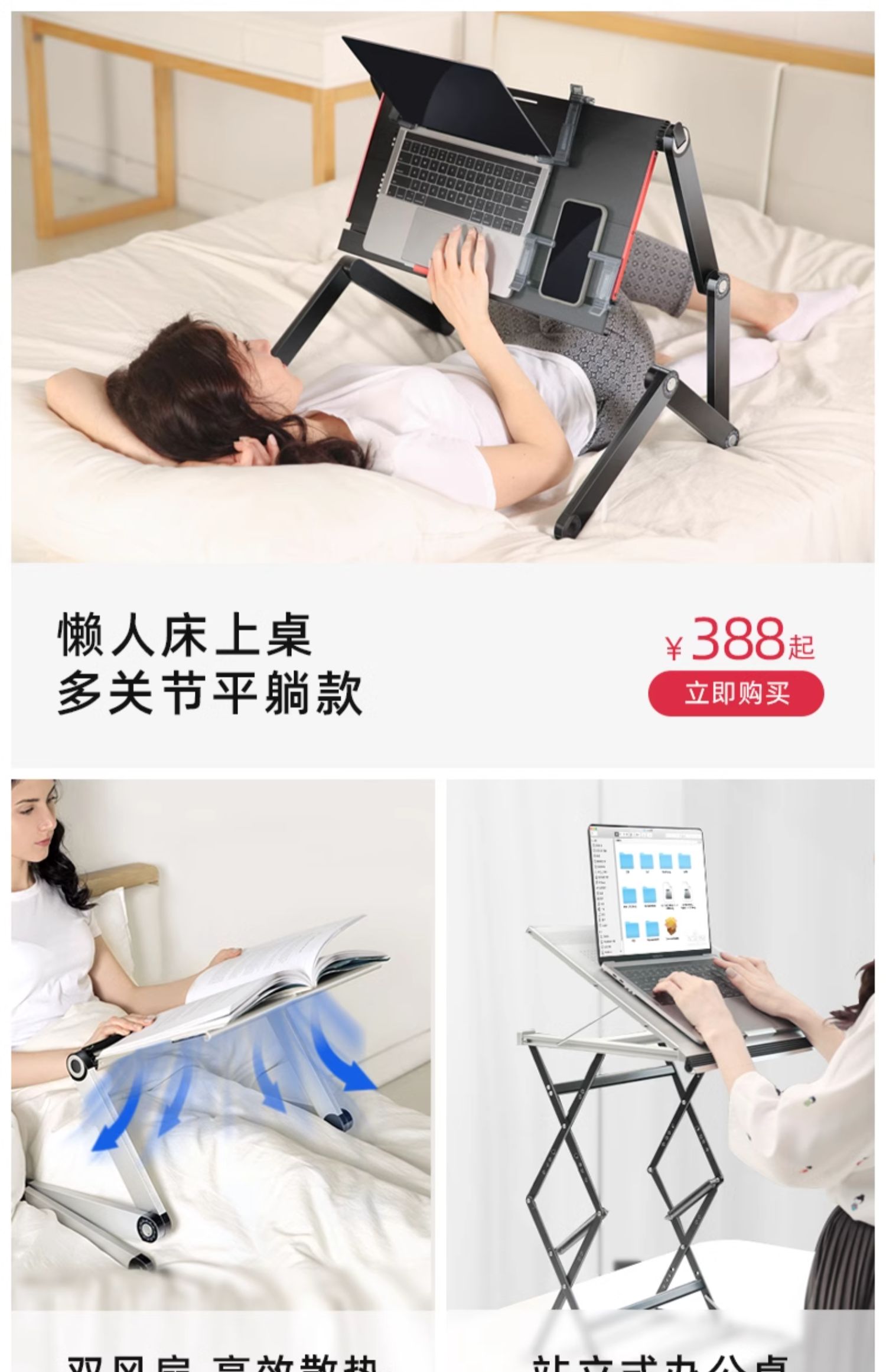 컴퓨터 노트북을 위한 평평한 침대용 작은 테이블, 접이식 테이블, 게으른 사람들을 위한 테이블, 리프팅 침대 테이블, 금속스토어 가기