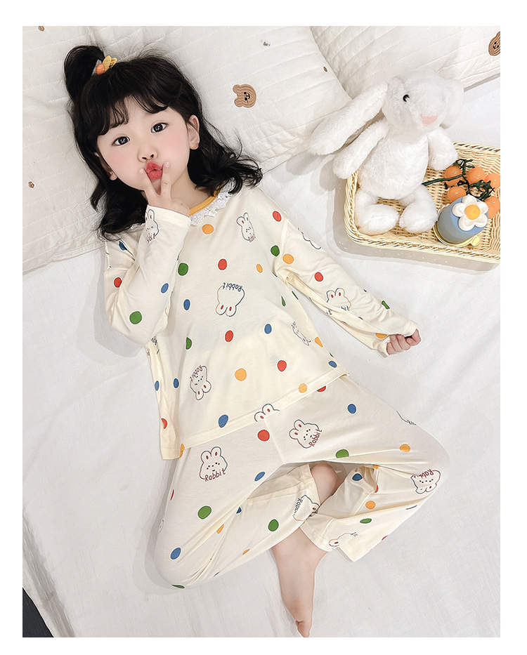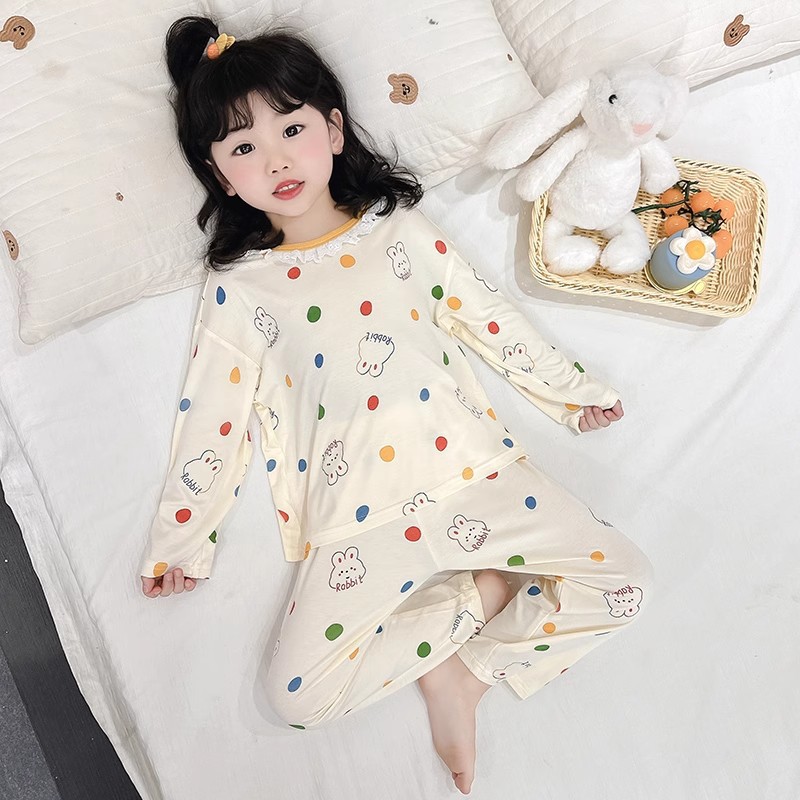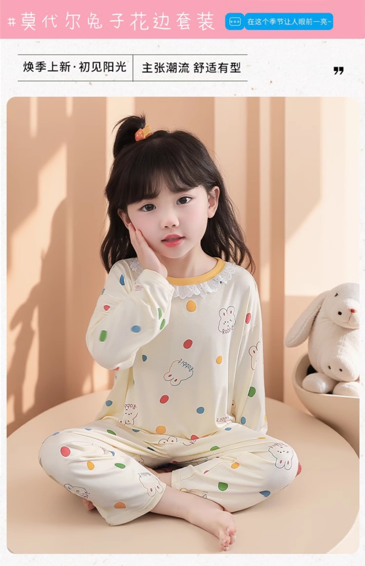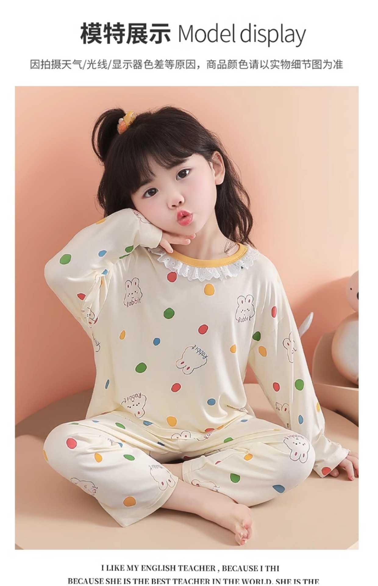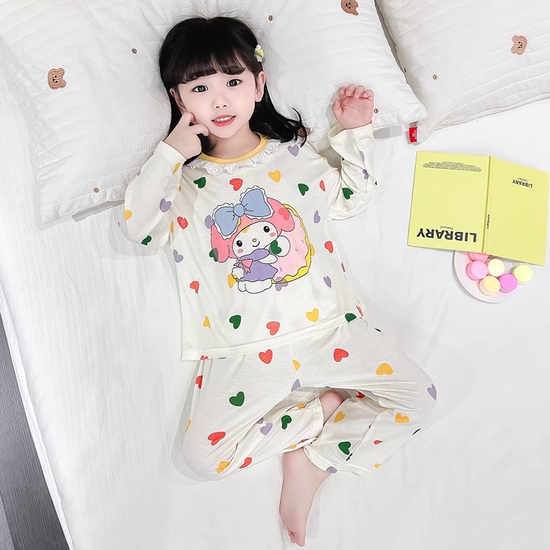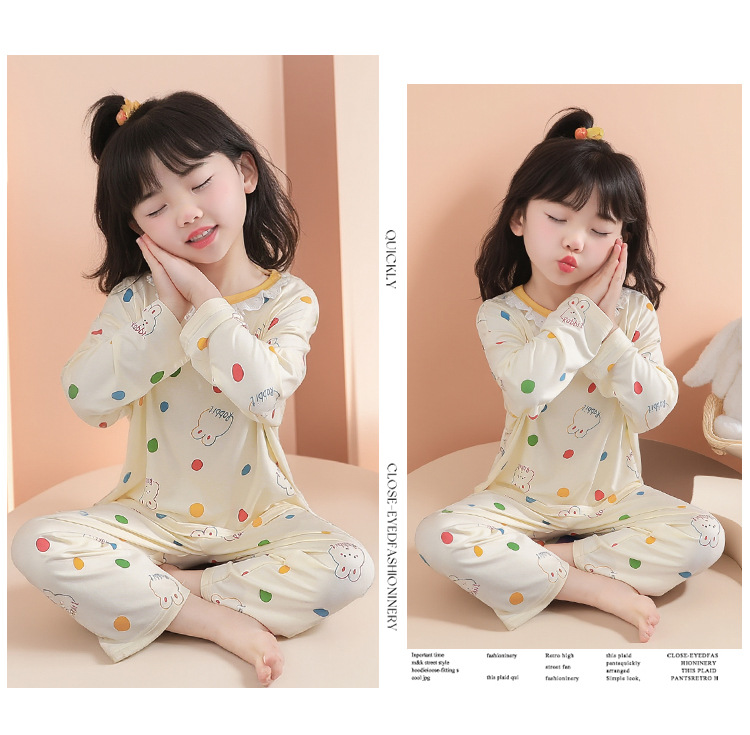 여자 잠옷 세트 봄과 가을 얇은 모달 여자 긴팔 에어컨 가정 의류 어린이 새로운 만화 아기스토어 가기