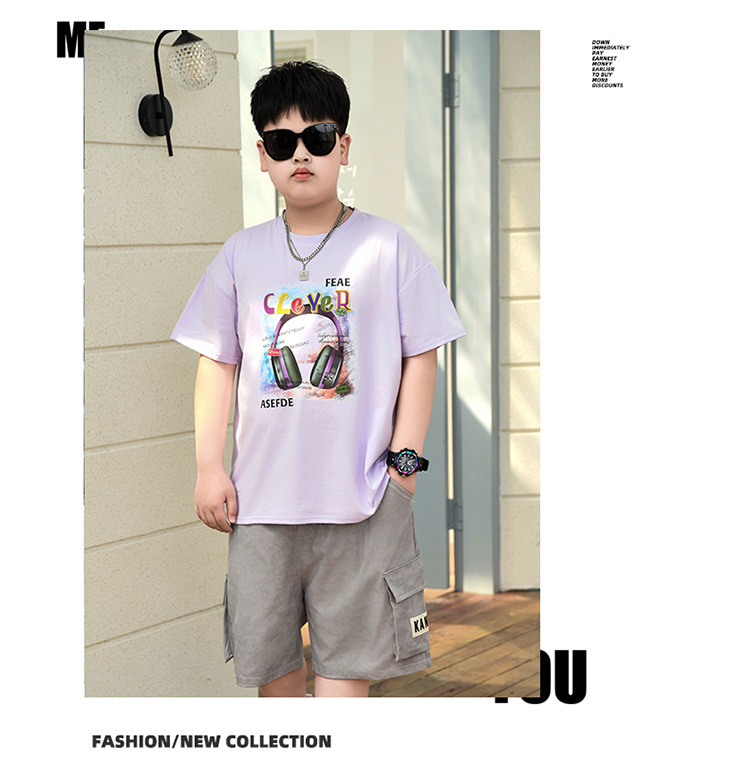 뚱뚱한 어린이 티셔츠 소년 플러스 사이즈 반팔 플러스 사이즈 아동복 아동복 반소매 중견 어린이 여름 착용 면 T 얇은