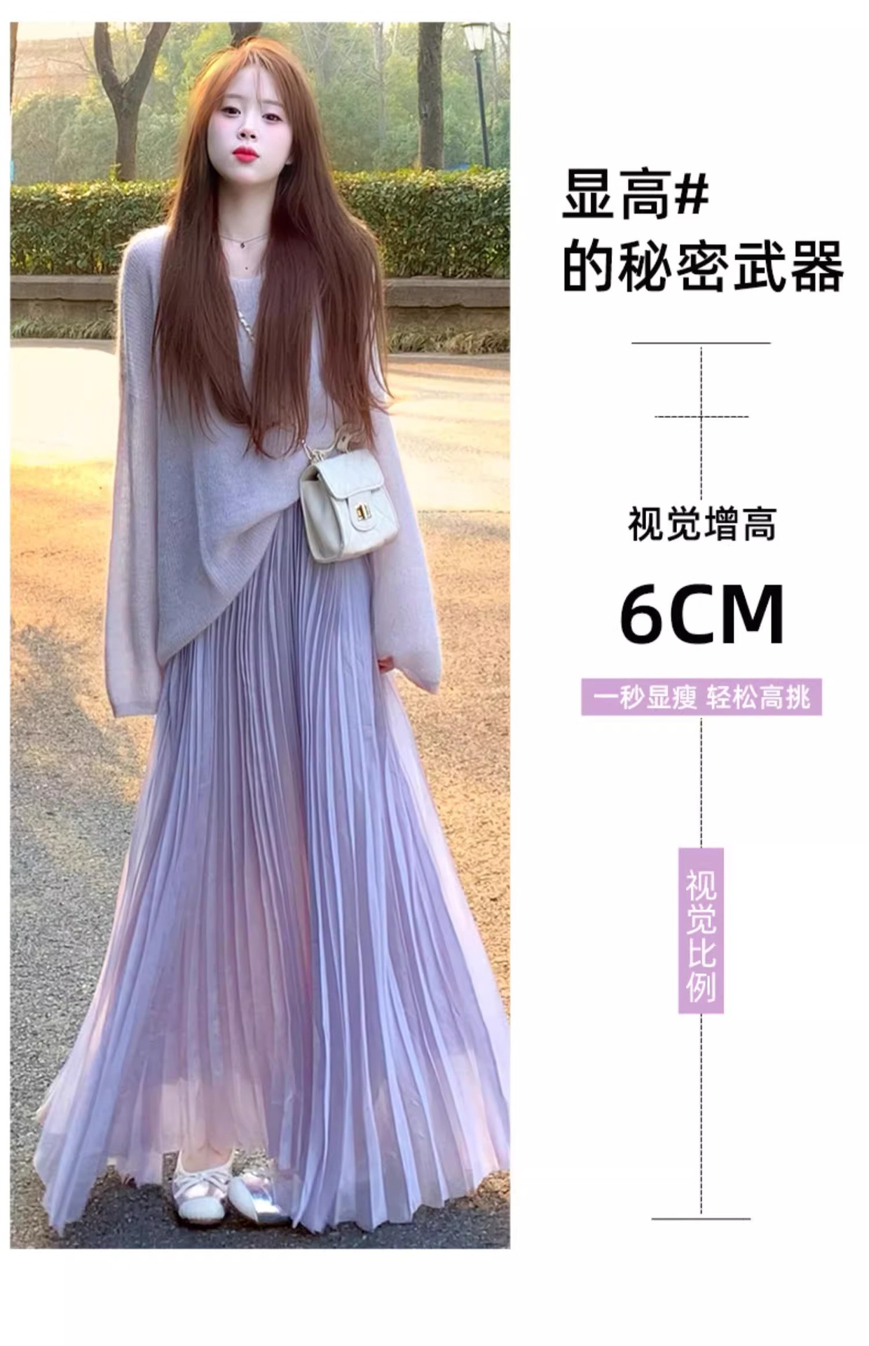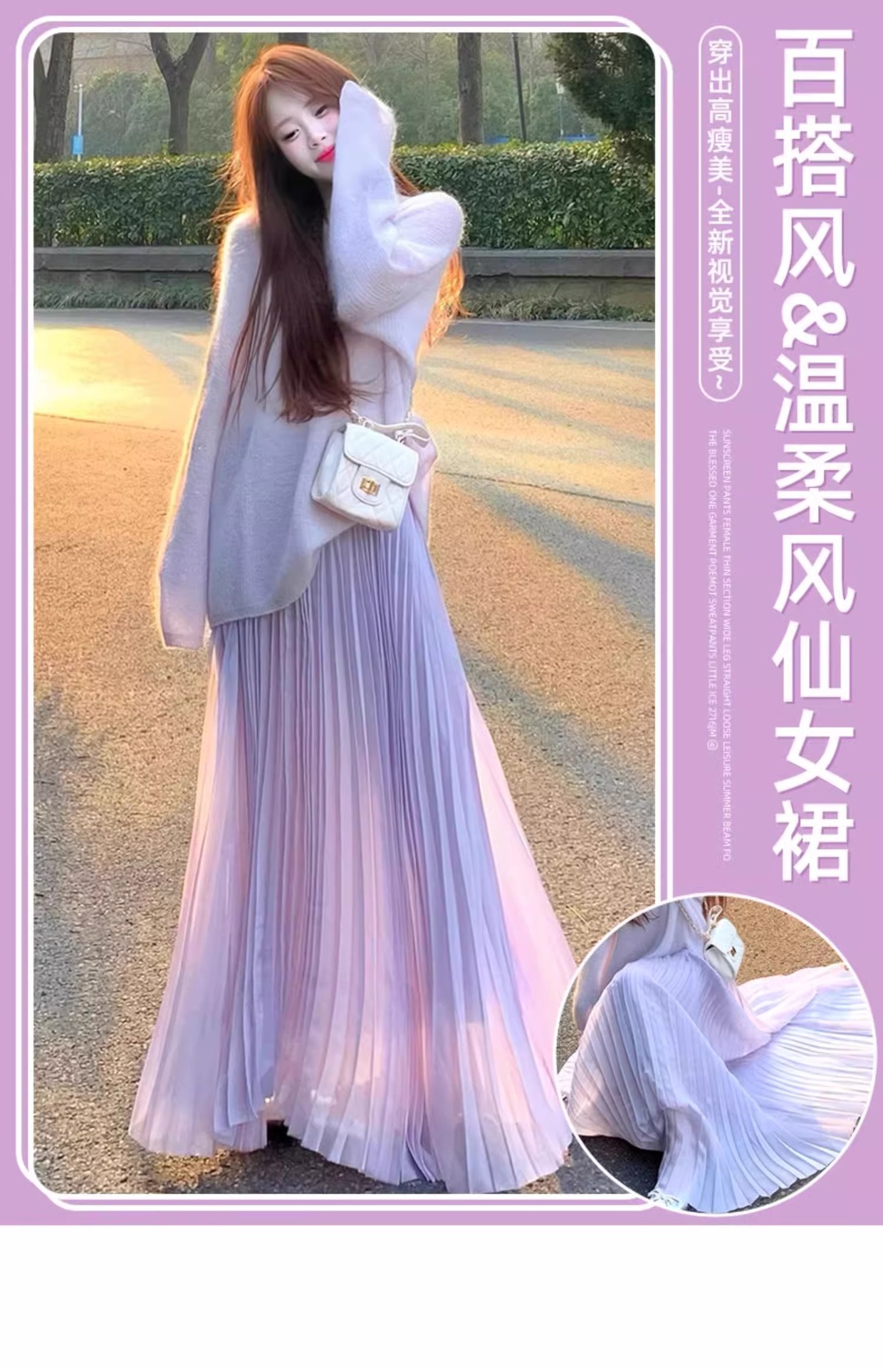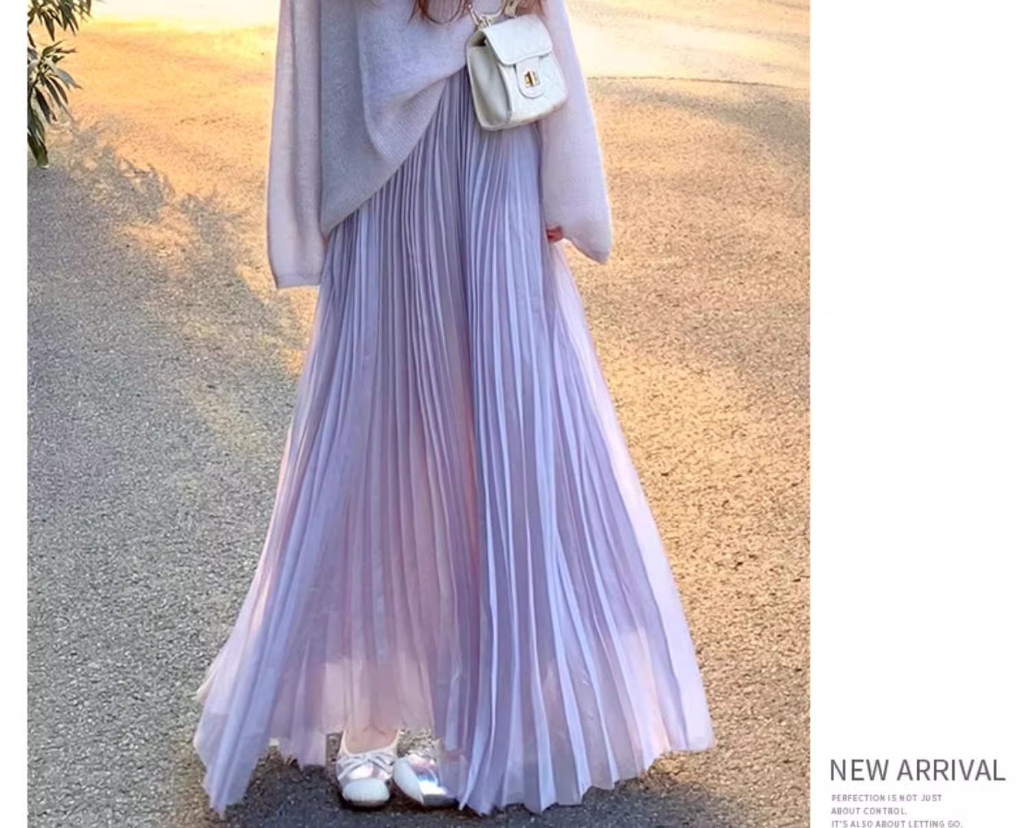 한국 스타일 보라색 주름 치마 여자 여름 2025 새로운 높은 허리 A 라인 엉덩이 커버 우산 스커트 작은 접힌 스커트