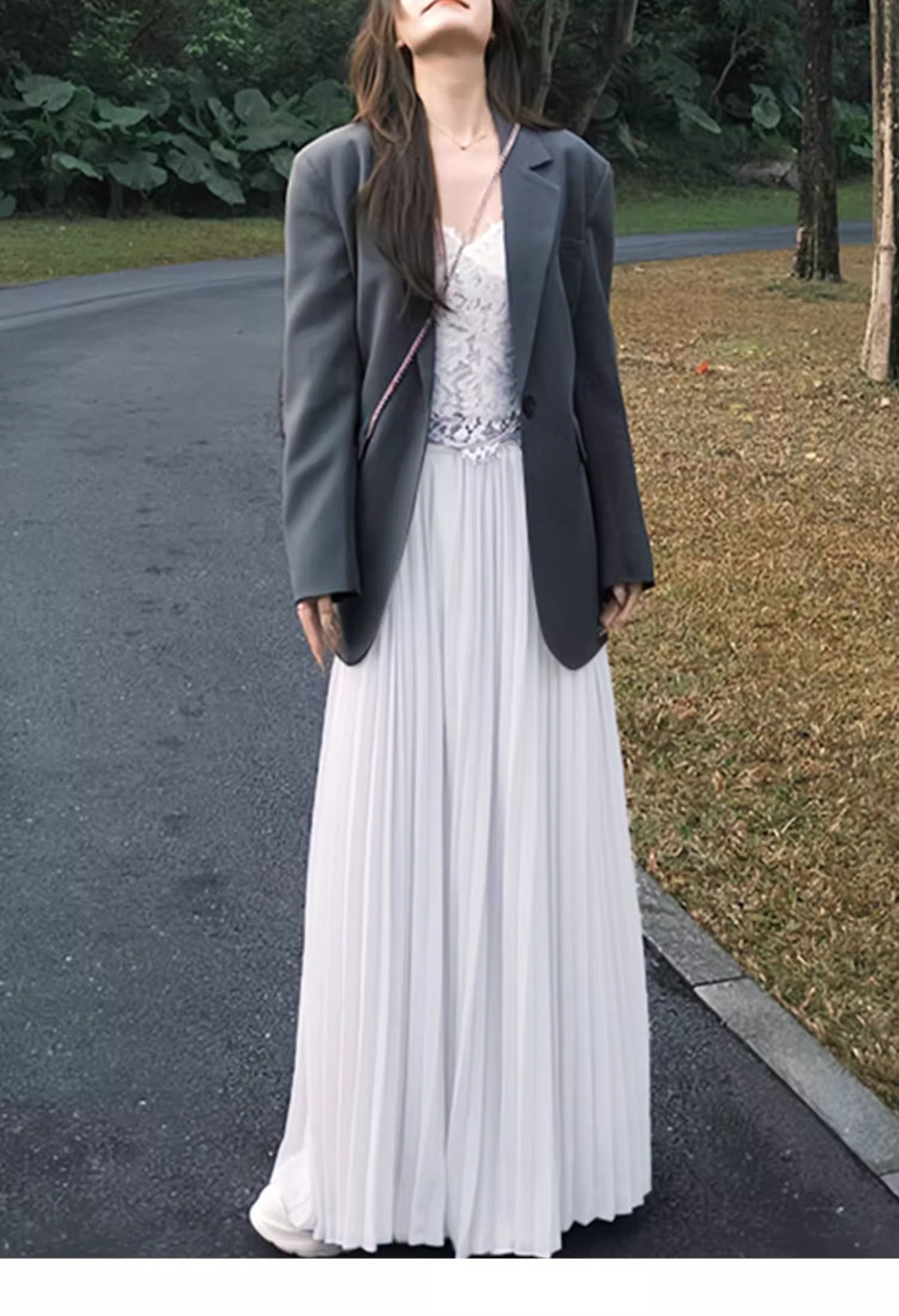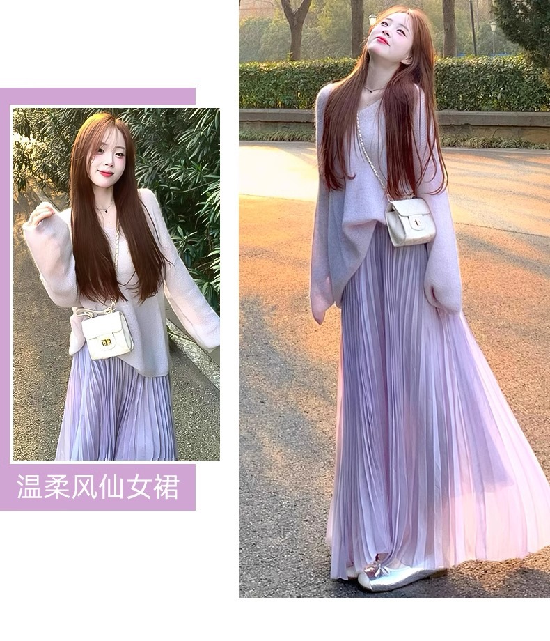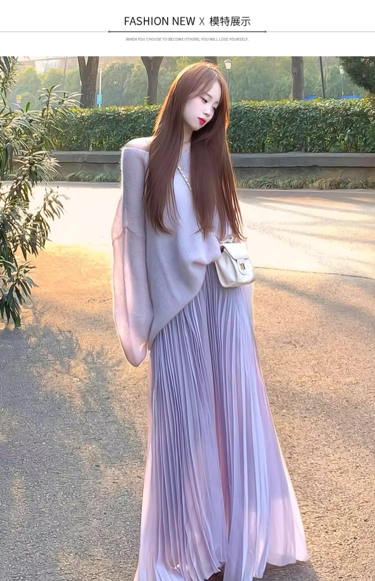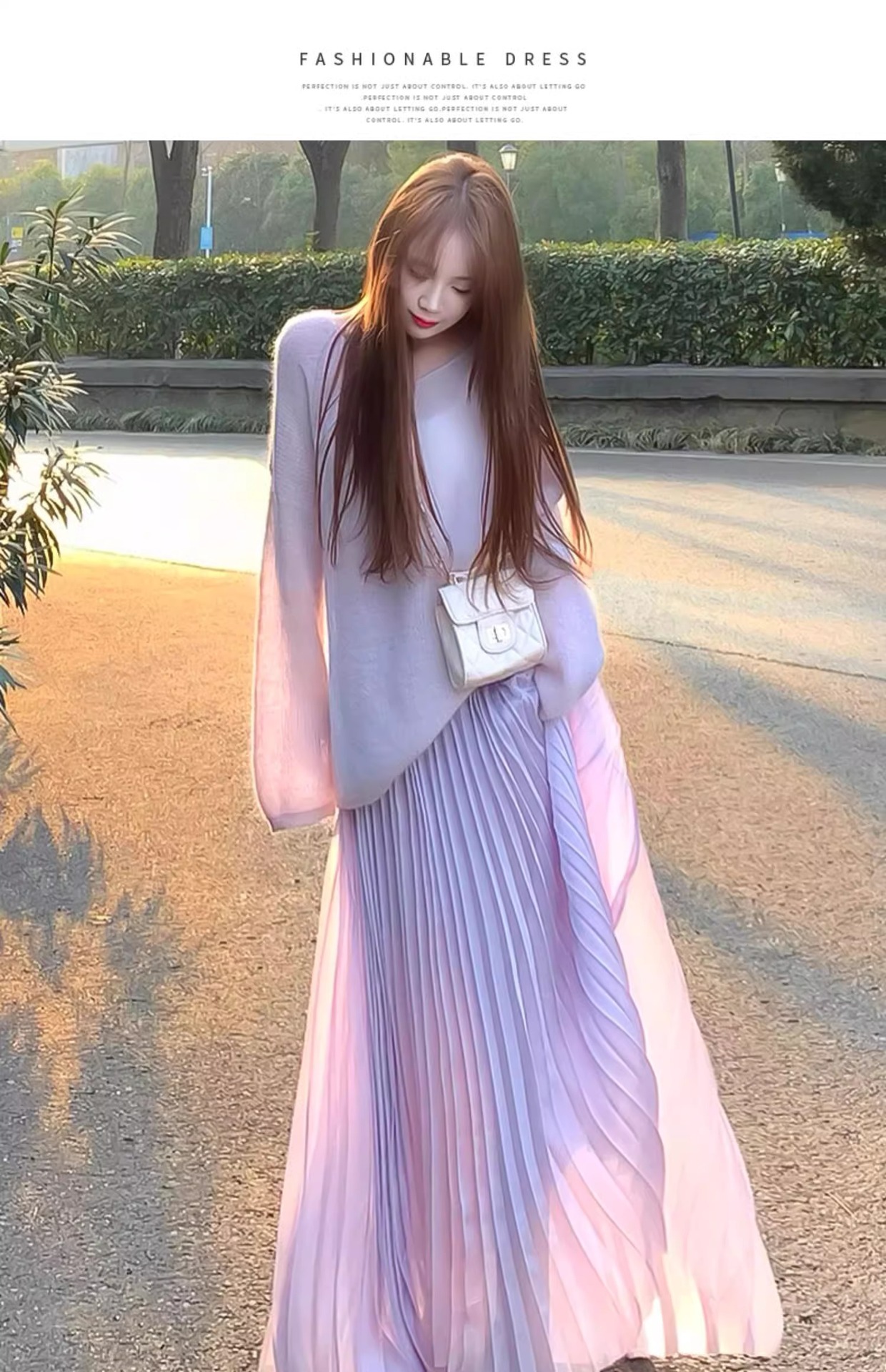 한국 스타일 보라색 주름 치마 여자 여름 2025 새로운 높은 허리 A 라인 엉덩이 커버 우산 스커트 작은 접힌 스커트