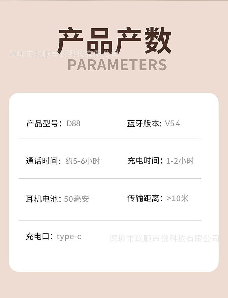 2025년 신형 AI 번역 이어폰 D88 무선 귀걸이형 장시간 사용 가능 비삽입형 회전식 블루투스 이어폰
