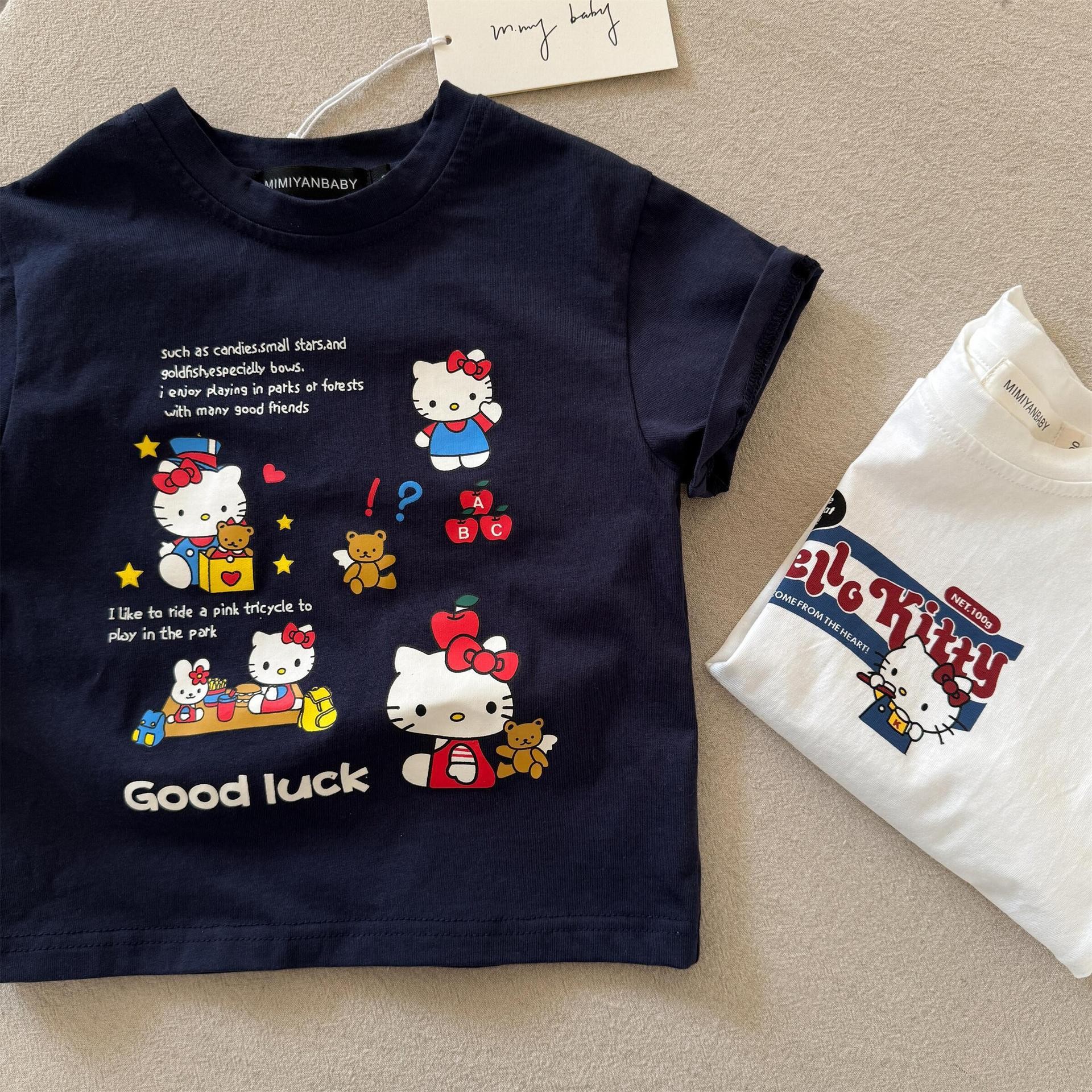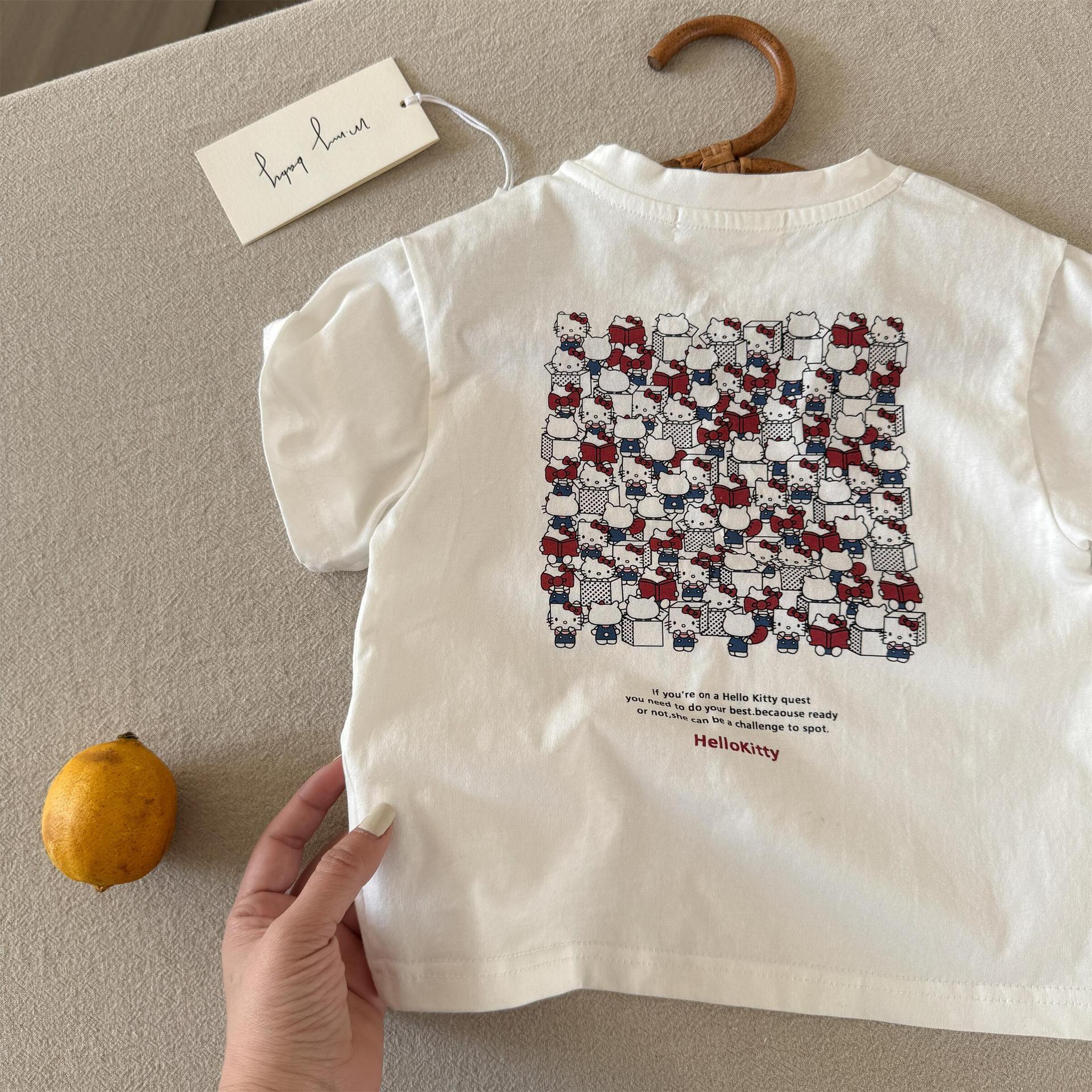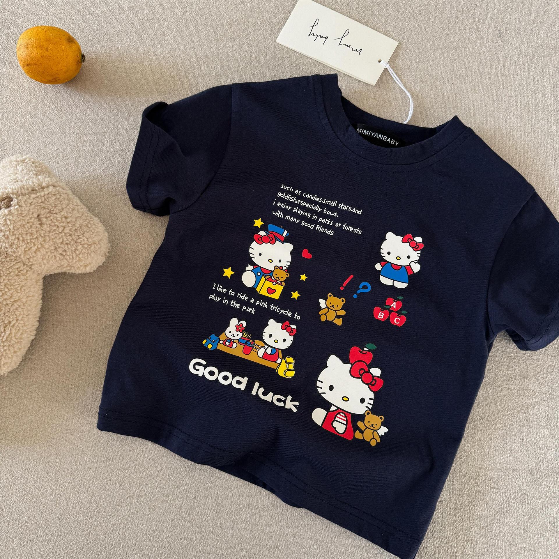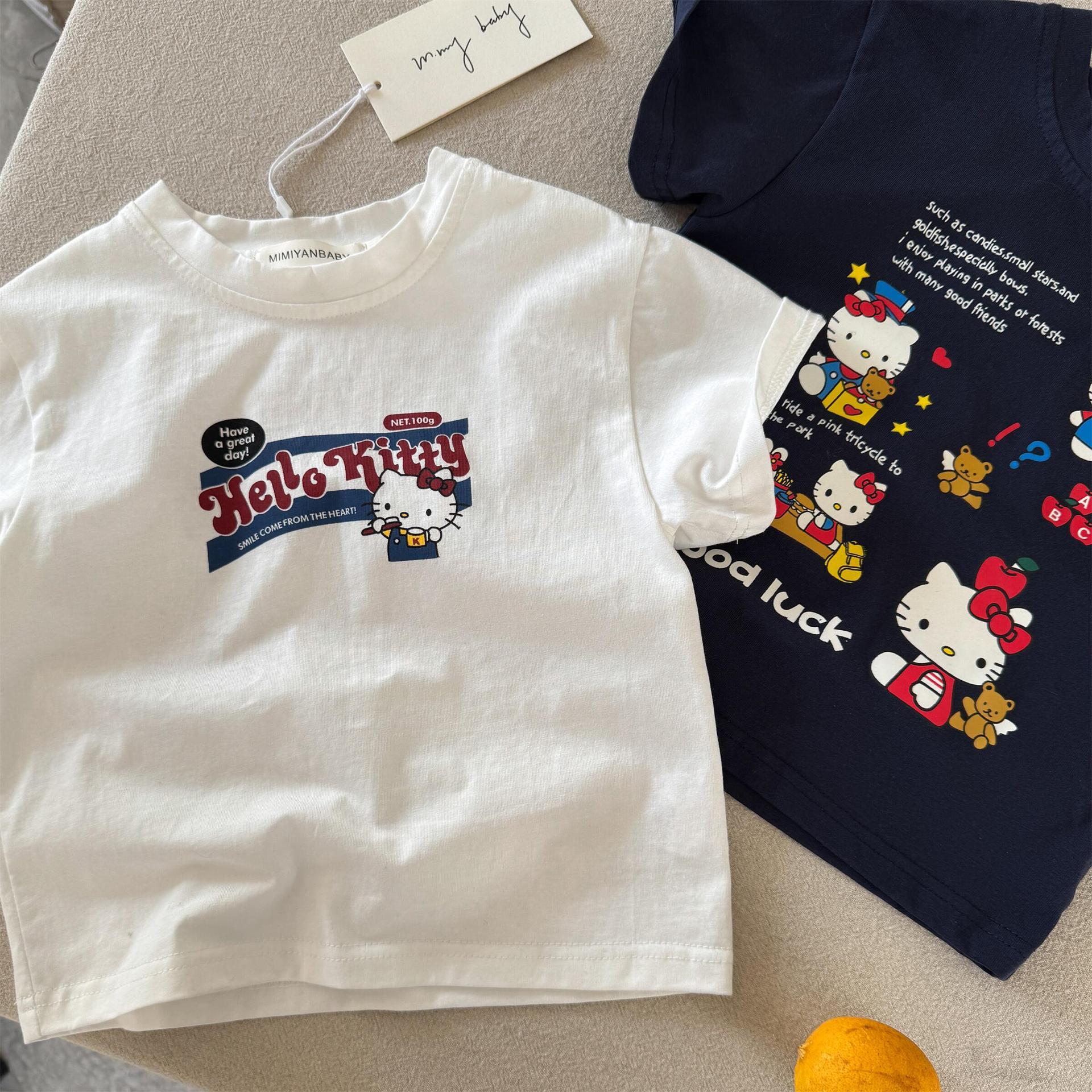 여자 반팔 티셔츠 면 여름 2025 새로운 한국 스타일 만화 KT 고양이 귀여운 탑 아기 느슨한 둥근 목스토어 가기