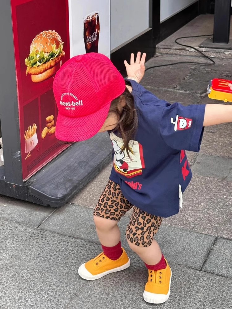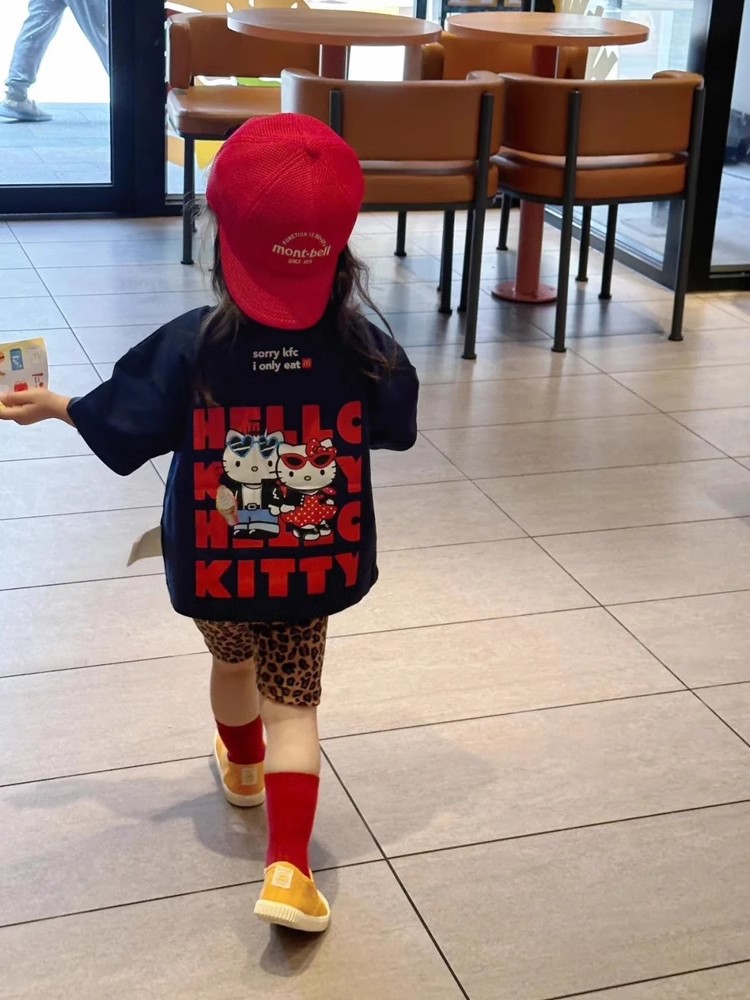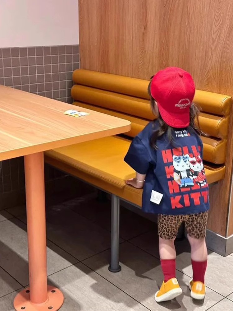 여름 어린이 새 면 반소매 느슨한 한국 스타일 만화 인쇄 소녀 티셔츠 반소매 어린이 얇은 탑스토어 가기