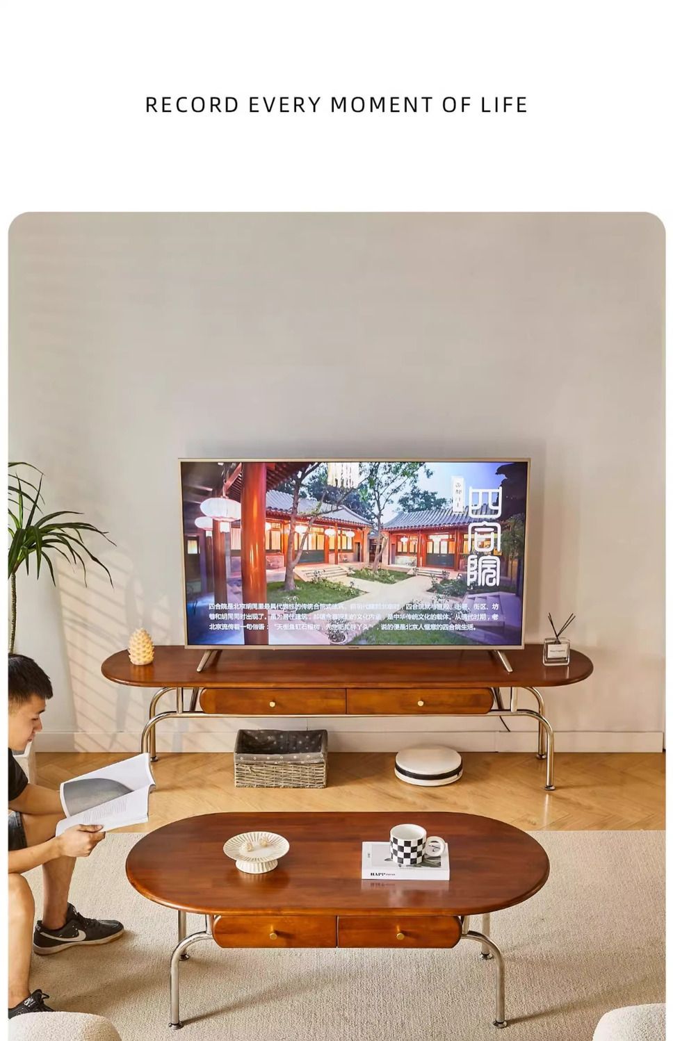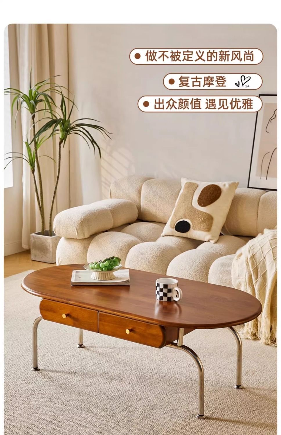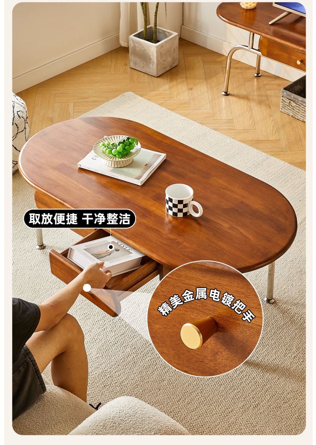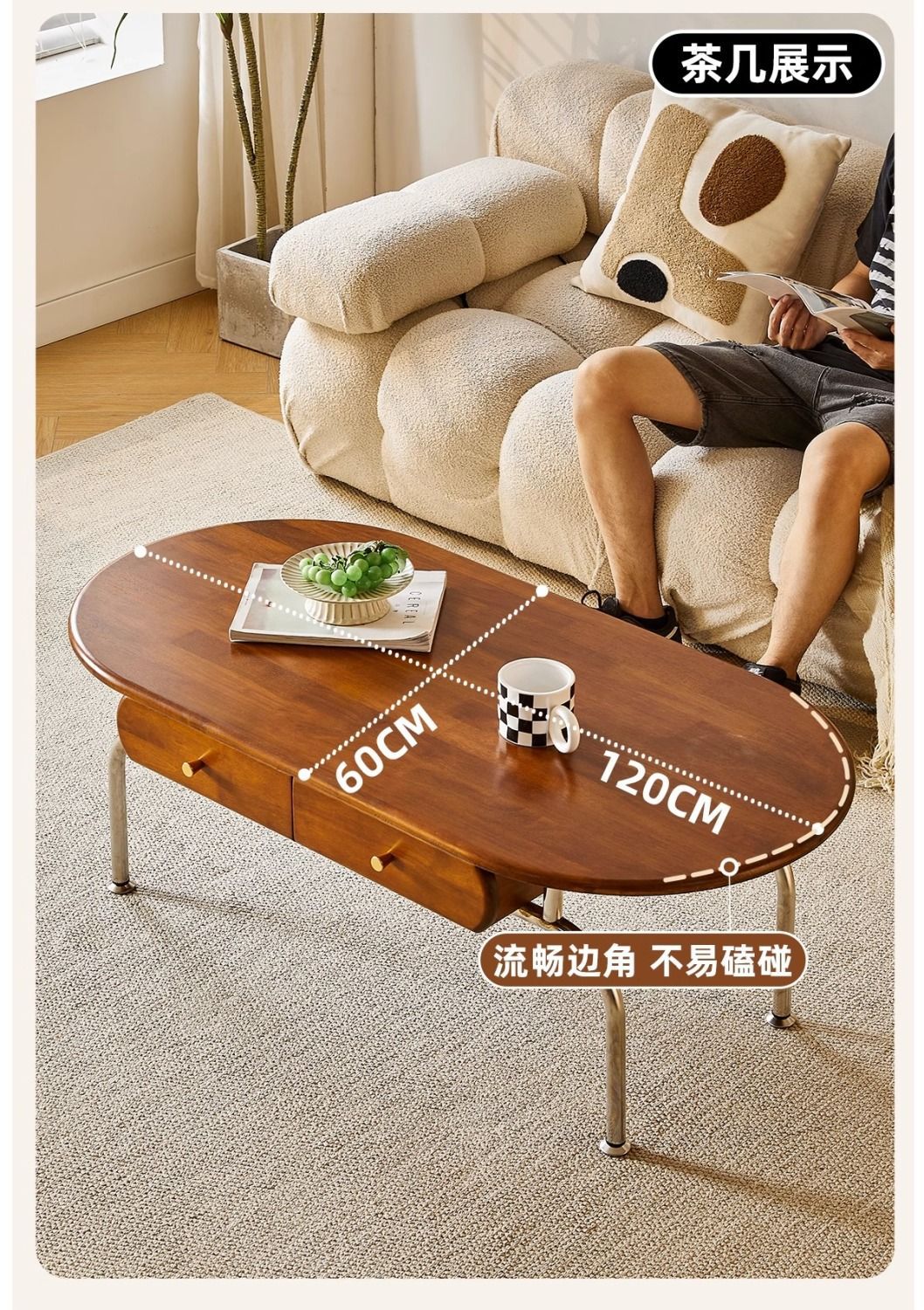 커피 테이블 작은 아파트 거실 홈 단단한 나무 북유럽 복고풍 다기능 티 테이블 중세 타원형 테이블스토어 가기