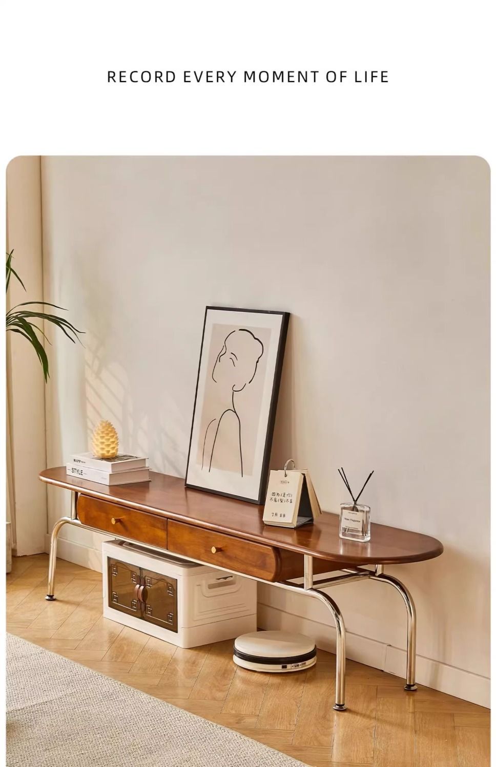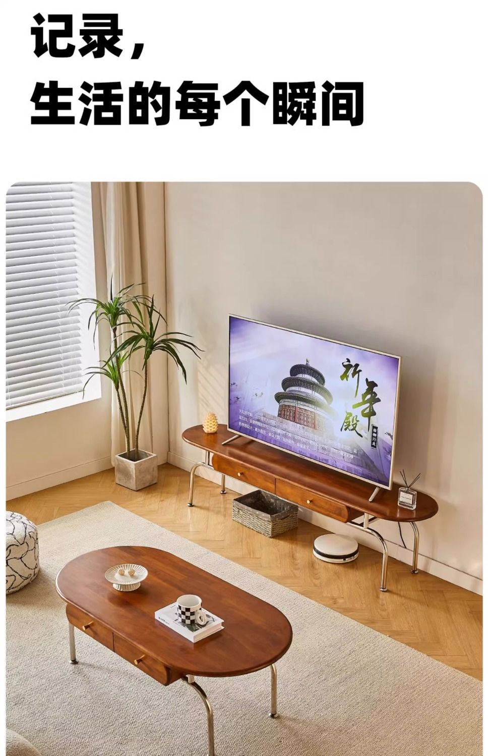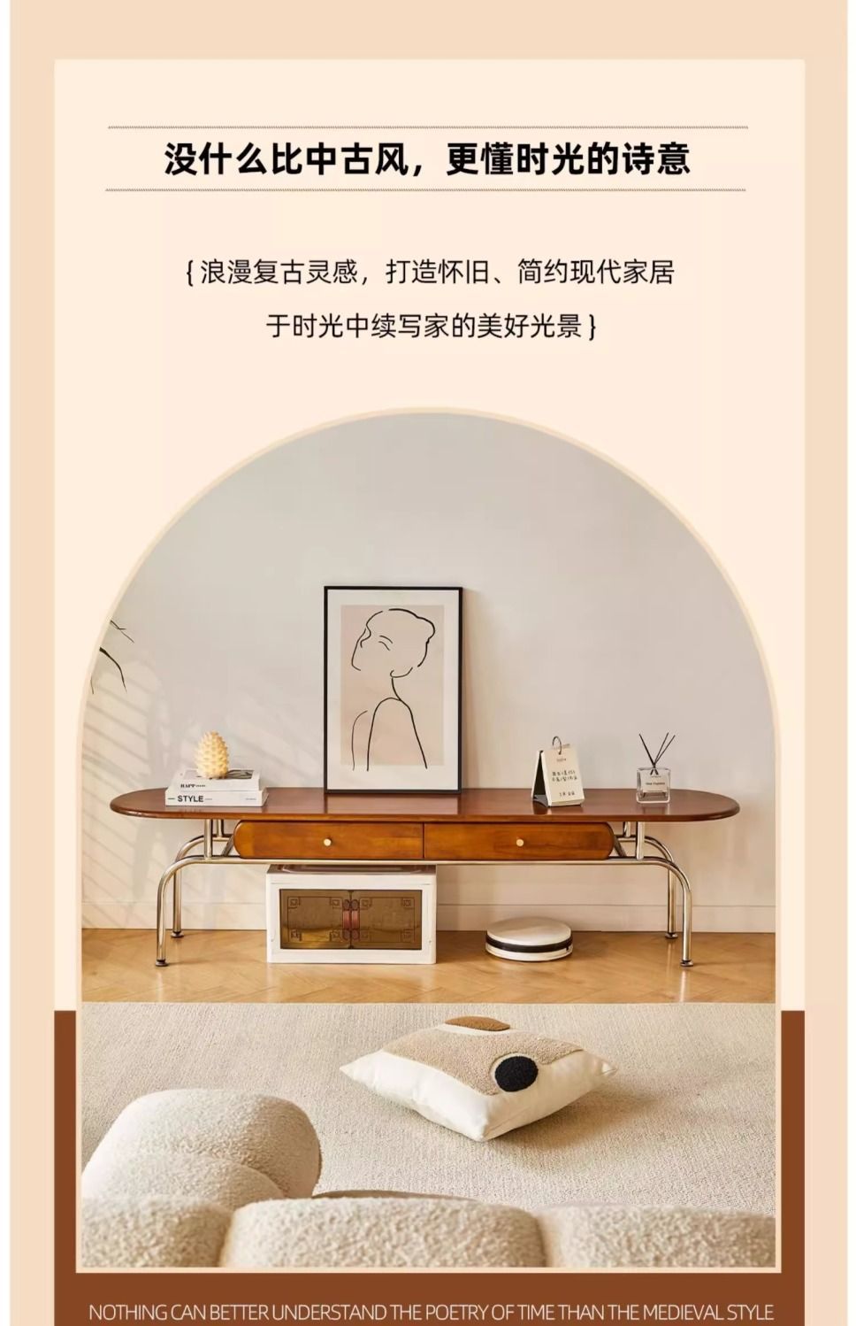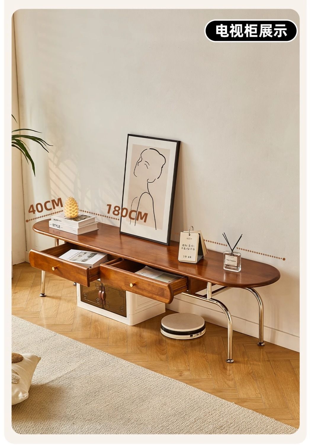 커피 테이블 작은 아파트 거실 홈 단단한 나무 북유럽 복고풍 다기능 티 테이블 중세 타원형 테이블스토어 가기