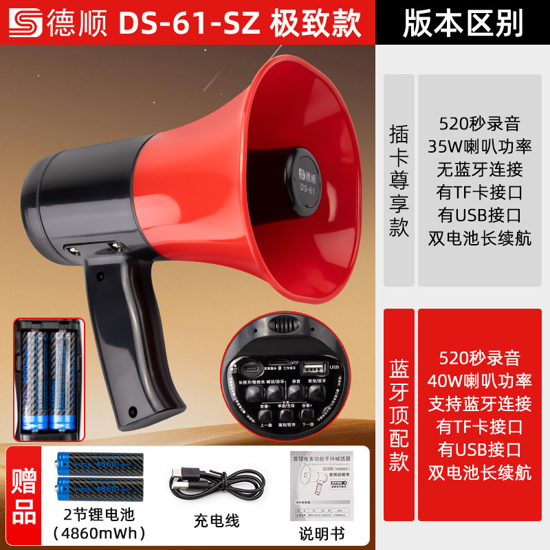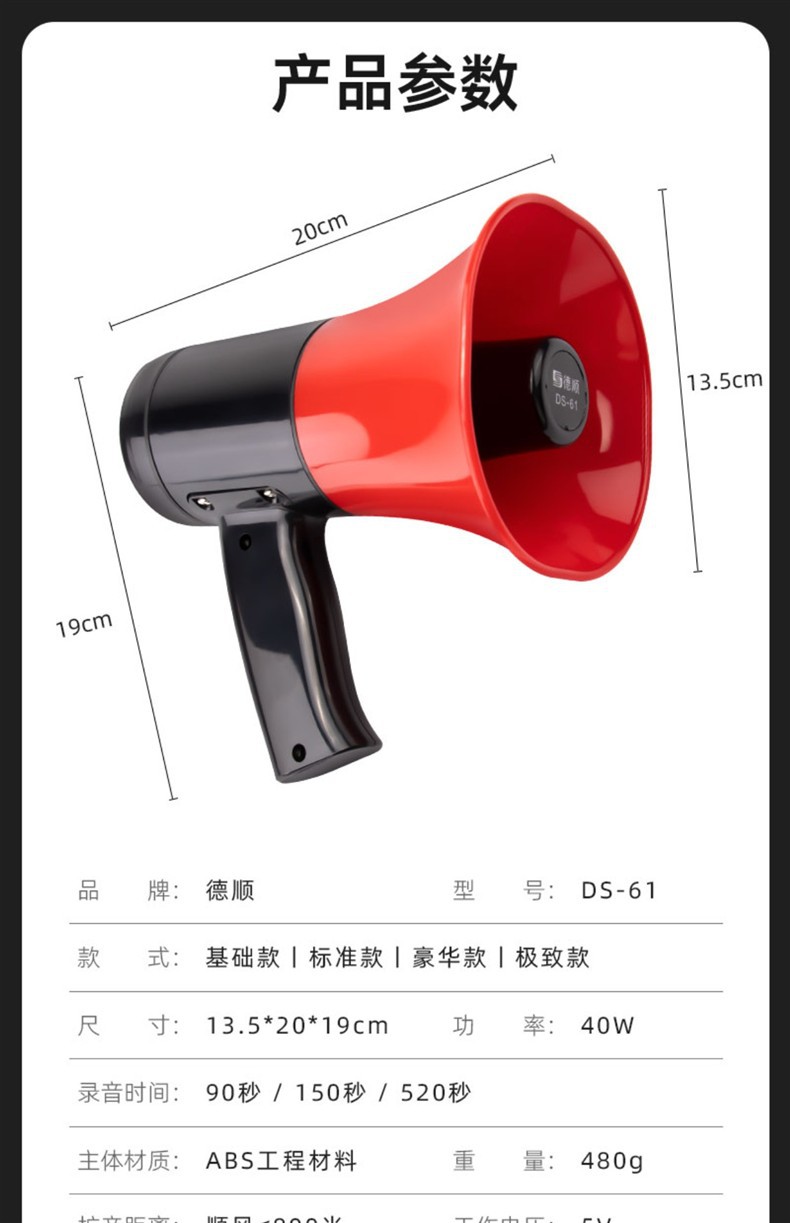 Deshun 61SZ 메가폰 휴대용 확성기 거리 노점 판매 공항 체크인 터미널 녹음 스피커스토어 가기