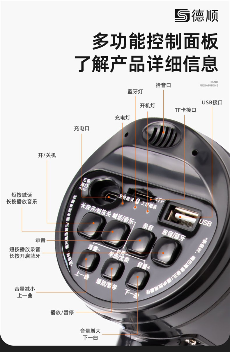 Deshun 61SZ 메가폰 휴대용 확성기 거리 노점 판매 공항 체크인 터미널 녹음 스피커