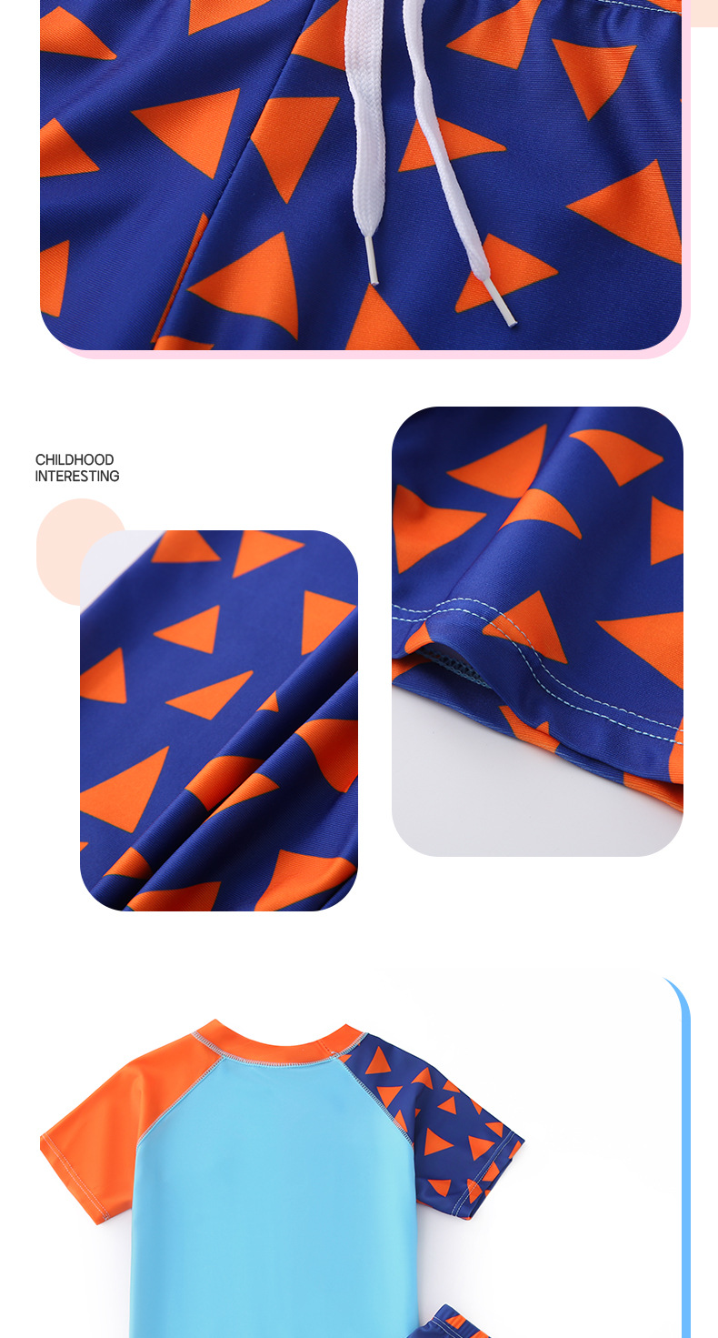 아동용 대비색 프린트 수영복, 남아용 자외선 차단 스플릿 수영복, 유아용 수영복, 야외 속건성 온천 수영복 세트스토어 가기