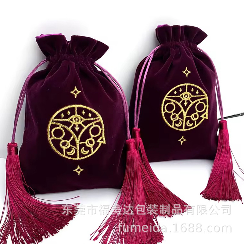새로운 플록 천 가방 카운터 드로스트링 포켓 벨벳 더블 드로스트링 가방 사슴 가죽 드로스트링 포켓 쥬얼리 더스트 백