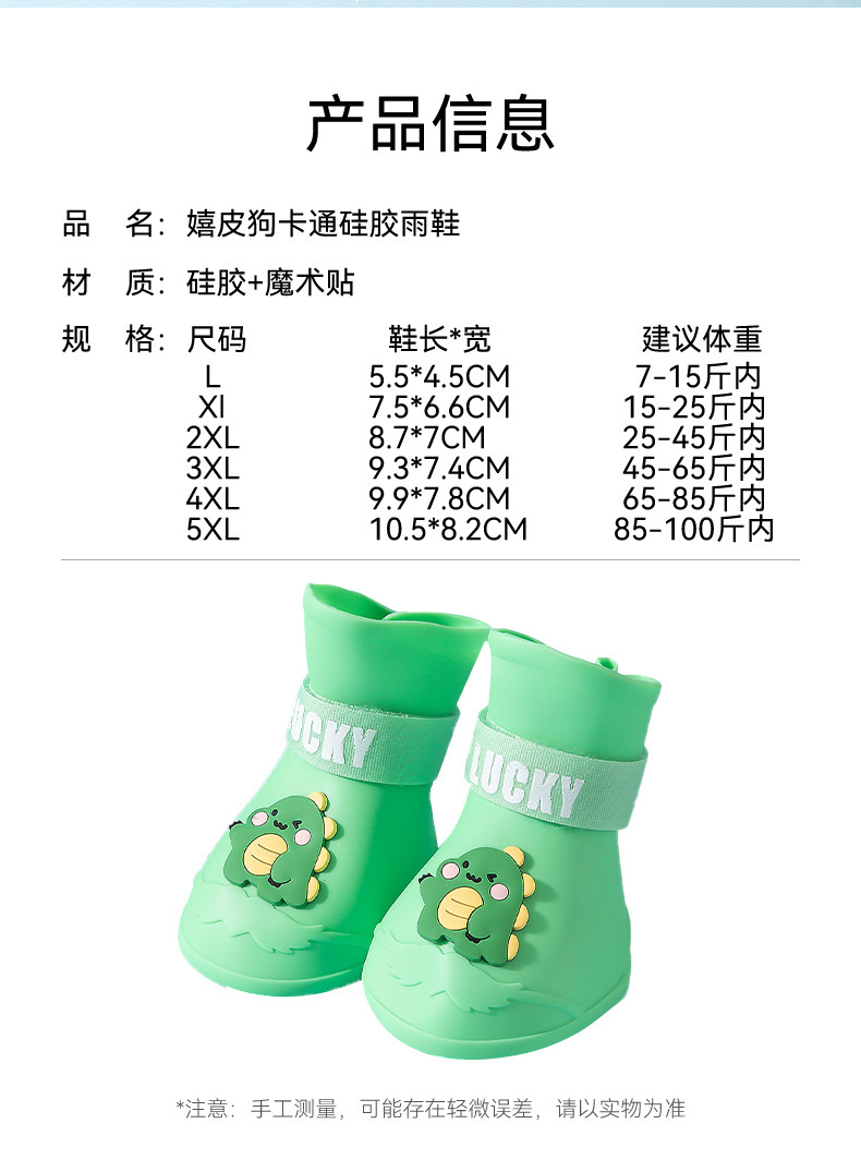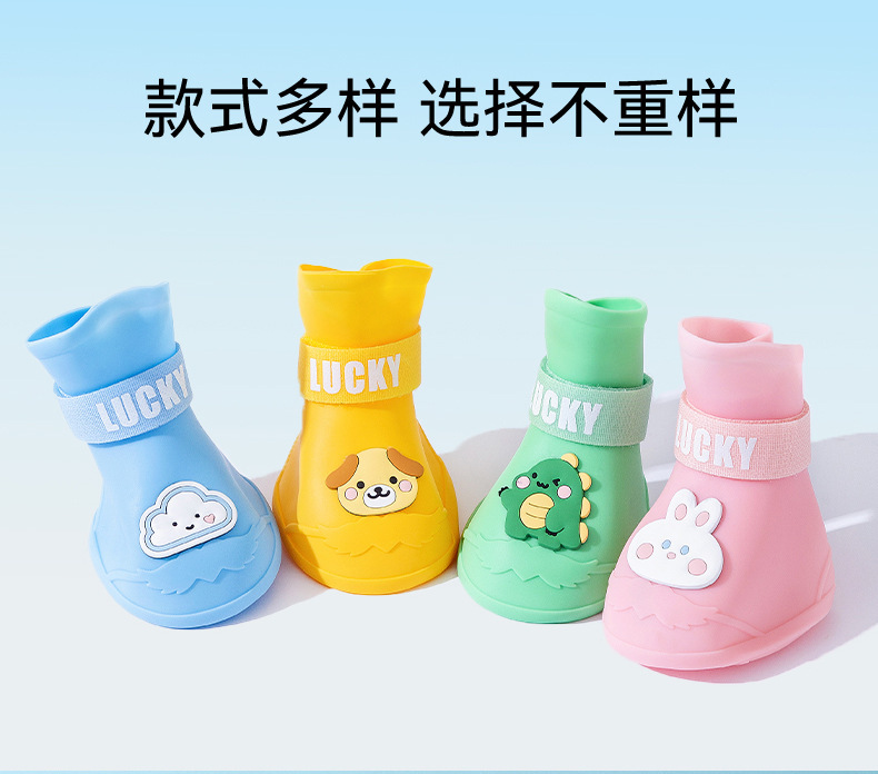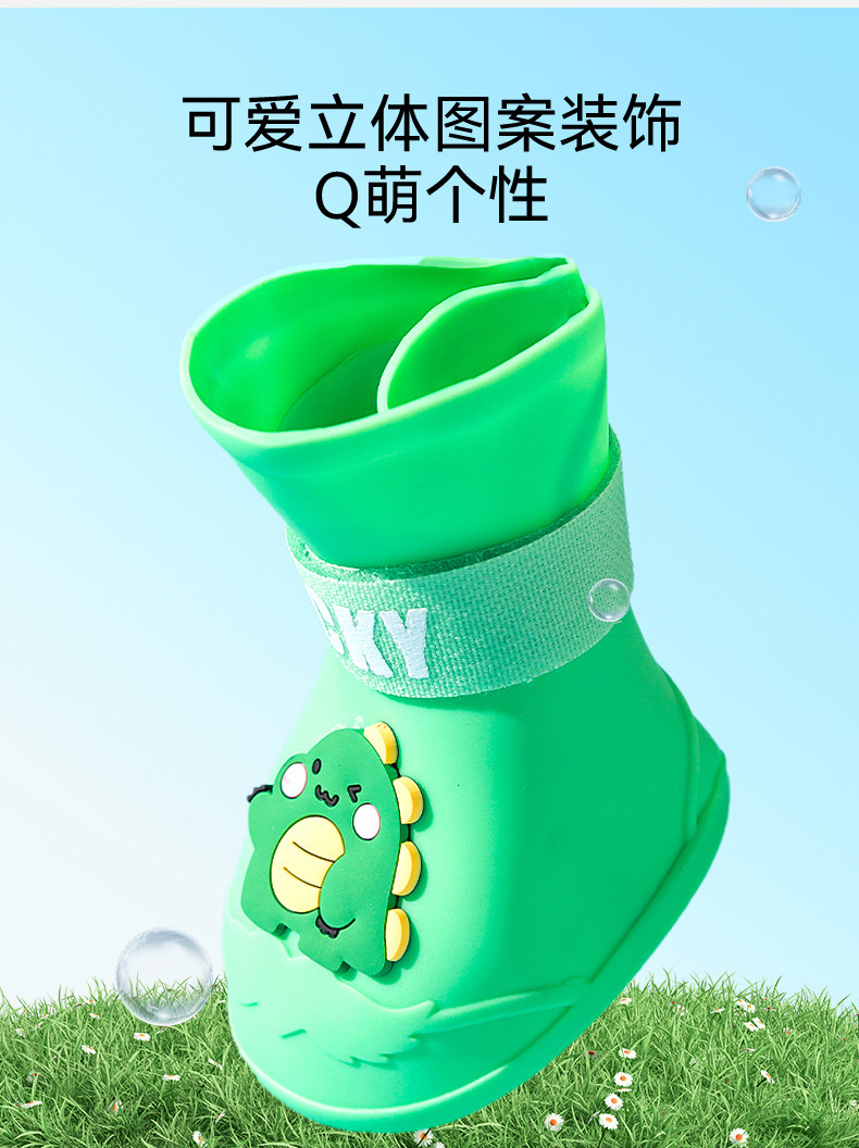 애완견 야외 장화, 만화 어린이 공룡 방수, 미끄럼 방지, 떨어지지 않는 장화, 중대형견을 위한 내마모성
