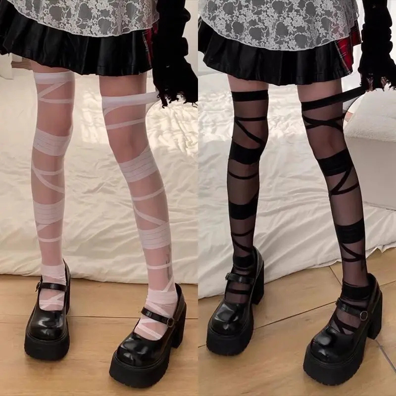 로리타 밀크 화이트 스티칭 팬티 스타킹 학생 얇은 스파이스 소녀 슬림 바닥 양말 높은 탄성 후크 실크 소스 스트레이트스토어 가기