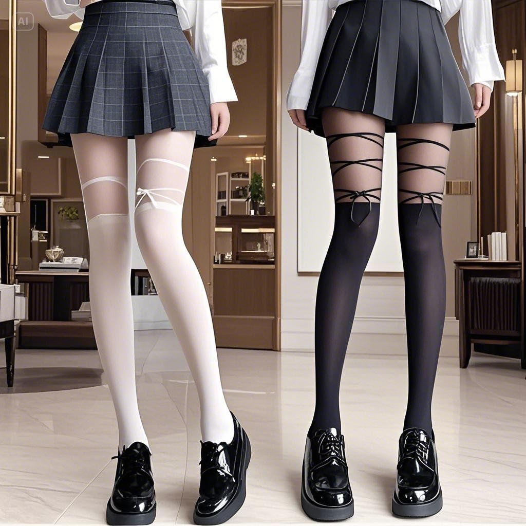로리타 밀크 화이트 스티칭 팬티 스타킹 학생 얇은 스파이스 소녀 슬림 바닥 양말 높은 탄성 후크 실크 소스 스트레이트