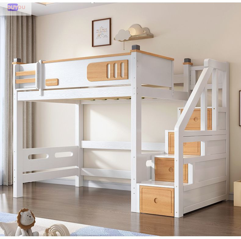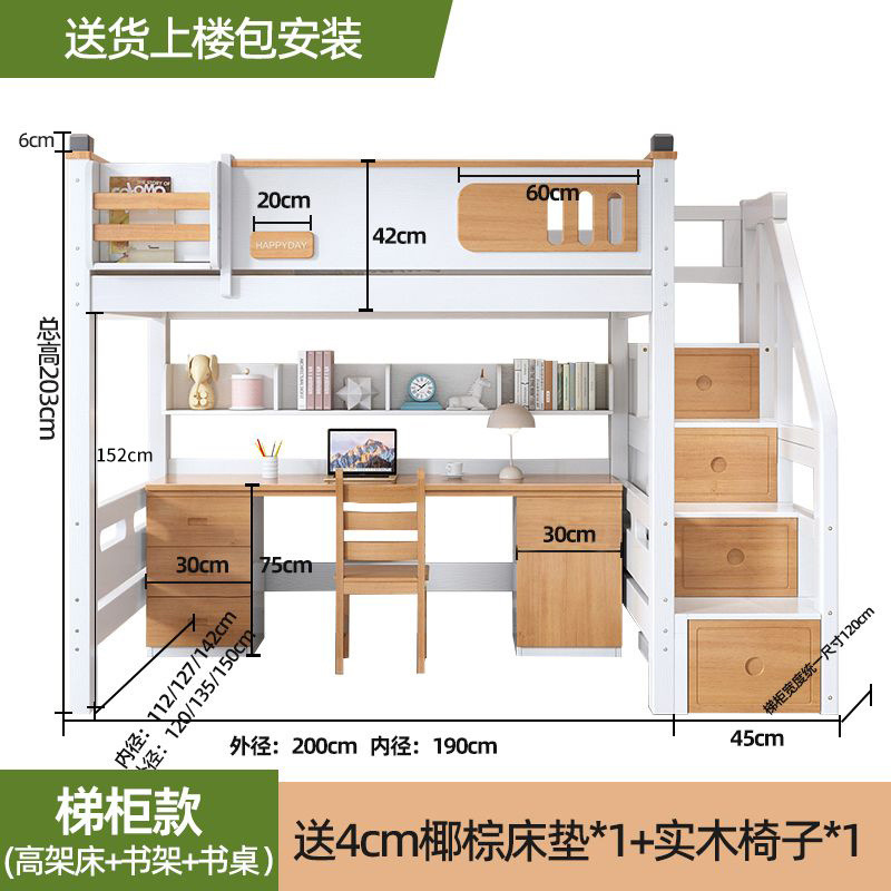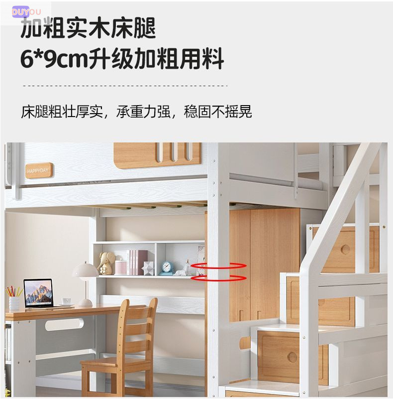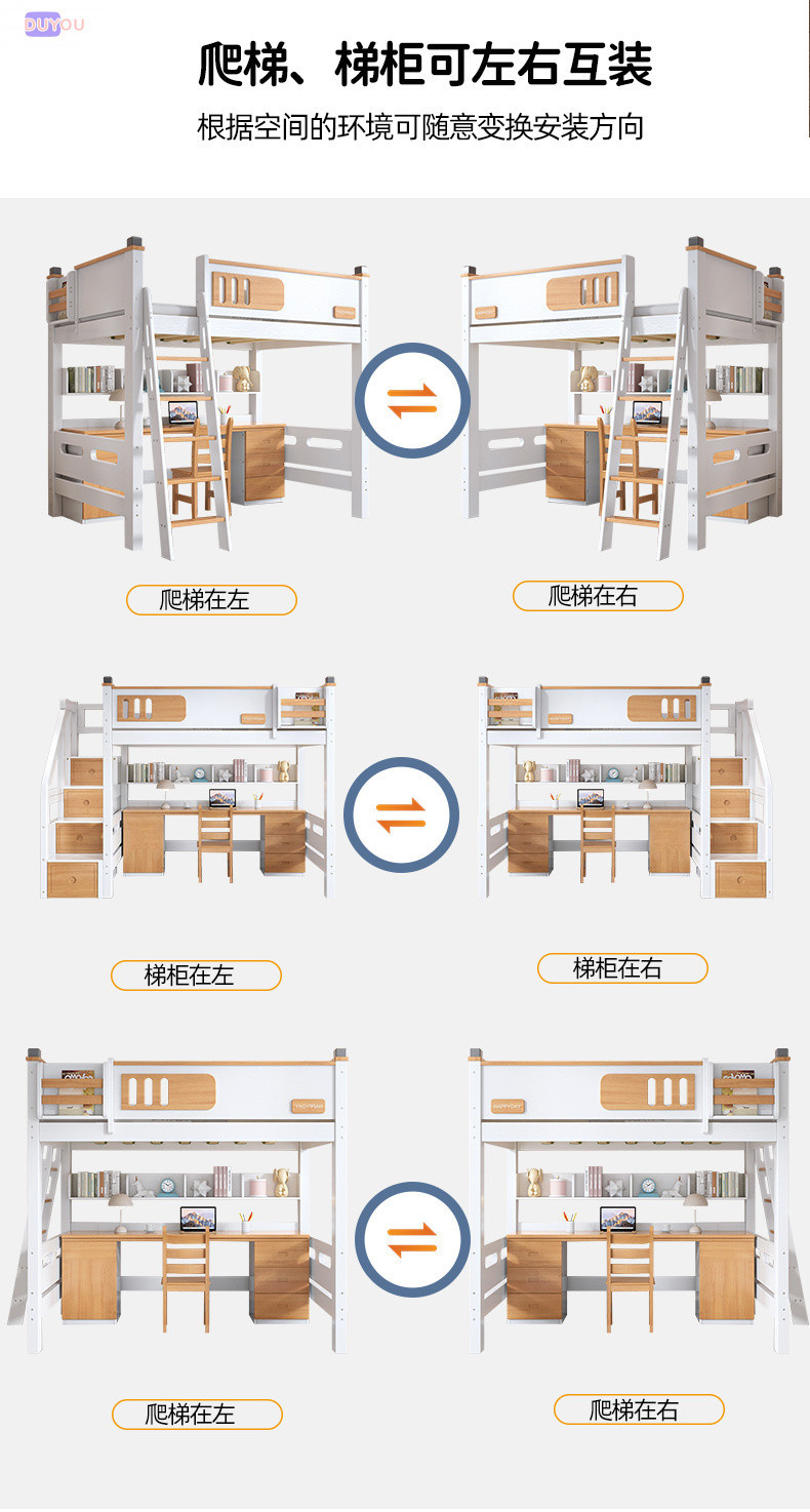 어린이 조합 계단 침대 낮은 테이블 전체 단단한 나무 선반 침대 작은 아파트 높은 침대 시트 상부 침대 더블 레이어스토어 가기