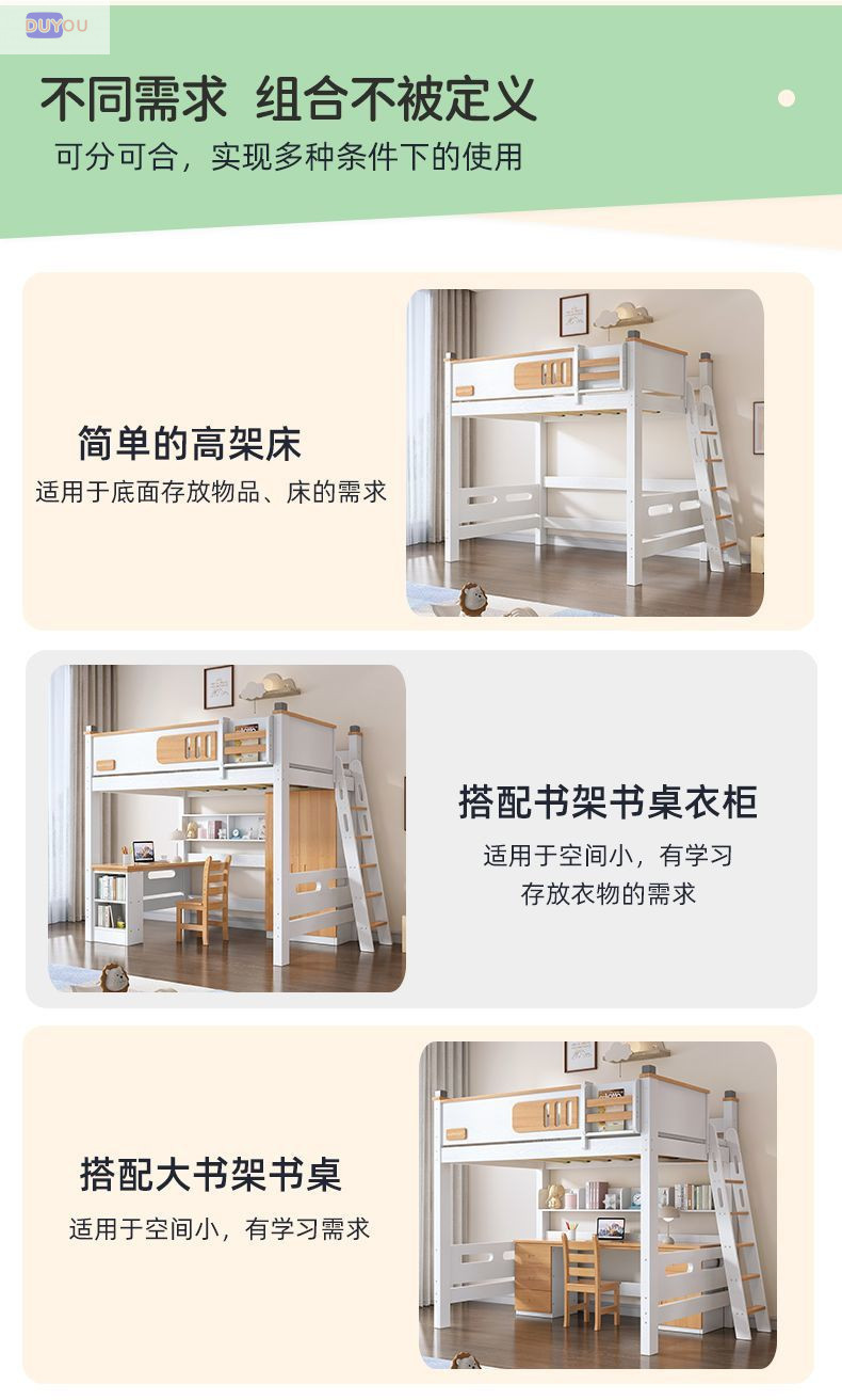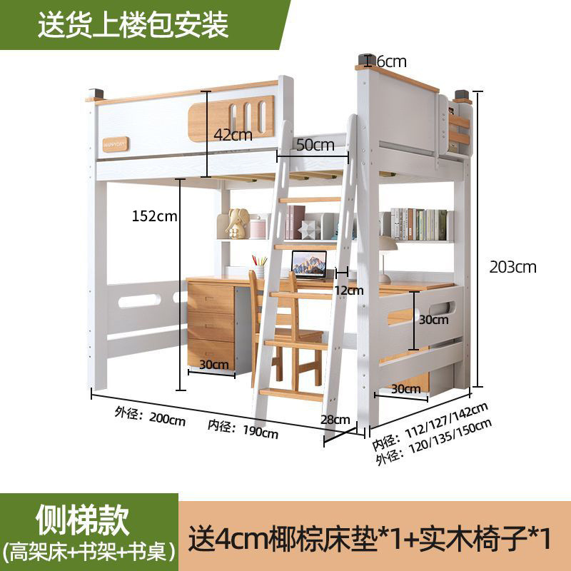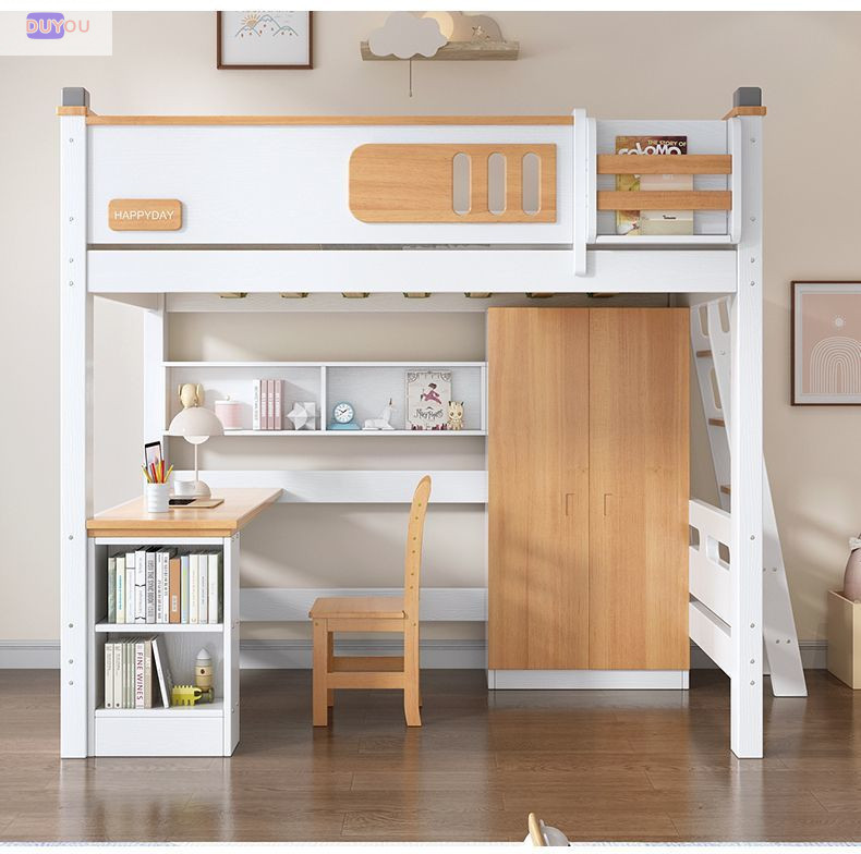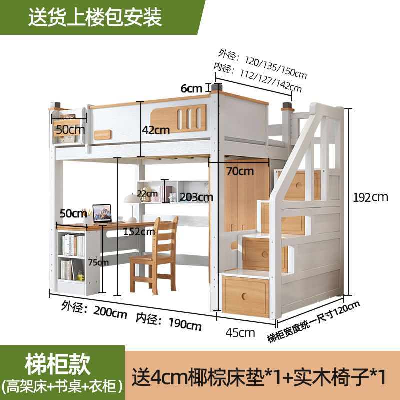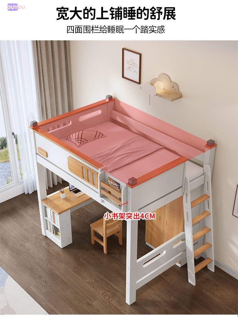 어린이 조합 계단 침대 낮은 테이블 전체 단단한 나무 선반 침대 작은 아파트 높은 침대 시트 상부 침대 더블 레이어스토어 가기