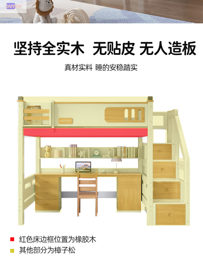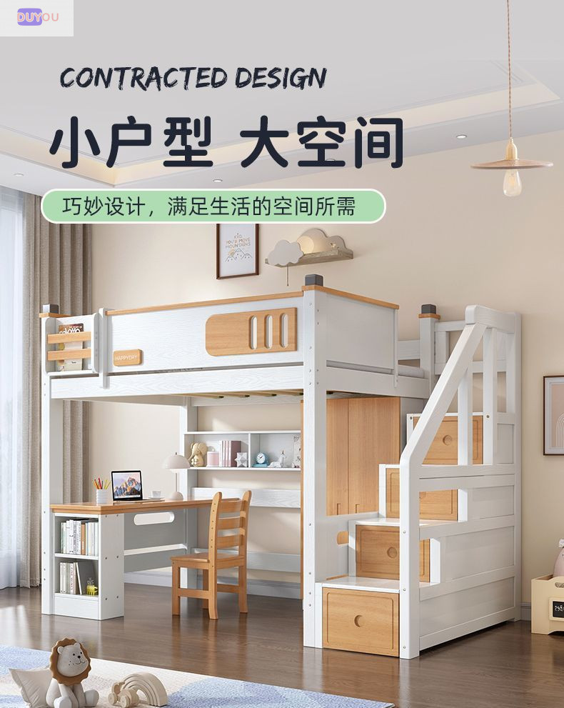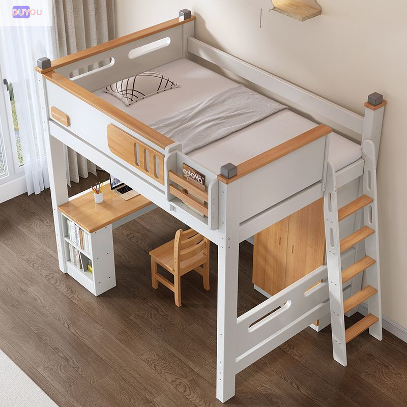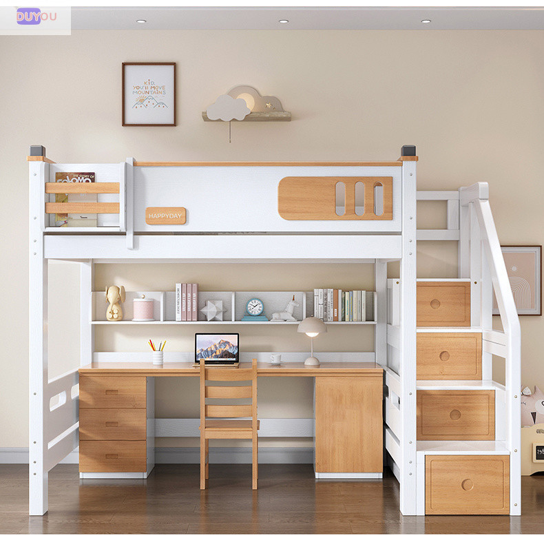 어린이 조합 계단 침대 낮은 테이블 전체 단단한 나무 선반 침대 작은 아파트 높은 침대 시트 상부 침대 더블 레이어
