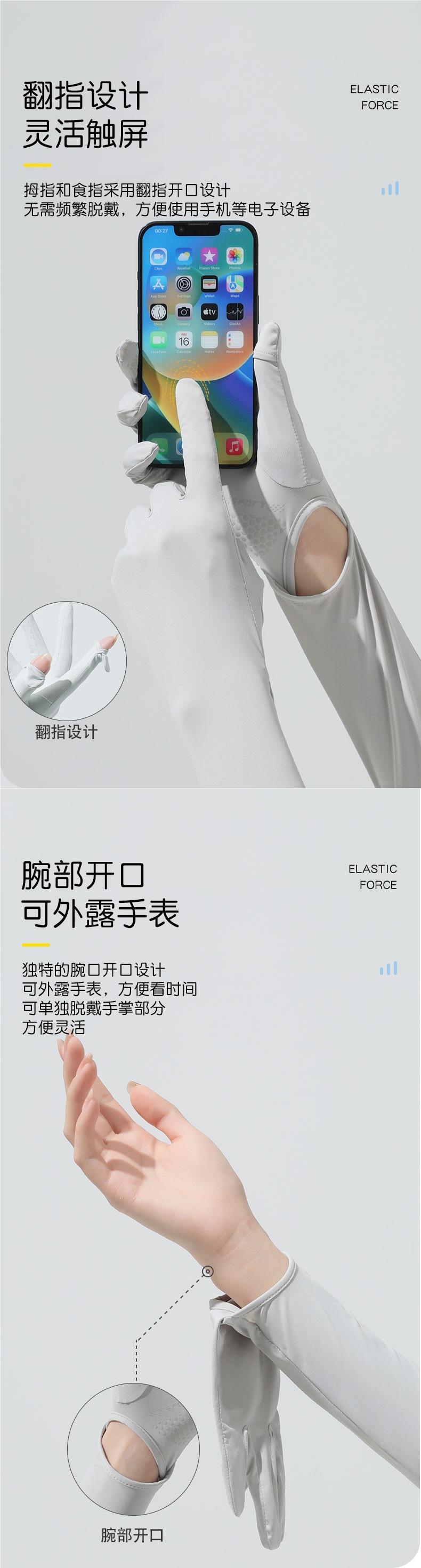 UPF50+ 아이스 실크 긴 여름 자외선 차단 UV 아이스 슬리브 터치 스크린 미끄럼 방지 여성용 사이클링 시원한 얇은 스타일