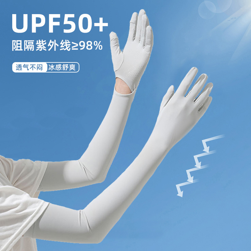 UPF50+ 아이스 실크 긴 여름 자외선 차단 UV 아이스 슬리브 터치 스크린 미끄럼 방지 여성용 사이클링 시원한 얇은 스타일스토어 가기
