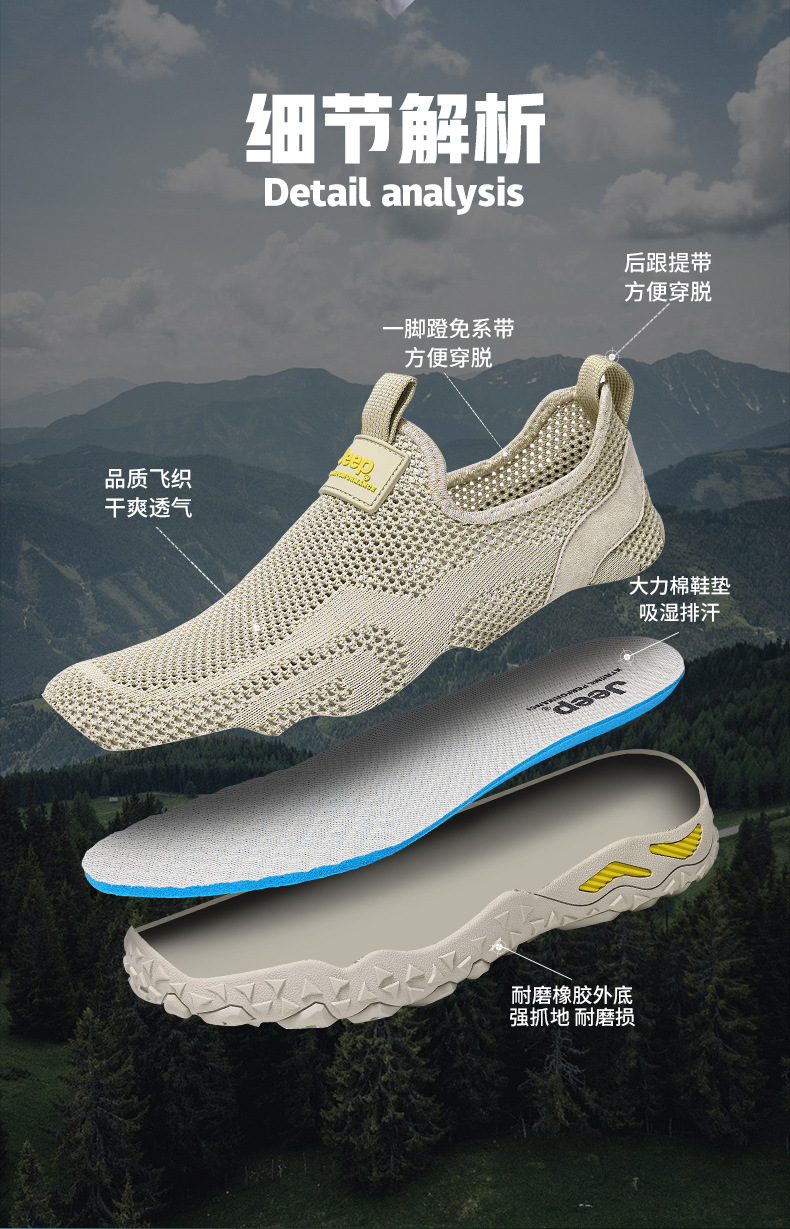 Jeep Jeep 야외 리버 트레이싱 신발 남성용 여름 메쉬 통기성 내마모성 하이킹 신발 경량 미끄럼 방지 스포츠 하이킹 신발스토어 가기