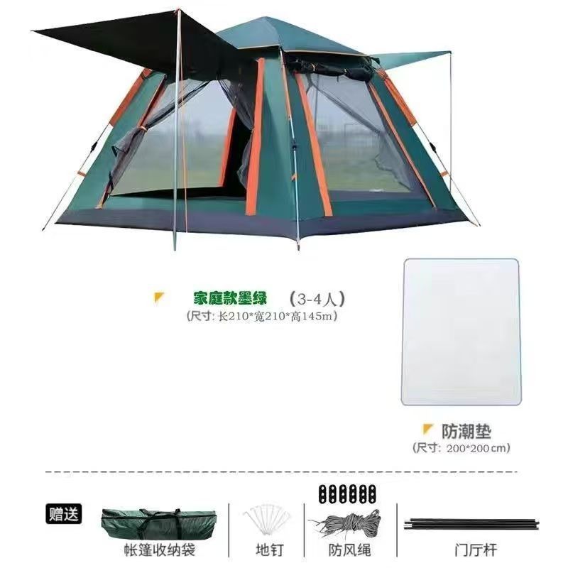 완전 자동 4면 텐트, 야외 자외선 차단, 설치가 필요 없는 빠른 설치 텐트, 3~4인용 캠핑 피크닉 여행 텐트 도매