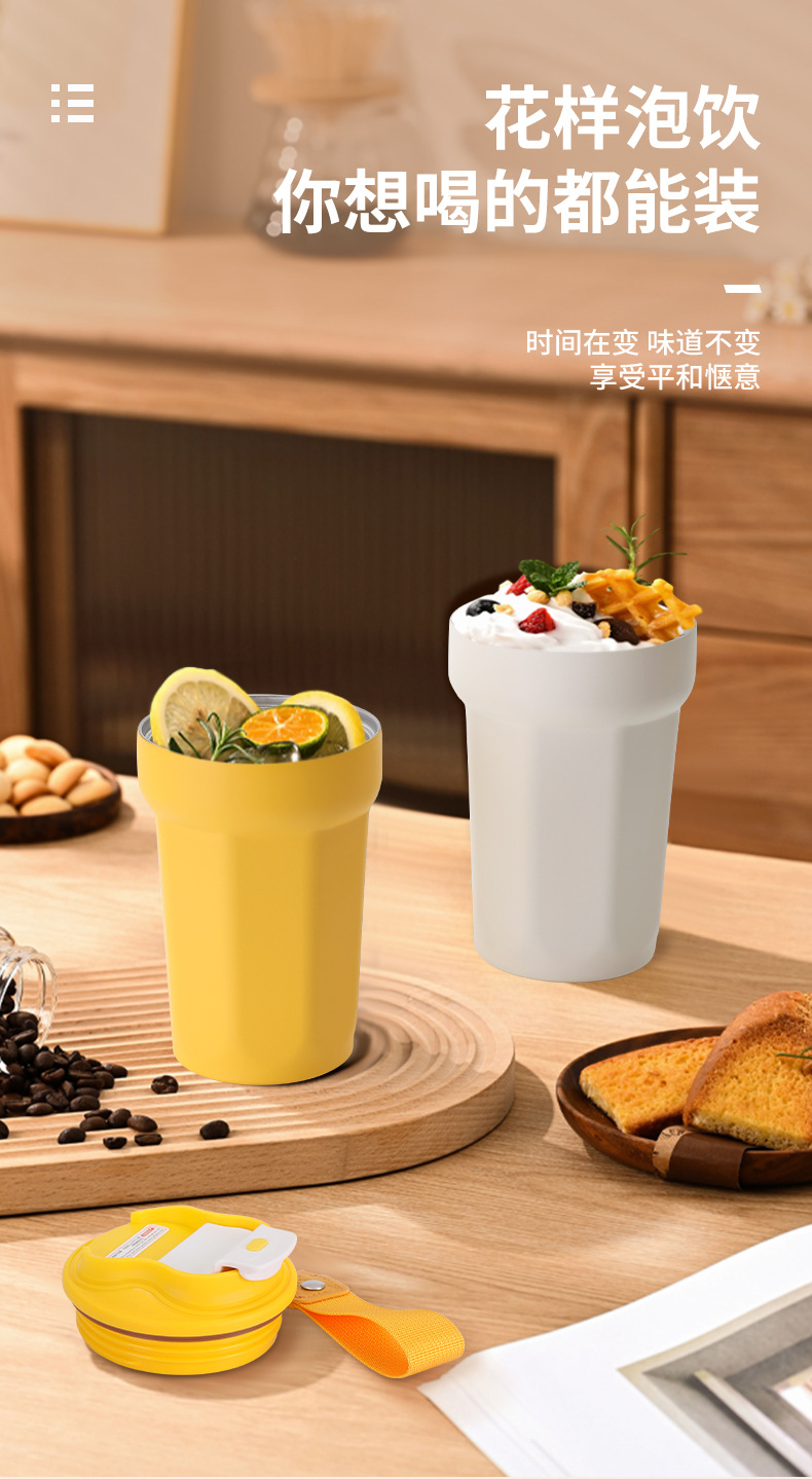 316 스테인레스 스틸 팔각형 커피 컵 이중층 진공 절연 컵 야외 휴대용 자동차 컵 맞춤 로고스토어 가기