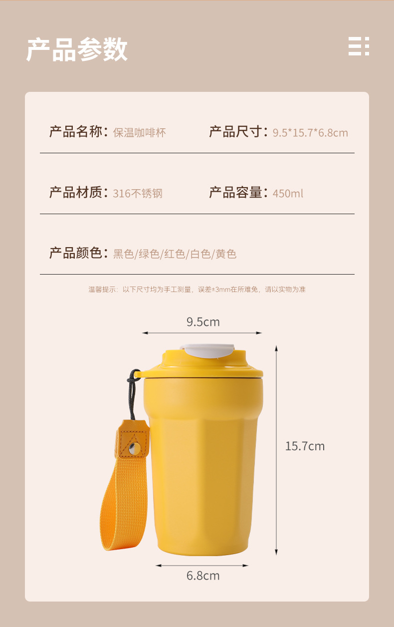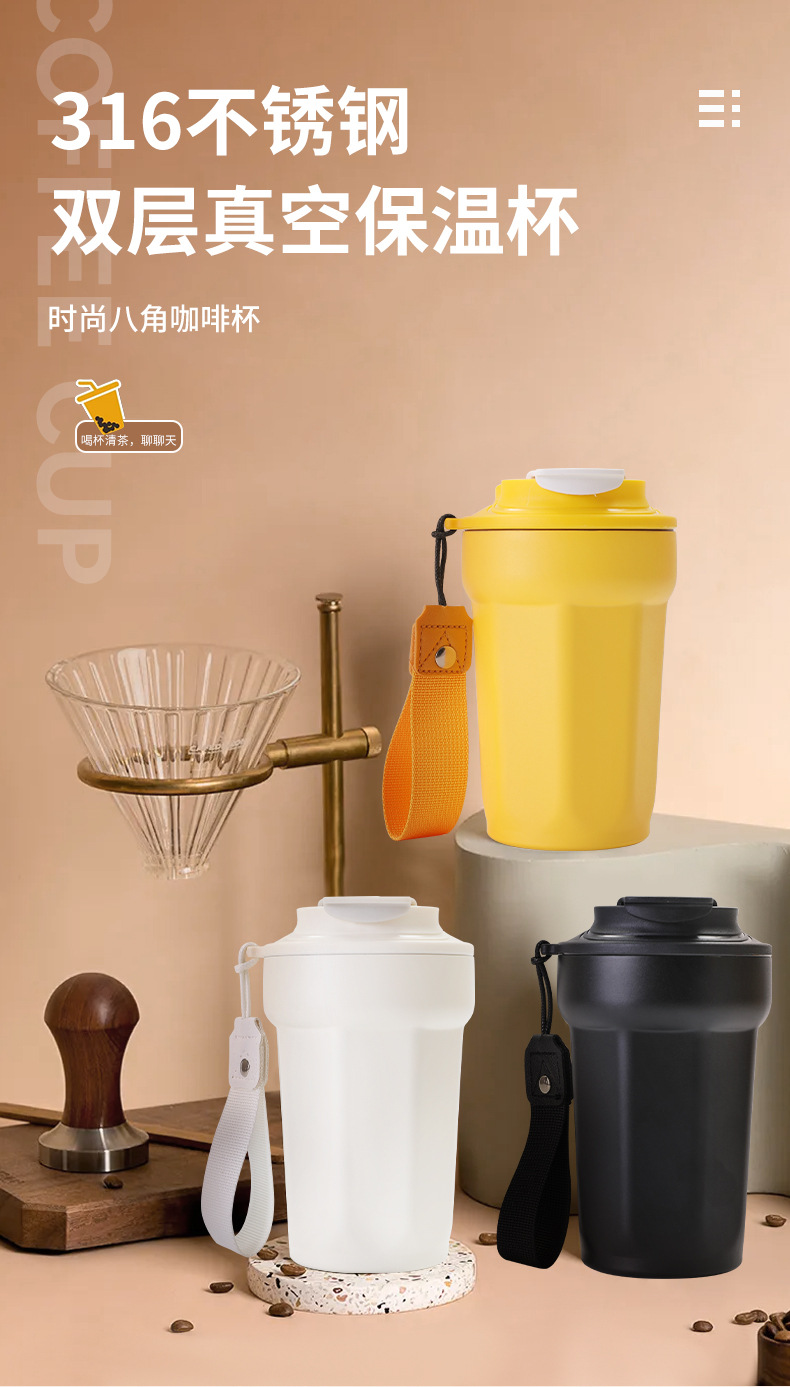 316 스테인레스 스틸 팔각형 커피 컵 이중층 진공 절연 컵 야외 휴대용 자동차 컵 맞춤 로고